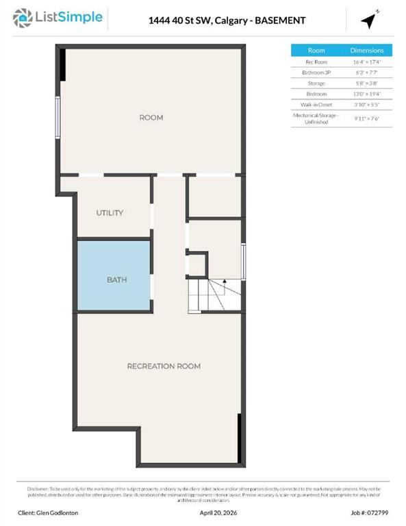 | 3pc Bathroom | 6`3" x 7`7" | Lower |