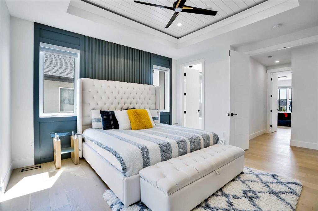 Welcome to Luxury Living in the Desirable Community of Coopers Crossing! This stunning luxury estate home offers over 4,100 square feet of living space in the sought-after community of Coopers Crossing in Airdrie. Upon entering this beautiful home, you'll be greeted by a grand foyer with vaulted ceilings leading to the upper floor. The main floor of the home features 10-foot ceilings and a versatile office space that can be used as a bedroom. A full bathroom is also located on the main floor. The open-concept layout boasts a cozy family room with a gas fireplace and custom feature wall, a formal dining room with coffered ceilings and custom feature walls, and a dream chef's kitchen with a waterfall island and seating area. High-end Kitchen-Aid appliances, built-in oven, gas range, and a large built-in refrigerator are the highlights of this beautiful kitchen. The kitchen area also features a spice kitchen/pantry with a gas range and refrigerator. The entrance from the triple garage that has epoxy floors leads you to your large mudroom with storage for your coats and shoes. The upper floor features 9-foot ceilings, a large chandelier, and a feature wall leading to 4 bedrooms and 3 full bathrooms, including a primary suite with a large walk-in closet. The upper floor also features a large laundry room with a sink. A spacious bonus room with sliding doors leading to the upper balcony completes the upper floor. The fully finished basement has 9-foot ceilings, a built-in custom wet bar with a sink, microwave, and bar fridge, leading to a rec room with a feature wall wired in for a projector setup and surround sound. An additional bedroom and a 4-piece washroom complete the basement. The exterior is now landscaped and wired with custom gemstone lighting that can be used year-round, security system with cameras, and a large lot backing onto a green space walkway, the garage is also wired for an electric car charger. This home is designed and built with many upgrades, including engineered hardwood, custom railing, tile, feature walls, A/C and built-in closets. You don't want to miss the opportunity to own this dream home. Check our the 3D Tour and Schedule your showing today!