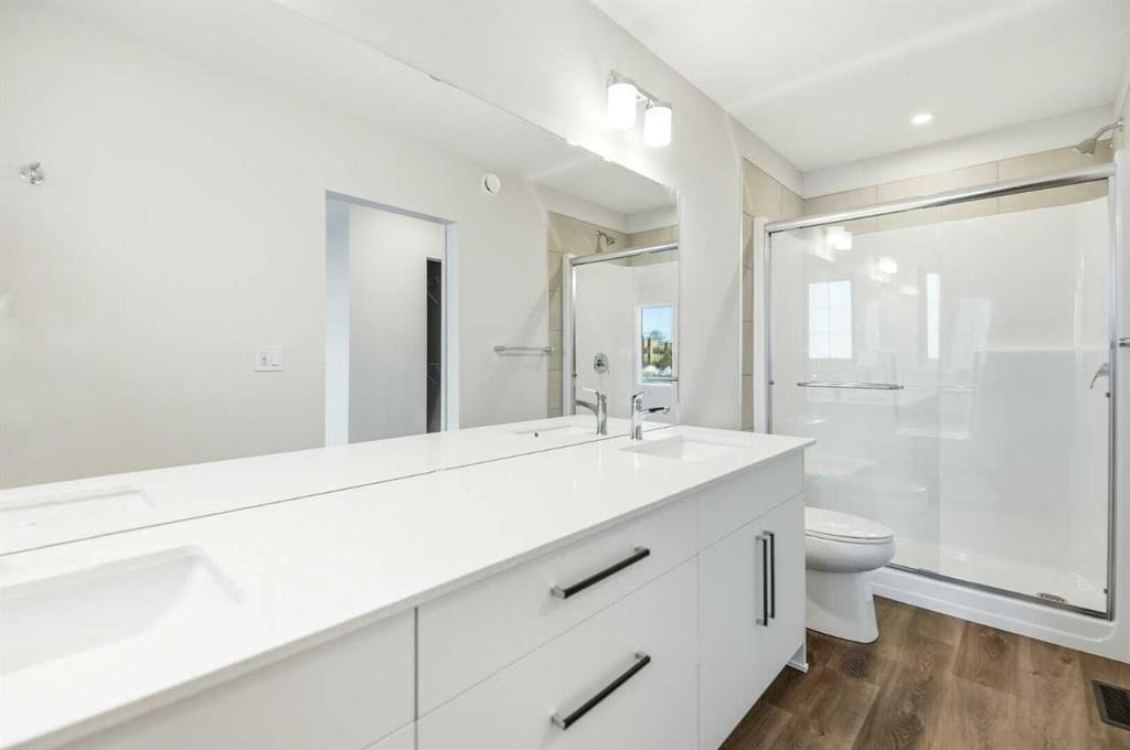 Discover this 1,775 sq ft home by Bedrock Homes in the beautiful community of Liberty Landing, Red Deer. Designed for modern living, this 4-bedroom, 3-bathroom home offers a spacious open-concept layout perfect for family life and entertaining. The main floor features a stylish kitchen with quartz countertops, a large island, and plenty of storage, seamlessly flowing into the dining and great room filled with natural light. A full bedroom and bathroom on the main floor add flexibility for guests. Upstairs, the primary bedroom includes a private ensuite and walk-in closet, accompanied by two additional bedrooms, a full bath, and convenient laundry. Built with Bedrock Homes’ renowned craftsmanship and energy efficiency, this home offers comfort, style, and long-term value. Located in Liberty Landing, a vibrant Red Deer community surrounded by parks, trails, and amenities. Exterior and Interior Photos are representative.