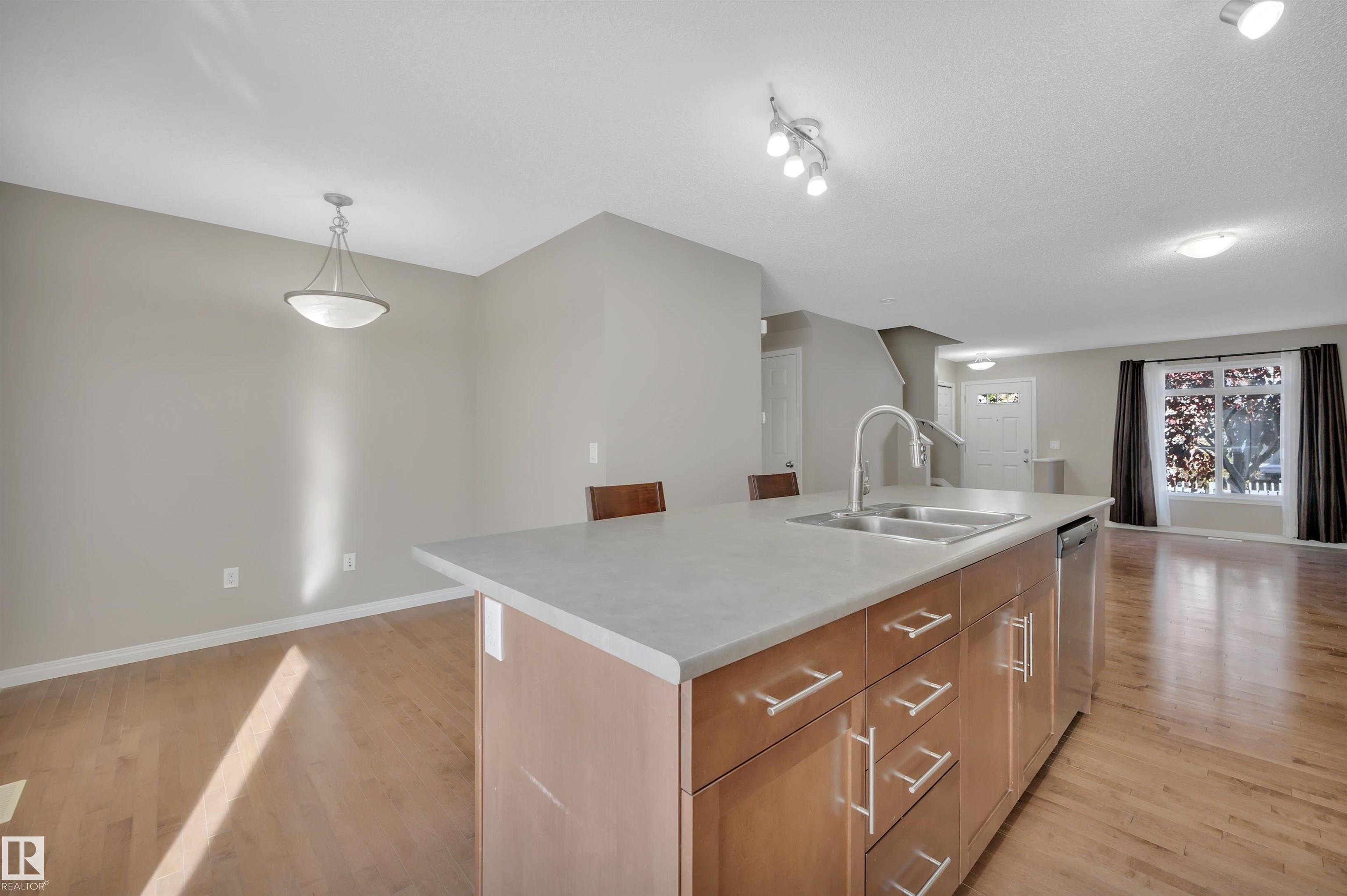 DUEL PRIMARY BEDROOMS! IMMEDIATE POSSESSION! DOUBLE GARAGE! Searching for a well kept townhouse in desirable Summerside? This 1223 sq ft 2 bed, 2.5 bath unit is perfect for the first time buyer, downsizer, & investor. The main floor is an open concept living / dining / kitchen design, allowing for ample natural light for entertaining & cooking up your favourite meal! Hardwood & tile flooring leads into the kitchen w/ large island, S/S appliances & 2 pce bath, & dining nook. The upper level brings 2 large bedrooms, each with their own ensuite & walk in closet. The lower level is home to your double attached garage, laundry, & storage space. Condo fees of $278.33 includes professional management, snow removal, landscaping, etc. Access to Lake Summerside & amenities; perfect space for your summer hangouts! Great value unit, a must see! *Some photos are virtually staged*