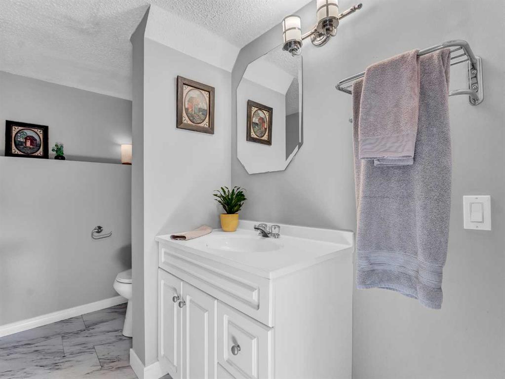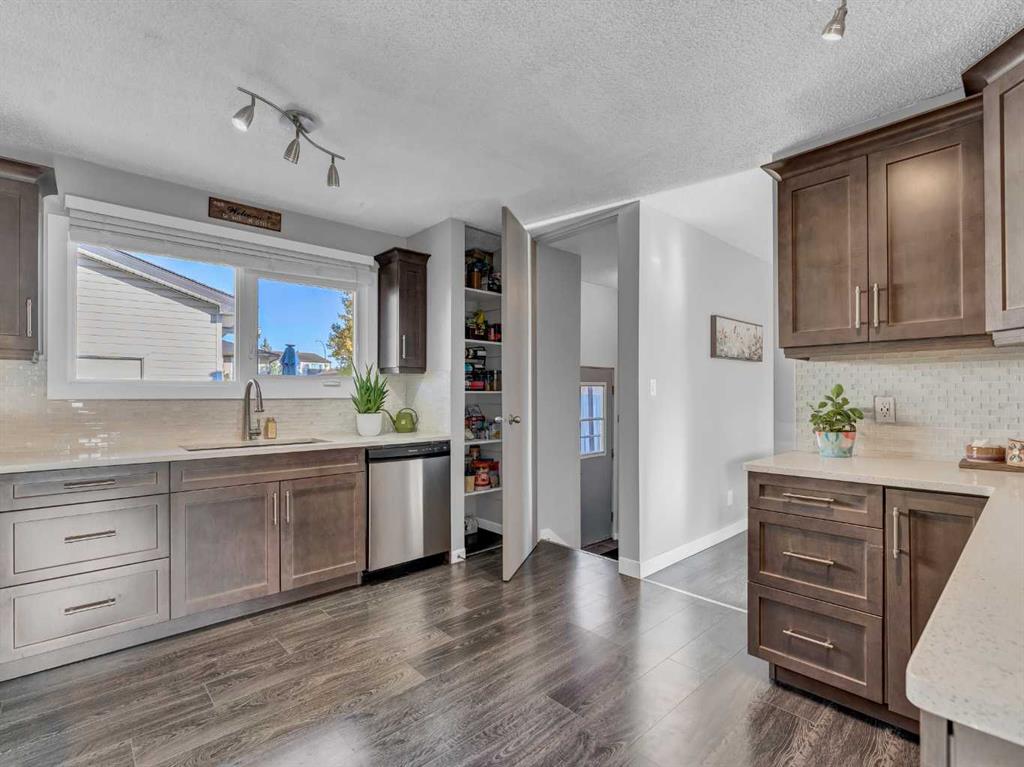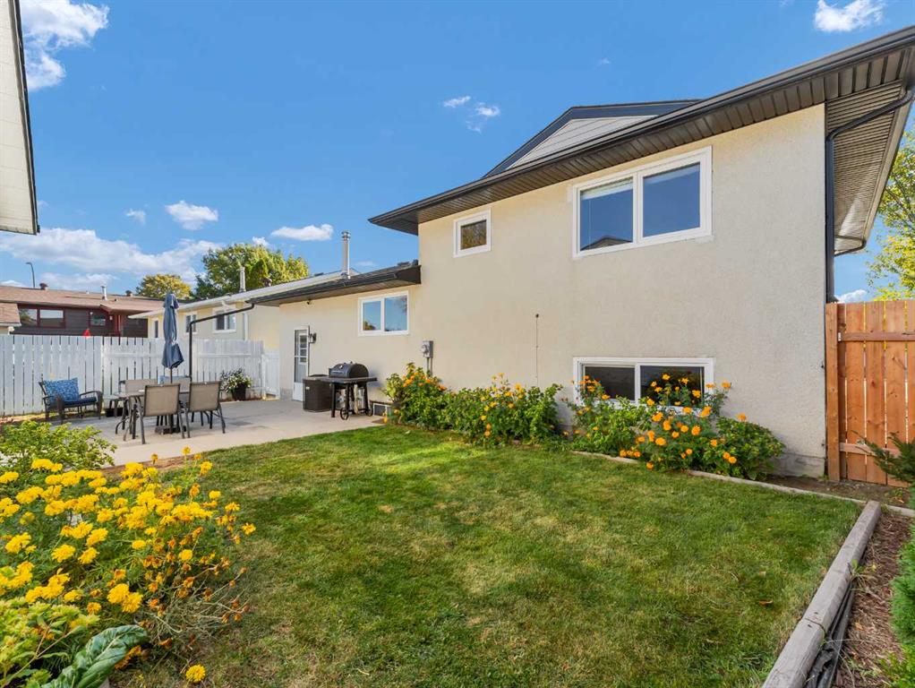 Welcome to this beautifully 4-level split home, perfectly situated in a family-friendly neighbourhood close to schools, parks, and walking/biking paths. Offering 3+1 bedrooms and plenty of space for the whole family. The main floor welcomes you with a bright front living room, dining area, and a stylish kitchen showcasing custom cabinets, quartz countertops, and laminate flooring. The upper level features a primary bedroom with a 2-piece ensuite, two additional bedrooms, and a refreshed full bath. The lower level includes a cozy family room, a fourth bedroom, and an additional 2-pce bathroom, while the basement hosts a wide open space for storage, future living space, and laundry. The furnace, hot water tank, and A/C were conveniently done in 2013. Throughout the home, vinyl windows bring in natural light and efficiency. Outside, you’ll find a beautiful, comfortable yard with patio, a large 24x28 heated/insulated double garage (10 ft ceiling), and two additional parking stalls/RV Parking. With updated siding, kitchen, windows, flooring, and shingles, this home is ready for you to move in and enjoy with your family. Contact your local neighbourhood REALTOR® today!
