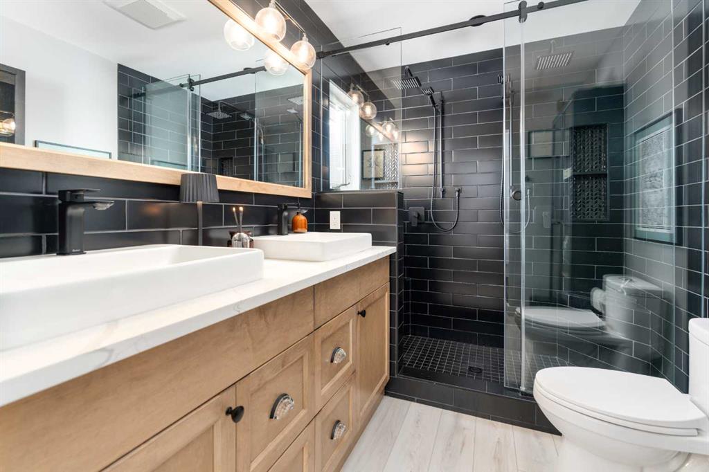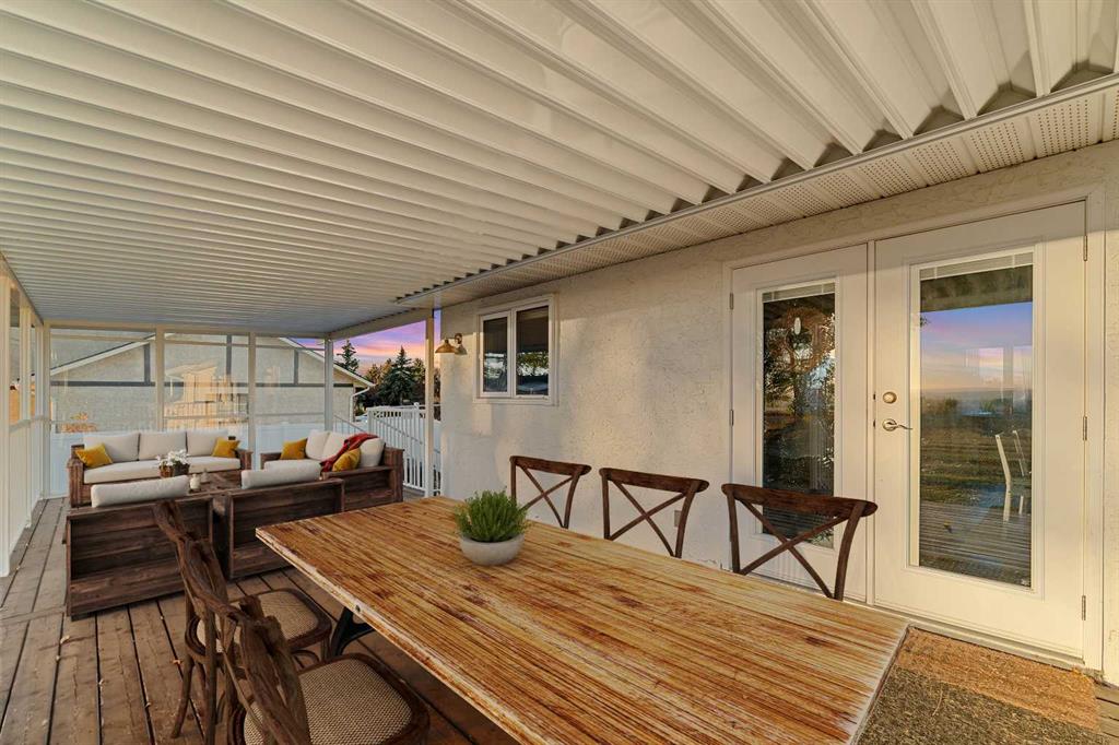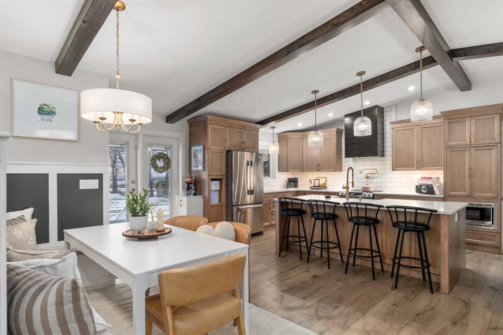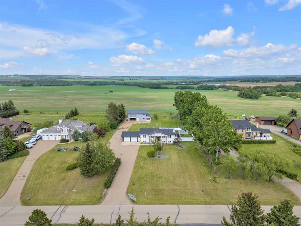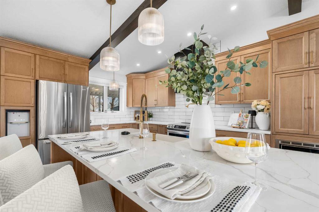 Experience the best of country living without sacrificing convenience in this impeccably upgraded estate, perched above the picturesque Canyon Ski Hill. Offering stunning year-round views and over 1,300 sq ft of beautifully finished space, this 5-bedroom, 3-bathroom home combines timeless design with modern comfort—perfect for families, entertainers, or those seeking a serene retreat. The heart of the home is a brand-new chef’s kitchen, designed to impress with a statement island, pot filler, custom spice storage, built-in cutting board, and premium appliances. An open-concept dining area features a custom bench with hidden storage, while the cozy living room is anchored by a sleek electric fireplace and built-in mantel. Throughout the main level, luxury vinyl plank flooring, designer paint, updated trim, doors, and curated lighting selections create a cohesive and inviting feel. The primary suite is a true haven, featuring a spa-style ensuite with double vanities, heated floors, and an oversized walk-in shower. Two additional bedrooms and a beautifully renovated guest bath complete the main floor. The fully developed lower level offers flexibility and space, complete with a second kitchen, large family room with gas fireplace, two additional bedrooms, and a full bath—perfect for extended family, guests, or a private retreat. This home is loaded with extras: central air, central vac, updated smoke detectors, a spacious laundry room, and peace-of-mind mechanical upgrades, including new furnaces, hot water heater, pressure tank, and a full plumbing overhaul. Step outside to enjoy the expansive covered deck with new railings, a 2023 hot tub, and a massive, fully fenced yard. For the hobbyist or professional, the 30x40 heated shop is fully outfitted with radiant heat, floor drains, tin walls, mezzanine, oversized door, and commercial air compressor. An oversized heated double garage (23x28) and large paved parking area provide ample space for RVs, trailers, and equipment. With a new septic system (2021) and every major system updated, this exceptional property is truly turn-key. Unmatched views, privacy, and refined living await!