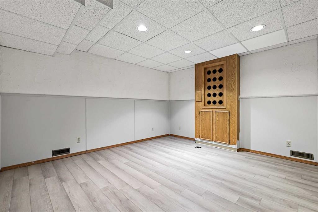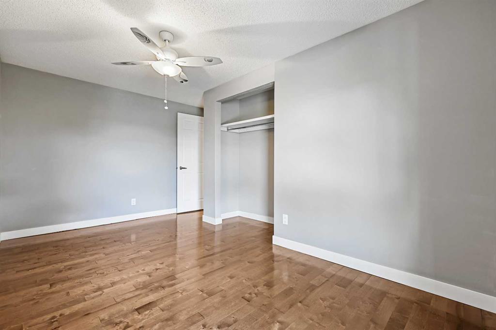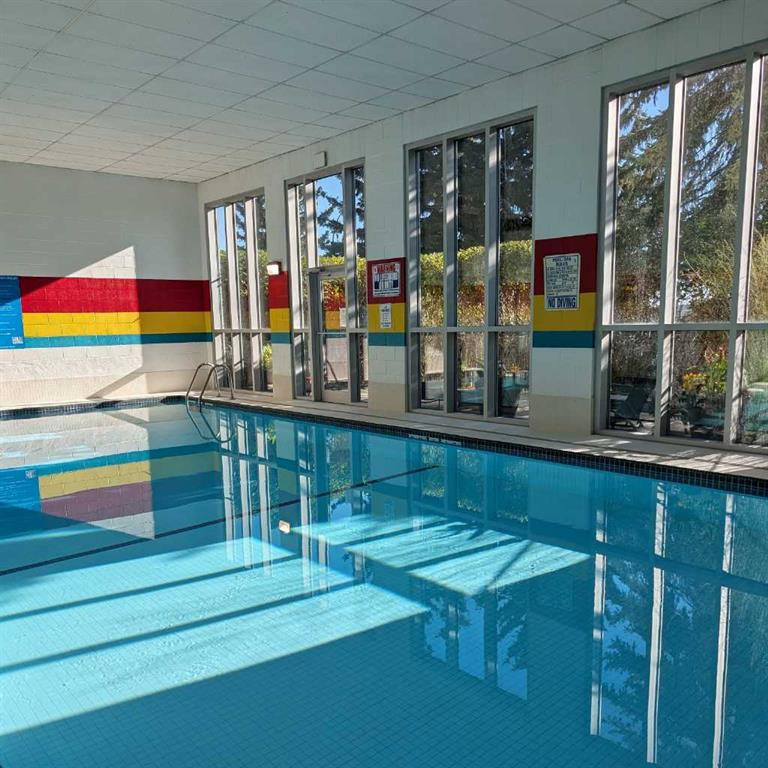 Welcome to this rare end-unit home offering timeless mid-century style and one of the community’s largest floor plans. With over 1,592 sq. ft. above grade plus an additional 590.91 sq. ft. of developed space below, this property combines character, comfort, and functionality. Inside, you’ll find a bright and airy open floor plan with soaring ceilings, a sun-filled south-facing living room, and a modern gas fireplace (convertible back to wood if desired). The updated kitchen is both stylish and practical, while the dining and living spaces flow beautifully for everyday living or entertaining. This home features 2 bedrooms plus a dedicated office, which could easily be converted back to a 3rd bedroom. The spacious owner’s suite fits a king-sized bed with ease and includes a walk-in closet with organizers and a 4-piece ensuite with double vanity and a large glass-enclosed shower with low-threshold entry. Thoughtful updates throughout include vinyl windows, high-efficiency furnace, hardwood, tile, and vinyl plank flooring, garburator, built-in vacuum, and newer built-in oven, dishwasher and washer/dryer. The roof was recently replaced in 2024. Step outside to the interlocking brick patio with a gas line for your BBQ—perfect for summer evenings. The patio can also be fenced for extra privacy or for pets. Pets are welcome (2 dogs/3 cats, with board approval). The complex itself offers resort-style amenities: an indoor pool, fitness centre, racquet court, and more. Enjoy peace of mind with a well run condo association and low monthly condo fees ($637.77) covering snow removal, yard work, and exterior building maintenance. Recently upgraded with Telus fiber optic wiring. The location is unbeatable—walking distance to bus stops and LRT, minutes from shopping, and with quick access to Crowchild, Sarcee, and Shaganappi Trails. The University of Calgary, Foothills and Children’s Hospitals, and downtown are all nearby. Lovingly maintained by the original owner, this home is professionally cleaned and move-in ready. See it... love it!
