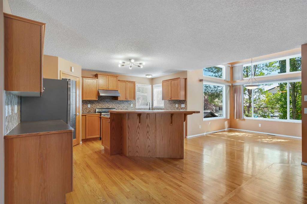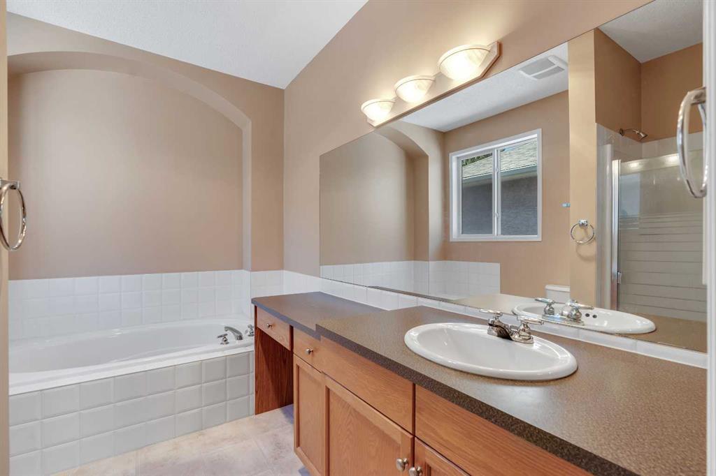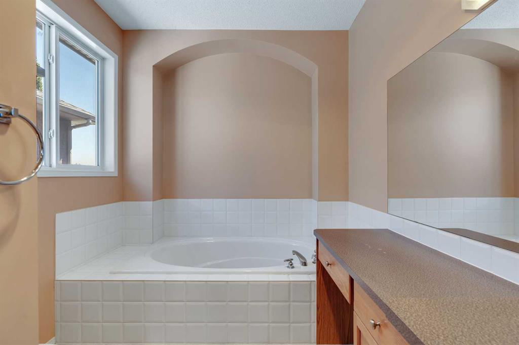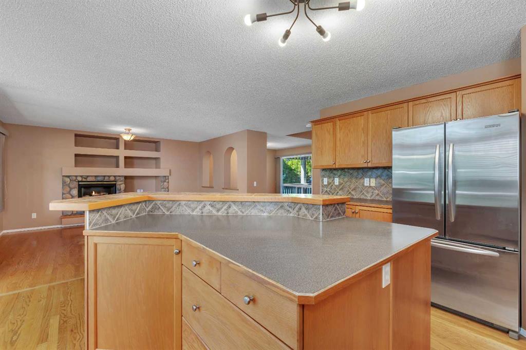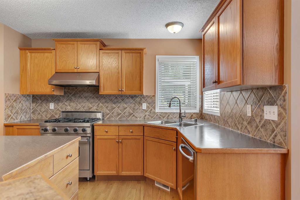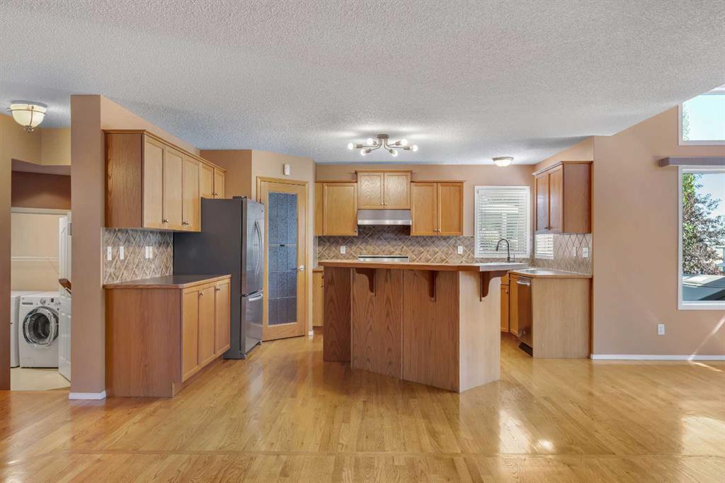 This is it! Welcome to this beautifully maintained two-storey home in family-friendly Harvest Hills, offering over 2,000 sq. ft. of living space plus an attached double garage. Situated on a landscaped lot with a fully fenced backyard and a covered deck, this property checks all the boxes. Step inside a bright, open layout designed for both everyday living and entertaining. The spacious kitchen features a large island, corner pantry, and plenty of cabinetry, flowing seamlessly into a dining room full of natural light that provides access to the covered deck. The inviting family room offers a stone fireplace with custom built-in shelving. Additional main-floor highlights include a flexible front living room, the laundry room, and a 2-piece bathroom. Upstairs, discover four well-sized bedrooms, each with great layouts and storage. The primary retreat boasts soaring ceilings, a walk-in closet, and a 4-piece ensuite with separate shower and soaking tub. Two additional bedrooms also feature their own walk-in closets, ideal for growing families. A second full bathroom completes this level. Nestled on a quiet street just steps from schools, parks, and pathways, this home offers a true sense of community. Easy access to major routes, shopping, and recreation makes daily living effortless, while the backyard and covered deck invite year-round enjoyment with family and friends. This Harvest Hills gem combines functional design and includes a brand new roof, gutters, and downspouts. Don't miss out, call your REALTOR® and book a showing today!