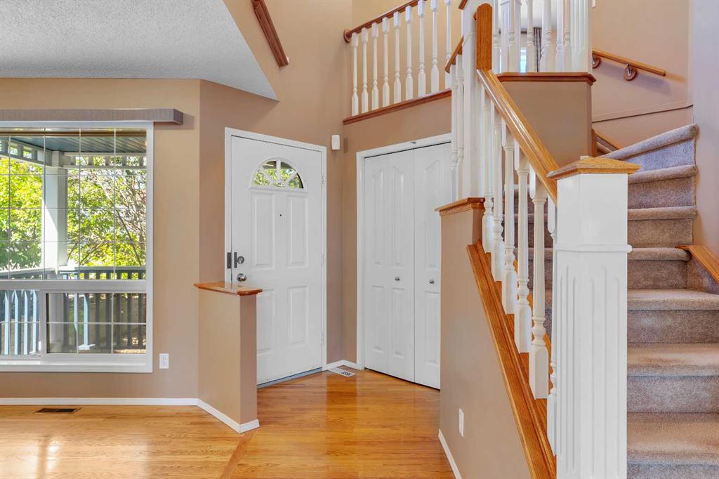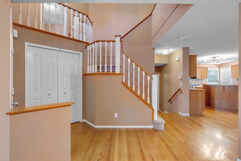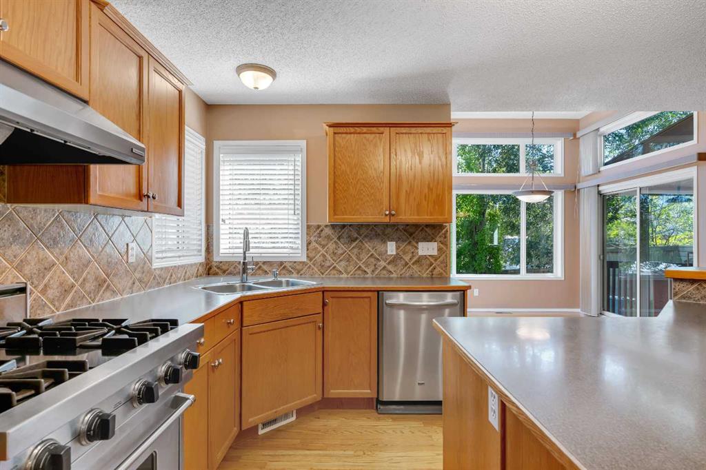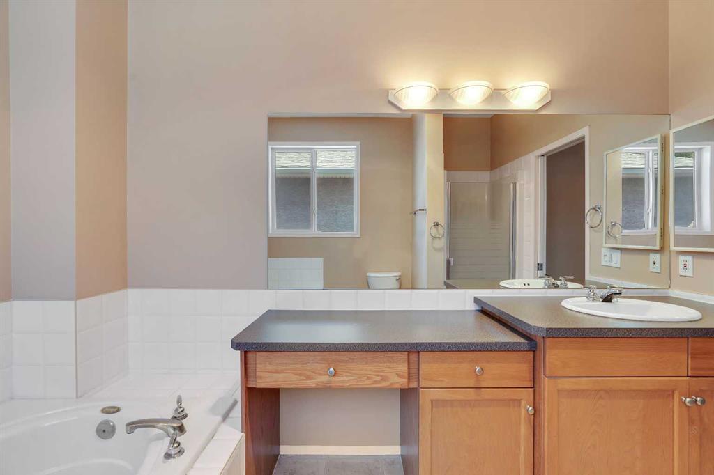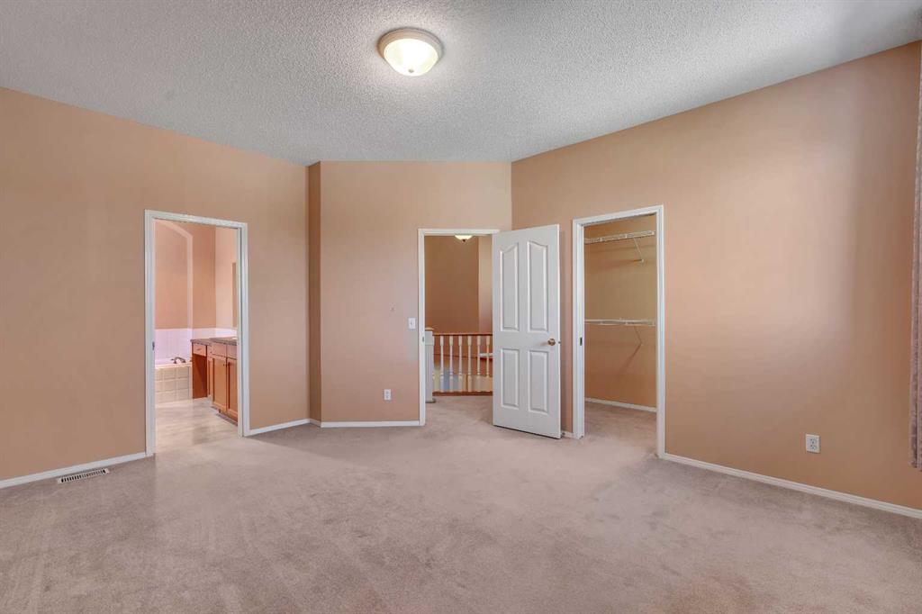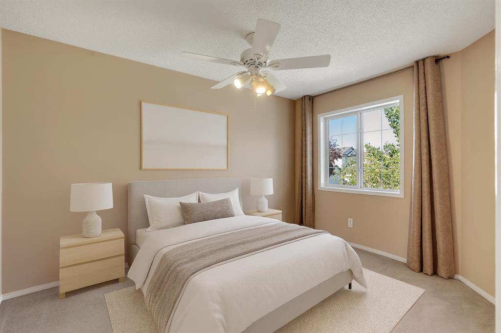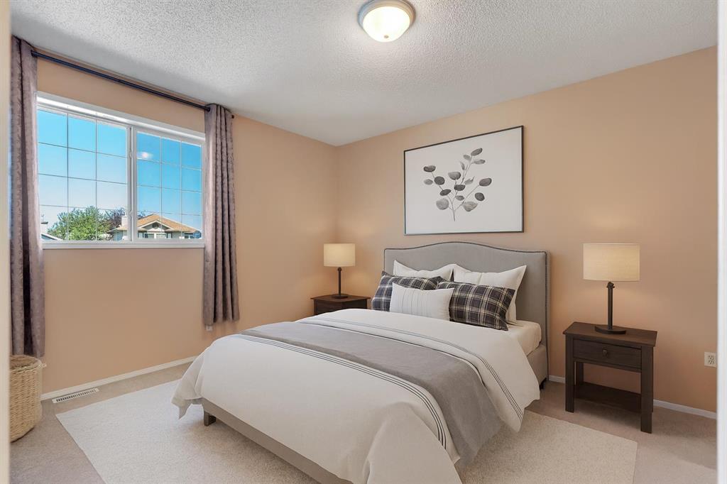 This is it! Welcome to this beautifully maintained two-storey home in family-friendly Harvest Hills, offering over 2,000 sq. ft. of living space plus an attached double garage. Situated on a landscaped lot with a fully fenced backyard and a covered deck, this property checks all the boxes. Step inside a bright, open layout designed for both everyday living and entertaining. The spacious kitchen features a large island, corner pantry, and plenty of cabinetry, flowing seamlessly into a dining room full of natural light that provides access to the covered deck. The inviting family room offers a stone fireplace with custom built-in shelving. Additional main-floor highlights include a flexible front living room, the laundry room, and a 2-piece bathroom. Upstairs, discover four well-sized bedrooms, each with great layouts and storage. The primary retreat boasts soaring ceilings, a walk-in closet, and a 4-piece ensuite with separate shower and soaking tub. Two additional bedrooms also feature their own walk-in closets, ideal for growing families. A second full bathroom completes this level. Nestled on a quiet street just steps from schools, parks, and pathways, this home offers a true sense of community. Easy access to major routes, shopping, and recreation makes daily living effortless, while the backyard and covered deck invite year-round enjoyment with family and friends. This Harvest Hills gem combines functional design and includes a brand new roof, gutters, and downspouts. Don't miss out, call your REALTOR® and book a showing today!
