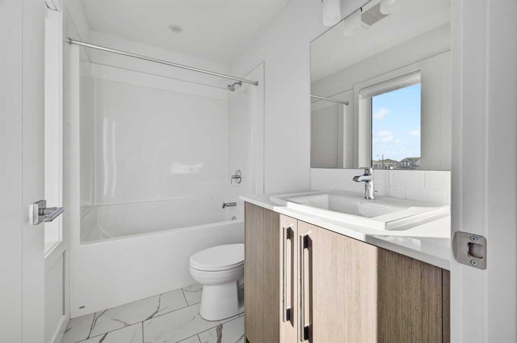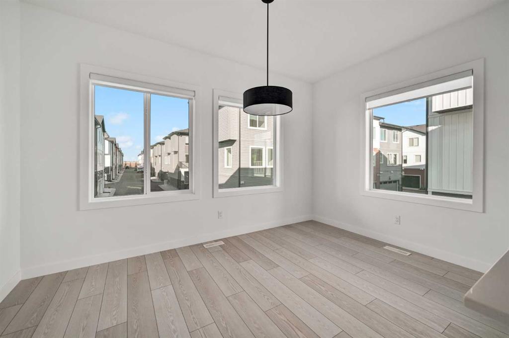 Stunning END UNIT 4-Bedroom 2.5 Bath Attached Garage Townhouse. A low-maintenance designer lifestyle, this home features low condo fees and is just 20 minutes from downtown Calgary & 5 minutes from the newest Costco. Spread across three levels, this townhome offers ample space with an open-concept design on the main floor. Enjoy the bright, airy atmosphere created by large windows and sleek vinyl flooring throughout the living and dining areas with designer light. Gourmet Kitchen & Generous Living Room - The central kitchen is a chef’s delight, boasting quartz countertops, a stylish tile backsplash, a central island, dual sink, and high-end stainless steel appliances, including an electric stove, dishwasher, full height cabinets, large windows & high ceilings. Outdoor Entertaining - Step out from the living room onto a large front balcony/deck, complete with a gas line for grilling, perfect for outdoor gatherings and relaxation. Comfortable Living - The 3rd floor is dedicated to your comfort with a spacious primary suite featuring an ensuite bathroom and a walk-in closet, alongside two additional well-sized bedrooms sharing a second full bathroom. A conveniently located laundry room with a full-sized Whirlpool washer and dryer completes this level. The versatile lower level offers a flexible space that can be used as an additional bedroom or home office. It also includes an attached double garage with ample storage and a mechanical room/ storage room. Modern Conveniences - Equipped with a heat recovery ventilation (HRV) unit for optimal indoor air quality. Convenient Access - Just a few blocks from Walmart, Costco, and a variety of other retail shops, amenities, and dining options in nearby. Easy access to schools, parks, and local amenities. Master-Planned Community - Part of the award-winning Truman-developed Aberdeen Towns, this 316-acre community along the shores of Chestermere Lake promises year-round lakeside living with future additions including new schools, parks, and lifestyle amenities. This beautifully appointed townhome offers everything you need for a comfortable and enjoyable lifestyle. Contact your realtor today to schedule a viewing and see for yourself why this home is the perfect fit for you! Reasons to Buy: - Spacious 4-bedroom, 3.5-bathroom layout - Low condo fees and modern amenities - Close proximity to major retail stores and downtown Calgary -