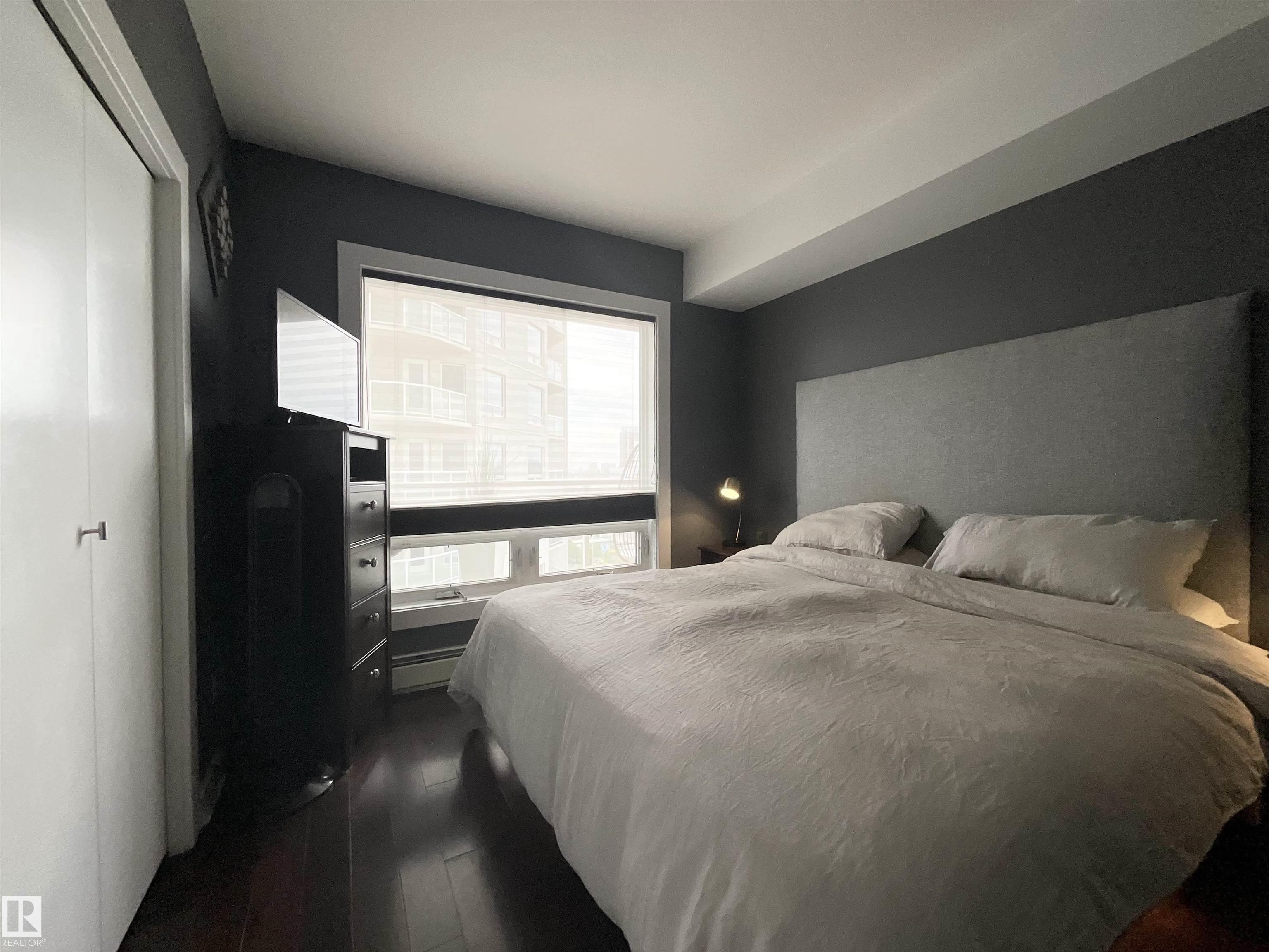 Experience downtown living at its absolute finest in this gorgeous high rise condo in the heart of Edmonton's city center. The pride of ownership is evident as this unit has been impeccably maintained and upgraded since it was constructed. The kitchen is open and bright with granite countertops and stainless steel appliances. Convenient barstool seating off the kitchen counter, with plenty of space for an additional dining room table. The main 3-piece washroom contains quartz countertops, marble flooring, and a spacious standup shower. The primary bedroom contains a sizeable closet, and an ensuite with a full bath and upgraded vanity. The centerpiece of the living room is a stunning, built-in electric fireplace, perfect to cozy up to around the holidays. Or, relax outside on the enormous balcony with breathtaking views of the city and skyline. Located steps away from shopping, grocery stores, Rogers Place, ICE District, and the LRT station. Titled, indoor parking to keep the vehicle warm and free of snow.