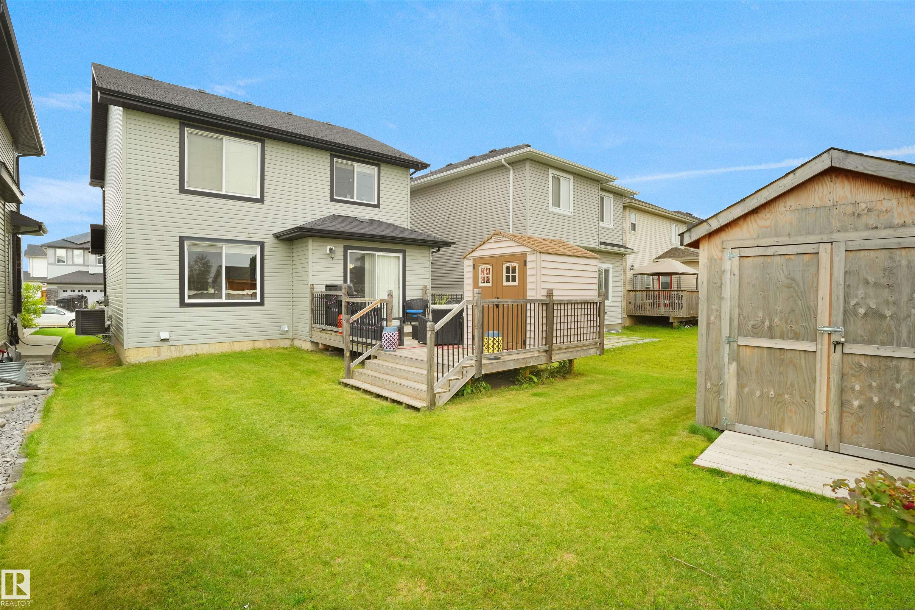 Welcome to your dream home! This stunning 1,975 sq ft two-story perfectly blends style, comfort, and practicality. The chef’s kitchen boasts brand-new 2025 appliances, including an induction stove, microwave hood fan, and a spacious fridge with ice and water dispenser. Upstairs features 3 generous bedrooms, 2 full baths, plus a main-floor half bath. The partially finished basement includes plumbing for a future bathroom. Step outside to a massive 12'x21' deck—ideal for entertaining—and enjoy raspberry and haskap bushes in your yard. Two sheds (custom with wide doors + 7'x7' vinyl) provide ample storage. With central A/C (2023), a heated garage (2024) with smart door, and easy access to top schools, shopping, and the Anthony Henday, this move-in-ready home truly has it all!