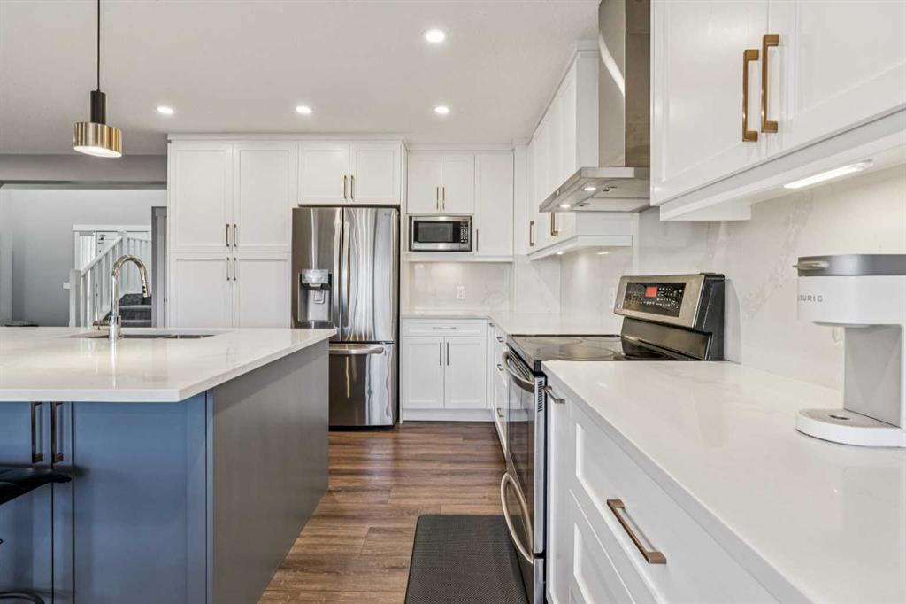 *** OPEN HOUSE Apr 25 SAT 2pm-4pm *** Welcome home! Perfectly located in the highly sought-after community of Panorama Hills, this home offers an exceptional setting with quiet cul-de-sac and backing onto a green field of St Jerome Catholic school, so your kids can walk to school and even come home for a lunch! As you enter the home, you will be wowed by the renovated, open-concept main level, and SW-facing backyard with large windows capturing an abundance of natural light throughout the day. This home has been extensively updated for modern comfort and style with new roof & garage door (2025), major renovation (2024) with fresh paint, new luxury vinyl flooring, new cabinetry, new quartz countertop, an island with breakfast bar, new faucet and sink, T-shaped hood fan, new kitchen appliances, washer & dryer, new ceiling, new light fixtures, new window coverings, and a beautifully stone-decorated fireplace. The inviting living room and huge dining area overlooking your proud backyard. Step out onto the reconditioned deck to enjoy alfresco lunch, BBQ dinner, evening wines, or just chill out and watch your kids playing. Convenient laundry/mudroom with shelving and a half bath complete the main level. Upstairs, you’ll find a large bonus room with oversized windows suitable for kids play area, family lounge, or home office. The spacious primary bedroom features a walk-in closet, 4pc ensuite bathroom with a soaker tub and separate glass shower booth. Two other bedrooms are well-sized, and there is another 4pc bathroom to share. This level has been renovated (2024) as well with new carpet, new toilet bowls, new shower booths, new sinks with touch faucets. The fully developed basement adds even more living space, offering a large recreation area for home theatre or home gym, along with 4th bedroom and 4pc bathroom – making a perfect setting for a big family or overnight guests. Plus, central AC for hot summer days, but cozy gas fireplace for cold evening! Not to mention the location benefit, just a few mins drive to community centre, VIVO centre, massive shopping hub with grocery stores, big box retailers, restaurants, and other popular shops. Aweome home with lots of upgrade! Best valued home! Fantastic location! Professional duct cleaning & luxury window cleaning pkg arrangement for next week! Don’t miss this opportunity! Book your private showing today!
