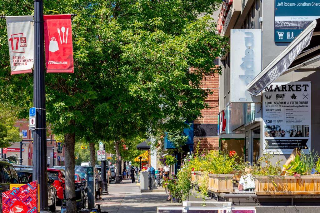 PET FRIENDLY, LARGE SQUARE FOOTAGE (718 sf) LOW CONDO FEES & UNDERGROUND PARKING!!! Welcome the Terrace! This bright and spacious one-bedroom, one-bathroom condo is perfect for professionals, first-time buyers, or those looking to downsize without compromise. Ideally located just steps from Calgary's vibrant 17th Avenue, you'll love the walkable lifestyle with trendy boutiques, top-rated restaurants, and cozy cafés right outside your door. Nestled in a secure gated complex, The Terrace offers underground parking and a beautifully landscaped central courtyard, an ideal spot to enjoy your morning coffee or connect with neighbors. Inside, pride of ownership shines throughout. The open-concept kitchen features crisp white cabinetry and abundant storage, while the convenience of in-suite laundry adds to everyday ease. The generously sized bedroom boasts a large walk-in closet and sliding patio doors leading to a private balcony offering views of the park with a sunny South exposure. Pet owners will appreciate the nearby off-leash dog park just one block away at 14th Ave & 11th St, perfect for furry friends and active lifestyles alike. Don't miss your chance to live in one of Calgary's most sought-after urban communities. Book your private showing today! (photos are virtually staged)