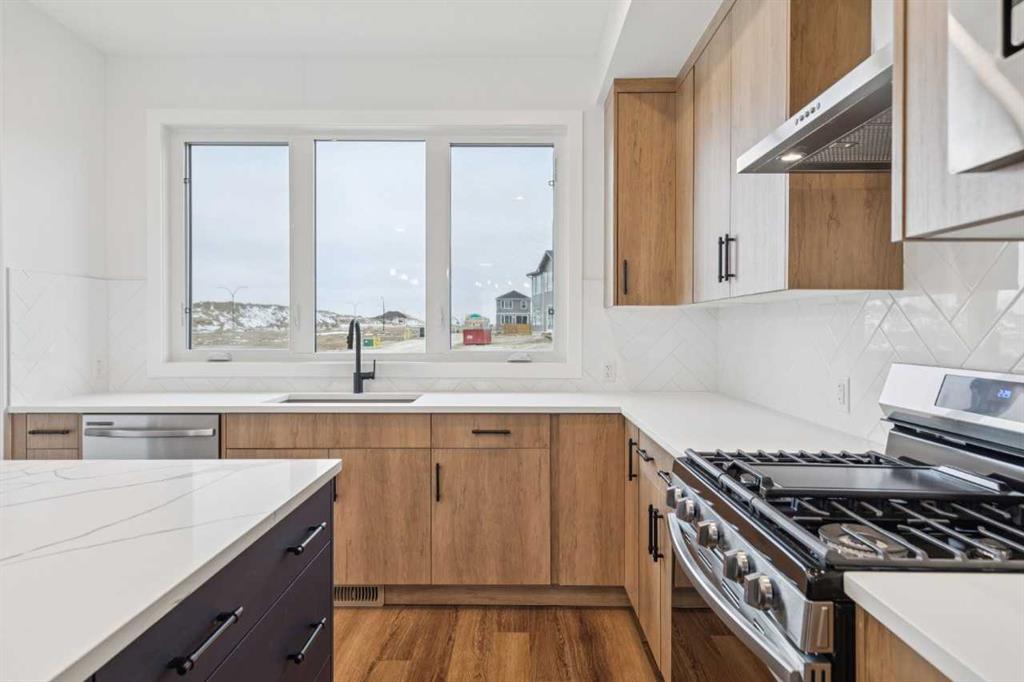 Welcome to the Elliott II by NuVista Homes, located at 15477 45 Street SW in the sought-after Vermilion Hill community. This well-designed 1,709 sq. ft. two-storey home offers 3 bedrooms and 2.5 bathrooms with a functional and modern layout. The main floor features 9’ ceilings, luxury vinyl plank flooring, and a bright open-concept design. The kitchen includes quartz countertops, taller upper cabinets, and upgraded Samsung appliances including a gas range and built-in microwave. Upstairs, the primary bedroom offers a walk-in closet and private 4-piece ensuite, along with two additional bedrooms and convenient upper-level laundry with adjacent linen storage. A side entrance and 9’ foundation provide flexibility for potential future basement development. Completing the home is a 20’ x 20’ rear detached garage. Ideally located near parks, pathways, and everyday amenities, this home offers comfort and long-term value.