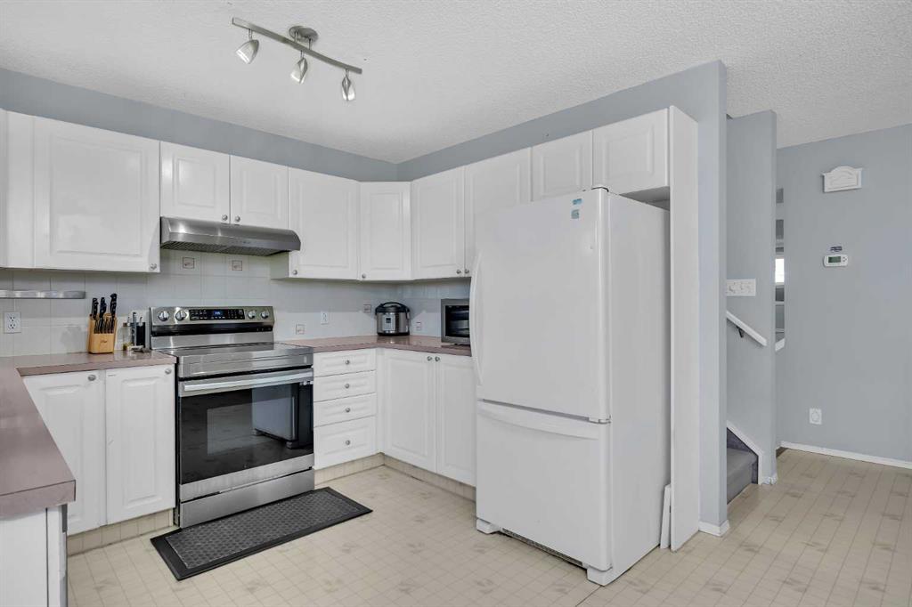 This well-maintained end unit offers added privacy, great natural light, and a functional multi-level layout designed for comfortable everyday living. The entry level features a convenient 2-piece bathroom, generous space for coats and shoes, and direct access to the attached garage. A short flight up, the bright living room stands out with extra-tall ceilings and a cozy gas fireplace, creating a spacious, airy feel that’s hard to find in townhome living. The next level opens into a large kitchen and dining area with enough room to accommodate a sitting area or workspace, making it ideal for both daily living and entertaining. Upstairs, the primary bedroom includes a 4-piece ensuite and access to a private, covered balcony. Two additional bedrooms, a full bathroom, and upper-level laundry complete the upper floor. The fully finished basement provides a versatile bonus space that works well as a home office, gym, media room, or hobby area, while still offering plenty of storage. Recent updates within the past five years include a raised front deck with new boards and railing, three exterior doors, and eleven windows. Major mechanical upgrades have also been completed, including a furnace and hot water tank replaced approximately three years ago, along with the addition of a water softener. As an end unit, the home further benefits from additional windows and a quieter setting within the complex. Conveniently located within walking distance to shopping, schools, parks, and restaurants, this property offers a practical layout and an easy Okotoks lifestyle.
