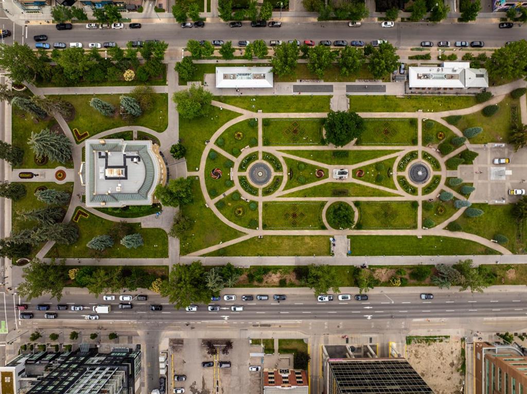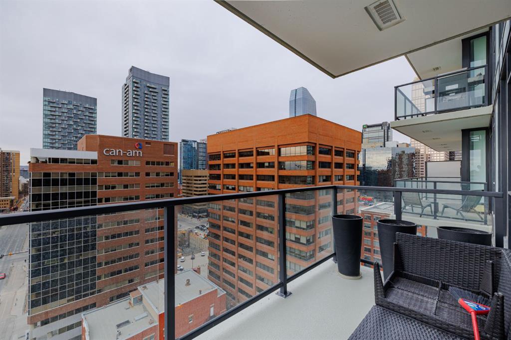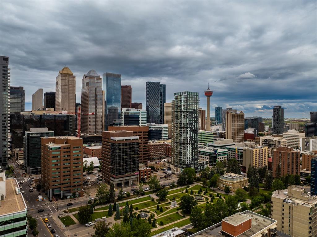 Step into this stunning 16th-floor corner end unit, boasting ONE TITLED UNDERGROUND PARKING STALL and breathtaking panoramic views! This condo offers unobstructed vistas of the city skyline, the majestic mountains, and Memorial Park. Natural light floods the space through expansive floor-to-ceiling windows, enhanced by soaring 9-foot ceilings. A showcase of modern elegance, the home features upscale finishes including granite countertops, a spacious center island, air conditioning, and high-end integrated appliances. The open-concept layout seamlessly connects the living and kitchen areas into a sleek, functional space perfect for working, dining, or relaxing. The primary bedroom is a private retreat with views overlooking Memorial Park and direct access to a walk-through closet and a luxurious 5-piece ensuite. Pamper yourself with a double vanity topped with marble counters, a glass-enclosed shower, and a deep soaking tub. The bright home office is flooded with natural light, while the second bedroom captures sweeping views of the distant Rockies. Extend your living space outdoors on the balcony—perfect for summer barbecues or simply soaking up the sun. Additional features include one heated underground parking stall, an assigned storage locker, and access to a car wash station in the secure parkade. Park Point isn’t just a place to live—it’s a lifestyle. Enjoy premium amenities including a beautifully appointed owner's lounge with kitchen and fireplace, a guest suite, 24-hour concierge, on-site security, and secure bike storage with a wash station. Outdoor spaces include a Zen terrace and garden, BBQ area, and a cozy fire pit. Wellness-focused residents will appreciate the fully equipped gym, yoga studio, sauna, and steam room. Located just steps from the Elbow River pathways, tennis and pickleball courts, and the lively restaurants and boutiques of 17th Avenue. You’re also minutes from the Calgary Public Library and the +15 skywalk system—offering year-round connectivity and urban convenience.