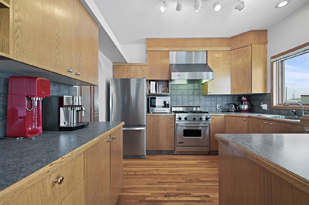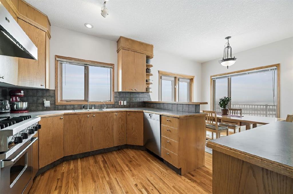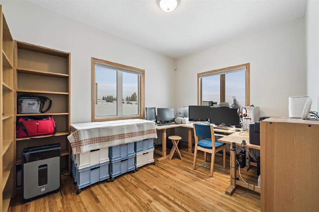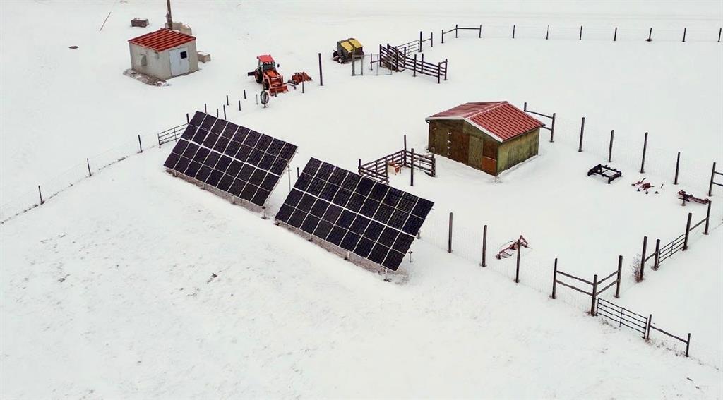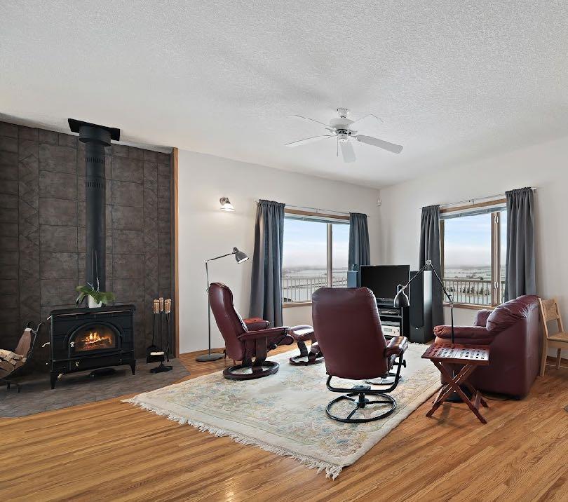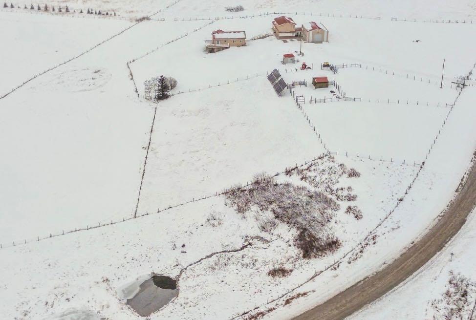Exceptional 24.02-acre property with breathtaking 360° views of the countryside, sunrises, sunsets, and the Rocky Mountains. Fully fenced and gated, this former licensed commercial operation features extensive concrete walkways, patios, and aprons. A year-round headwater spring feeds three connected ponds with agricultural water rights. The home offers a wrap-around deck, walkout lower level, hardwood floors, 3 bedrooms, multiple baths, a Vermont Castings wood-burning heater, spacious rec room, and ample storage. A well-designed fully PERMITTED commercial complex (cost to build today $800k) includes a 2-storey COMMERCIAL CODE building, warehousing/storage, attached via a reception/office is a huge workshop with 12’x12’ overhead door. All are extensively serviced with hydronic heating, heated concrete floors, A/C (select buildings), Vacu-Flo, radon mitigation, security and intercom systems, hail-resistant roofing, and robust utilities. Well and 3,000-gallon cistern, softened and distilled water, multiple hydrants, stock waterer, annually maintained septic, grid-tied SOLAR system ($70k) with surplus power credits, and standby diesel generator. Ideally located with quick access to Calgary & Okotoks, also on a school bus route, with hayed fields and excellent potential for subdivision, secondary suite, or home-based business (County approval required).
