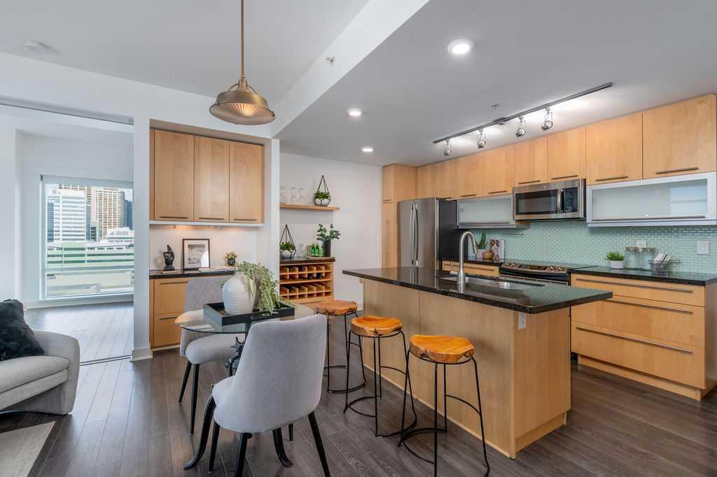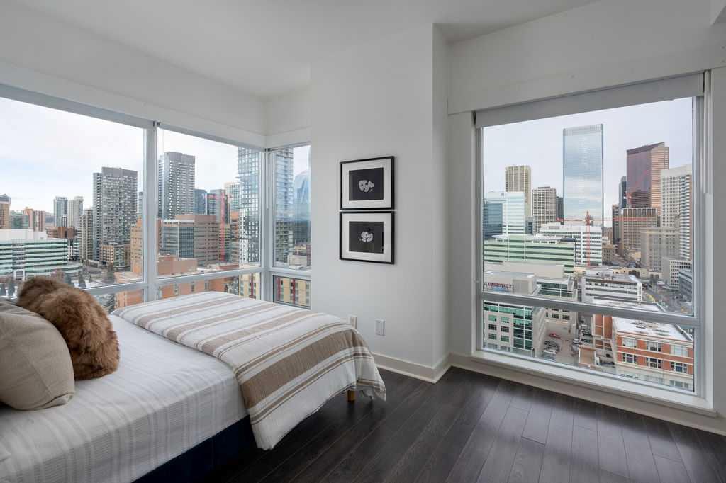 If you’ve been searching for a thoughtfully updated inner-city condo with an ideal layout and west-facing views, this could be the one. Welcome to Unit 1703 in Union Square, a well-run concrete building in the heart of Calgary’s Beltline. This bright and spacious 2-bedroom, 2-bathroom home offers 889 sq ft of functional living space with bedrooms smartly positioned on opposite sides of the main living area, perfect for privacy, guests, or a work-from-home setup. The open-concept living, dining, and kitchen space is flooded with natural light thanks to floor to ceiling windows and the west-facing exposure, offering beautiful afternoon light and incredible sunset views. The home has been extensively upgraded with features uncommonly found in this building, including new laminate plank flooring throughout, fully renovated bathrooms with new vanities, mirrors, tile flooring, and fixtures, and the removal of all textured ceilings, now flat and modern throughout the entire unit. The kitchen is complemented by a custom espresso bar with matching granite and cabinetry. The entryway features new tile flooring, and additional tile extends from the primary bathroom into the primary closet. In the primary closet, wire shelving has been replaced with custom built-ins with rods and drawers. Additional improvements include upgraded lighting fixtures throughout, a living room sconce, LED pot lights, a dedicated reading light on a separate circuit near the sofa, and blackout blinds in the primary bedroom. Major appliances have also been updated, including a newer washer and dryer in 2022, a newer fridge in 2022, and a new dishwasher in 2025, offering peace of mind for years to come. Union Square is a pet friendly buiding, known for its solid construction, strong management, and unbeatable location. From here, you can walk downtown, enjoy the restaurants and cafes along 1st Street SW, or explore everything 17th Avenue has to offer. Whether you are heading to work, meeting friends, or running errands, this is inner-city living at its best. This is an exceptional opportunity for first-time buyers, professionals, or anyone looking for a stylish, move-in-ready condo in one of Calgary’s most walkable neighbourhoods. Book your private showing today.