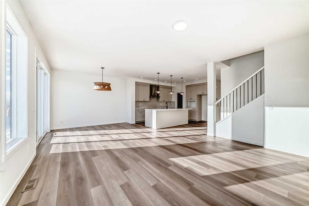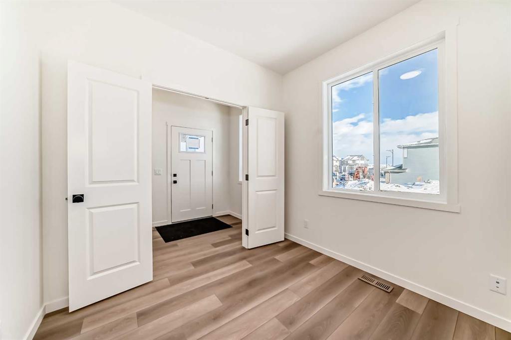 Move in today. This brand-new Sierra R by Daytona Homes delivers 2350 square feet of finished living space with a smart, functional layout that actually works for families. The main floor opens with a bright foyer and front den, ideal for a private office or quiet flex space. The kitchen is clean, modern, and efficient, finished with a central island, upgraded lighting package, and a walk-through pantry that keeps clutter out of sight. It flows directly into the dining nook and great room, where oversized windows and a gas fireplace create a warm, open main living zone buyers want. Upstairs, the layout hits every need. The primary suite is large and well-designed with a walk-in closet and a polished ensuite featuring a freestanding tub, walk-in shower, dual vanities, and contemporary finishes. Three additional bedrooms, a full bathroom, second-floor laundry, and a bonus room complete the upper floor, giving families the space separation they rely on day to day. The unfinished basement features a 9-foot foundation height and a practical layout ready for future development. The exterior shows strong curb appeal with a modern farmhouse elevation, smartboard detailing, stone accents, and a full double attached garage. Located in Southbow Landing, Cochrane’s fast-growing community, this home offers quick access to future parks, walkways, local amenities, and the Bow River. With today’s clean modern finishes, brand-new systems, and immediate occupancy, this is a turnkey opportunity in a community built for long-term value.