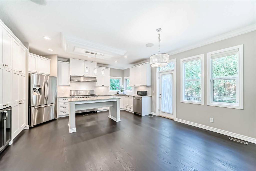A beautifully refreshed and redesigned home in desirable Aspen Woods! This stunning 2,763 sq ft two-storey combines timeless elegance with modern updates—showing like new! The Chef’s kitchen will impress with its professional-grade gas range, wine fridge, granite countertops, subway tile backsplash, and ample custom cabinetry. The newly refinished hardwood floors throughout the main level add warmth and sophistication to the open layout. Upstairs, the primary retreat features French doors leading to a luxurious spa-inspired 6-piece ensuite with a jetted tub, oversized shower, dual vanities, and a generous walk-in closet. The vaulted bonus room provides the perfect family gathering space, while the fully developed basement offers a spacious recreation room, a guest bedroom, a full bath, and a flex area—ideal for a gym or home office. Additional highlights include 9’ ceilings, granite counters throughout, built-in speakers, designer lighting, crown moldings and a backyard deck surrounded by mature trees—perfect for entertaining or relaxing in privacy. Located on a quiet crescent, just a short walk to Aspen Landing Shopping Centre and Calgary’s top-rated schools, this is a move-in-ready home that blends luxury, comfort, and unbeatable location—a true Aspen gem!
