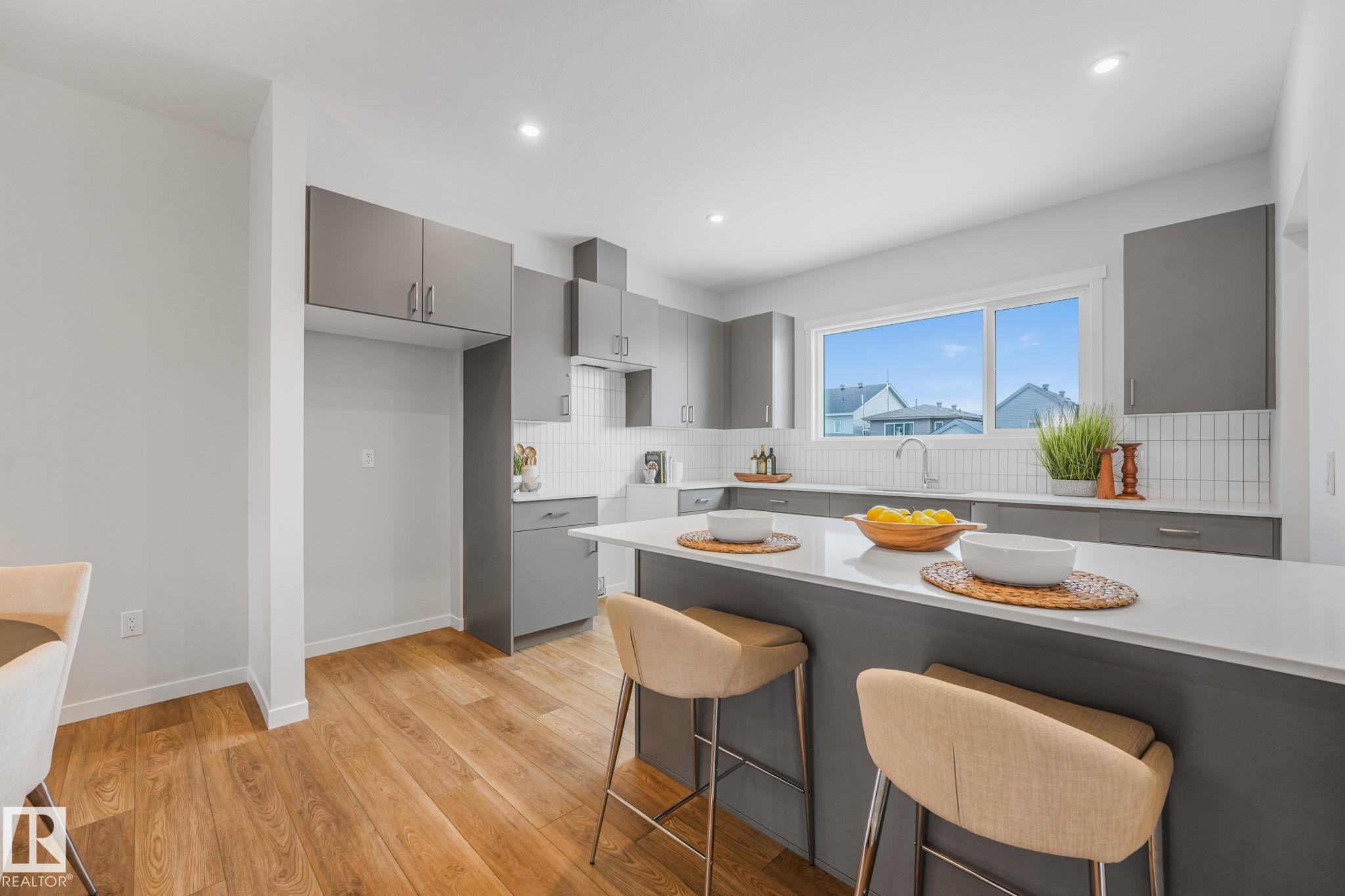 Beautifully designed modern farmhouse perfect for growing families. offering 1,632 sq. ft. of comfortable living space. The main floor features 9-foot ceilings and a bright open layout with a spacious living room, dining area, and functional kitchen with plenty of cabinets and an eating bar. Upstairs includes a large primary bedroom with walk-in closet and ensuite, plus two additional bedrooms, a full bathroom, and convenient upper-floor laundry. The unfinished basement with rough-in plumbing offers great future potential. Built with quality and backed by the Alberta New Home Warranty Program.