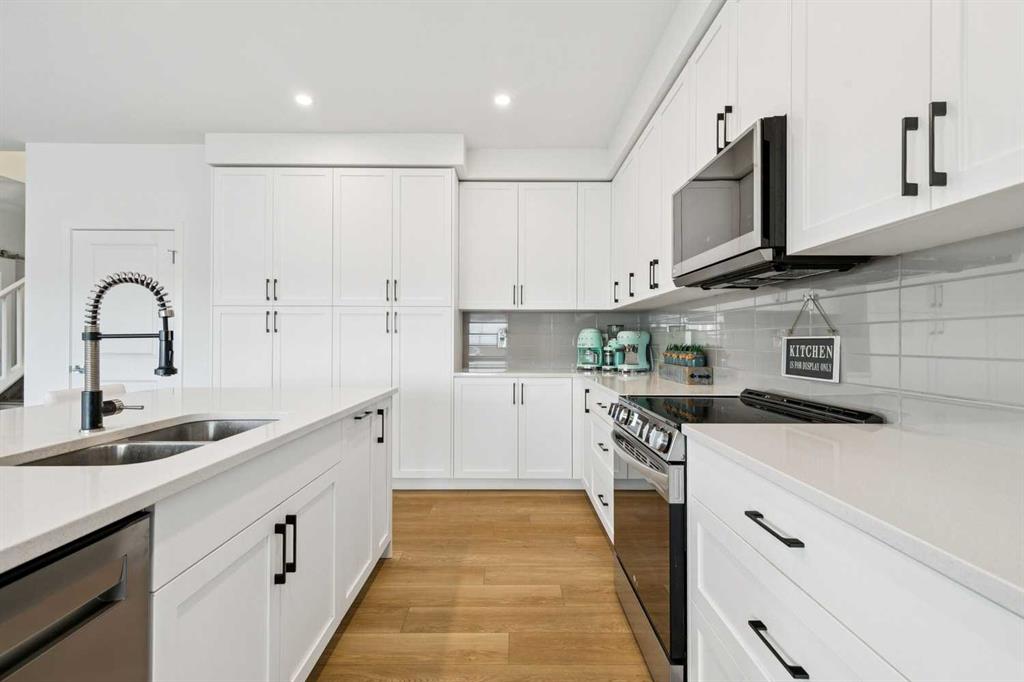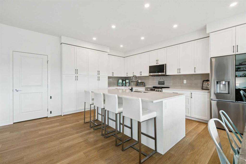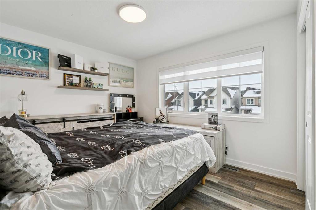 This new but better-than-new home is located in the award-winning community of Wildflower by Minto Communities, voted Canada’s Best New Community in 2025. Offering over 2,400 sq ft of extensively upgraded living space and a TRIPLE CAR GARAGE, you may have just found your new home. The rare three-car tandem garage provides exceptional space for vehicles, storage, or hobbies and includes a dedicated ELECTRIC VEHICLE CHARGER—a highly sought-after upgrade that future-proofs the home for modern living. Thoughtfully designed throughout, this residence features an ideal layout with FOUR OVERSIZED BEDROOMS, a large upper bonus room, and an UNFINISHED WALK OUT BASEMENT ready for future development. Curb appeal is immediate with a durable HARDIE BOARD EXTERIOR, PERMANENT OUTDOOR SOFFIT LIGHTING, and an oversized concrete front porch—and this is just the beginning. Inside, luxury vinyl plank flooring flows throughout both the main and upper levels, creating a cohesive and contemporary feel. The expansive open-concept main floor is anchored by a beautifully designed kitchen with abundant cabinetry, generous counter space, and UPGRADED APPLIANCES well beyond builder standard. The dining area and bright living room are perfectly positioned to capture the home’s ELEVATED EAST-FACING VIEWS, while RUSTIC BARN DOORS throughout the main level add warmth and character. A versatile MAIN FLOOR DEN is ideal for a home office or flex space, and a thoughtfully designed mudroom adds everyday convenience. Upstairs, the layout continues to impress. The primary suite is privately tucked away down its own hallway, creating a peaceful retreat complete with a massive walk-in closet and a beautifully finished ensuite offering dual vanities and a walk-in shower. All three additional bedrooms are generously sized, and the upper family room provides an inviting gathering space for movie nights or playtime. The upper main bathroom is thoughtfully designed with dual sinks and a separate enclosed tub/shower area, making busy mornings seamless for families. Upstairs laundry adds another layer of function to this well-planned level. The outdoor living space is equally impressive, featuring a Duradek-finished back deck with stunning east-facing views over the city, perfect for morning coffee or evening relaxation. The fenced and landscaped backyard offers both privacy and usability, while the walk-out basement presents endless opportunities for future customization. Additional upgrades include central air conditioning, completing this exceptional home. Located in Wildflower, residents enjoy access to the community’s signature Hillside Hub, featuring playgrounds, walking paths, and scenic lookout points—designed to foster connection, wellness, and an active lifestyle. This is a rare opportunity to own a truly turnkey home with premium upgrades in one of Airdrie’s most desirable communities.