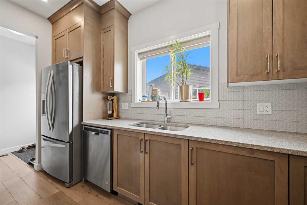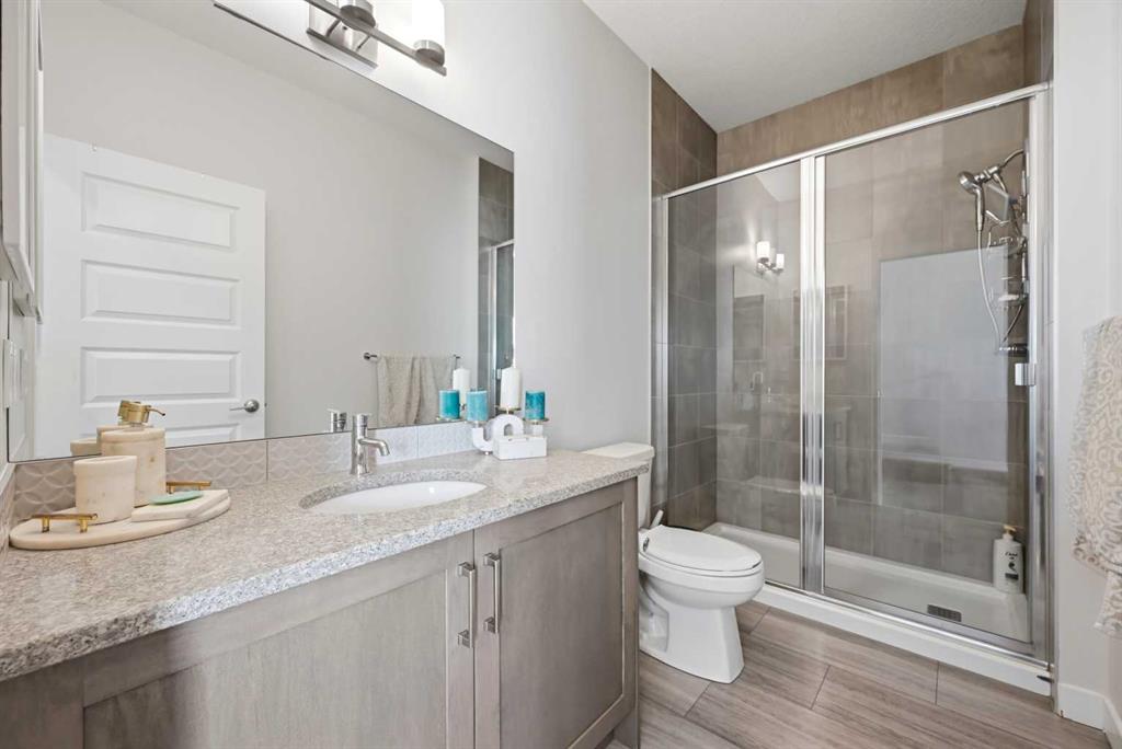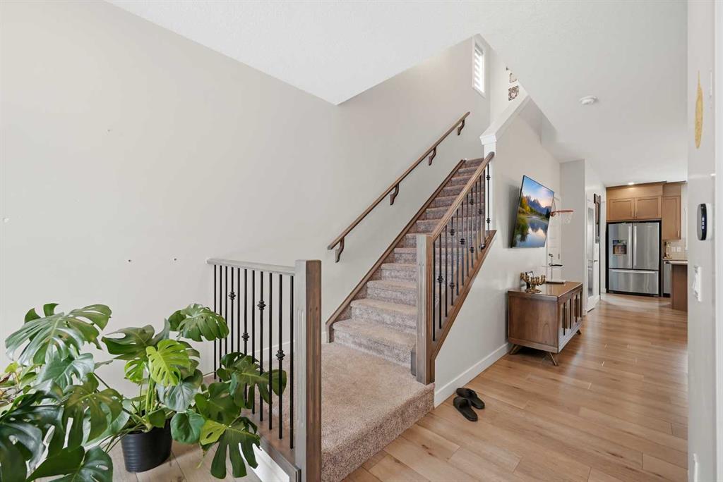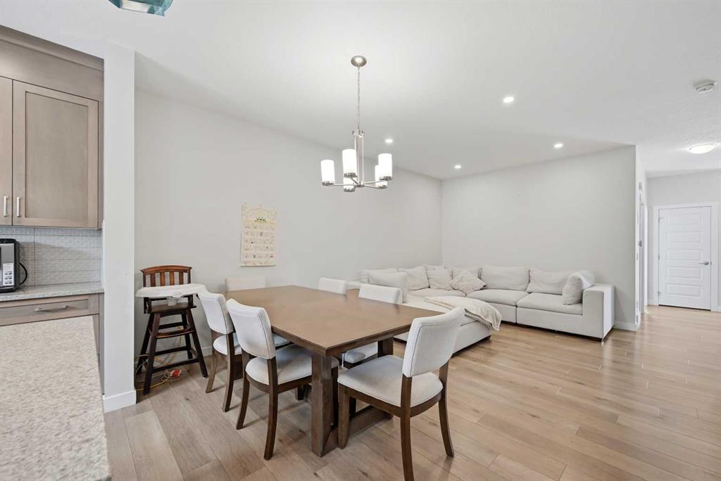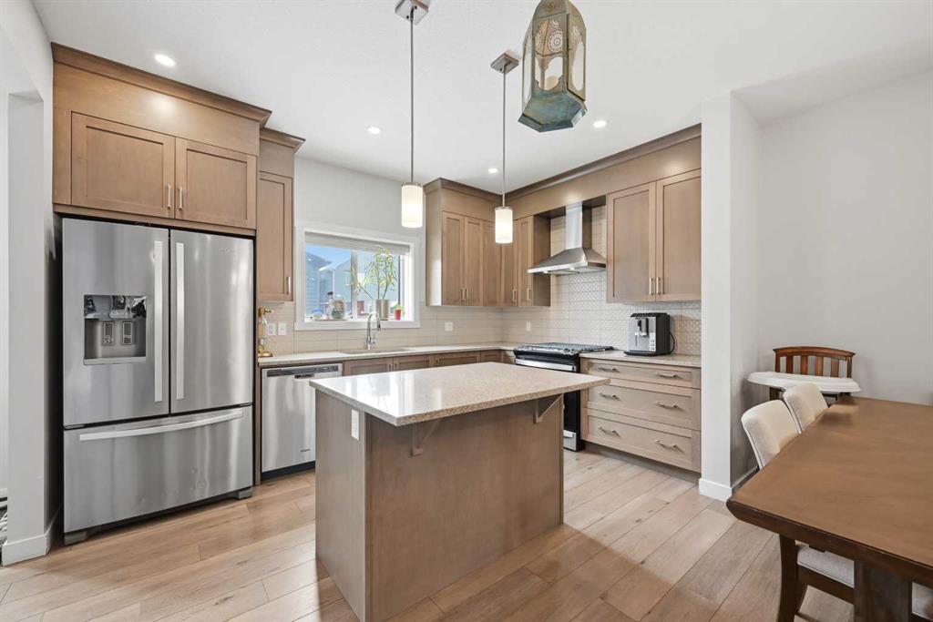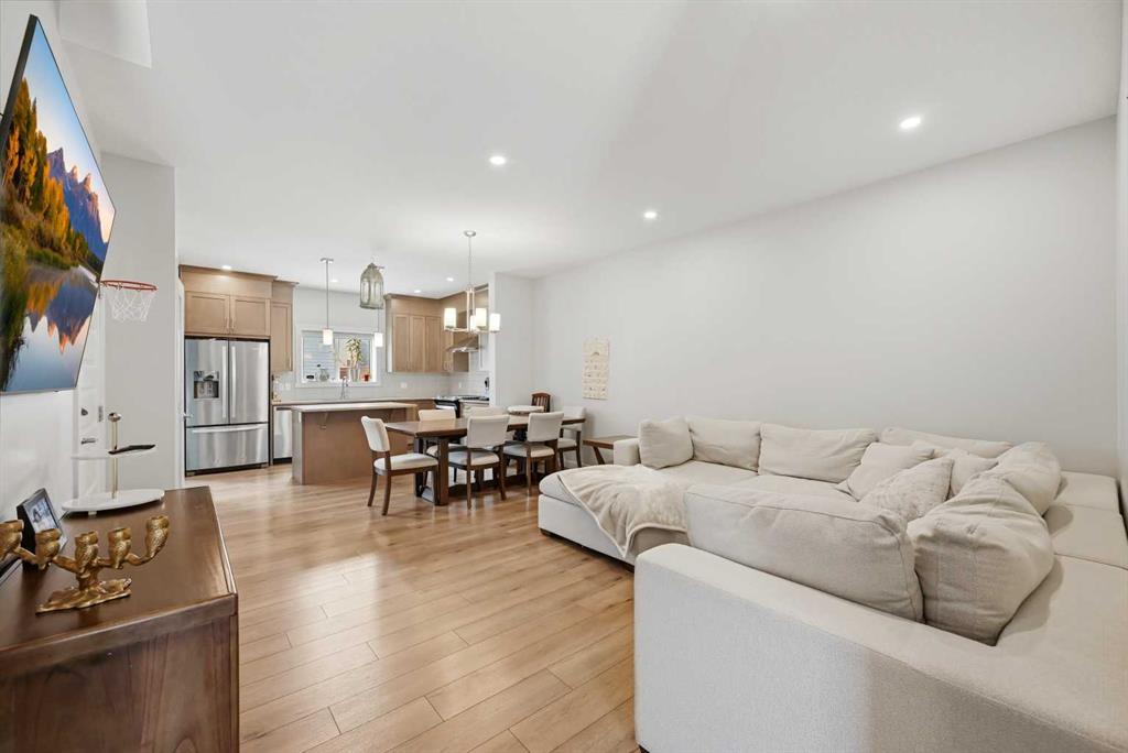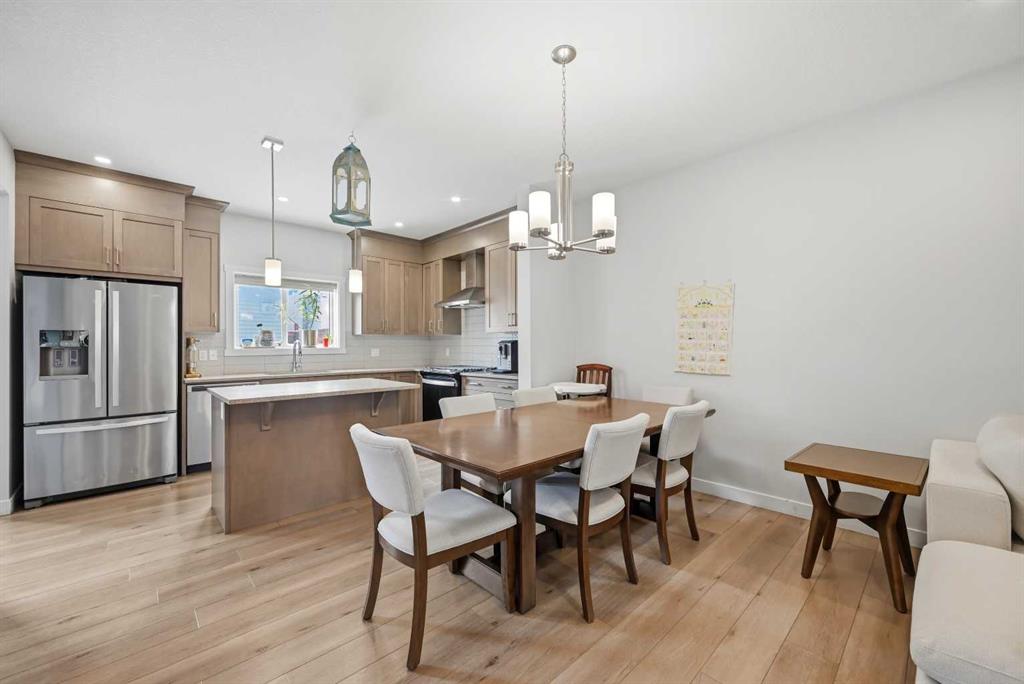 Welcome to this beautifully designed family home in the vibrant community of Homestead, offering a thoughtful layout, modern finishes, and the convenience of a City of Calgary–registered legal secondary suite. The main floor features a spacious foyer leading into an open-concept living and dining area, ideal for both everyday living and entertaining. The bright kitchen offers ample cabinetry and a functional layout, while a main-floor bedroom and full 3-pc bathroom provide exceptional flexibility for guests, multigenerational living, or a private office. A well-appointed mudroom leads directly to the backyard and the oversized detached garage. Upstairs, the generous primary suite includes a 4-pc ensuite and ample closet space. Two additional bedrooms share a full 4-pc bathroom, and the dedicated upper-floor laundry room adds everyday convenience. The legal, registered basement suite expands your options with two additional bedrooms, a modern 3-pc bathroom, a bright kitchen, and a spacious recreation room—perfect for extended family or rental income potential.