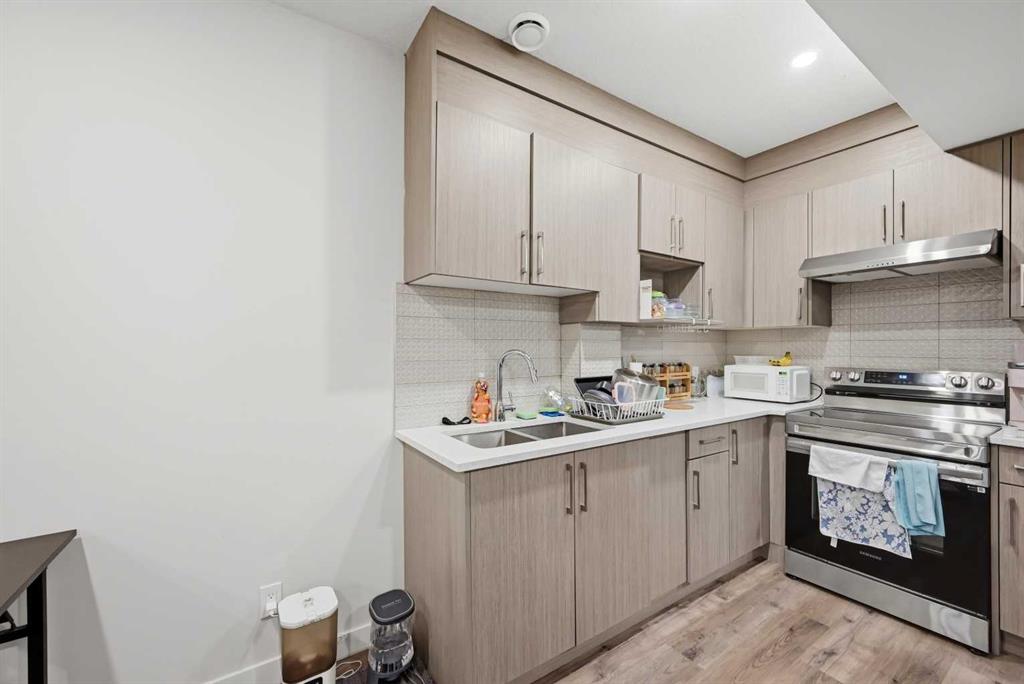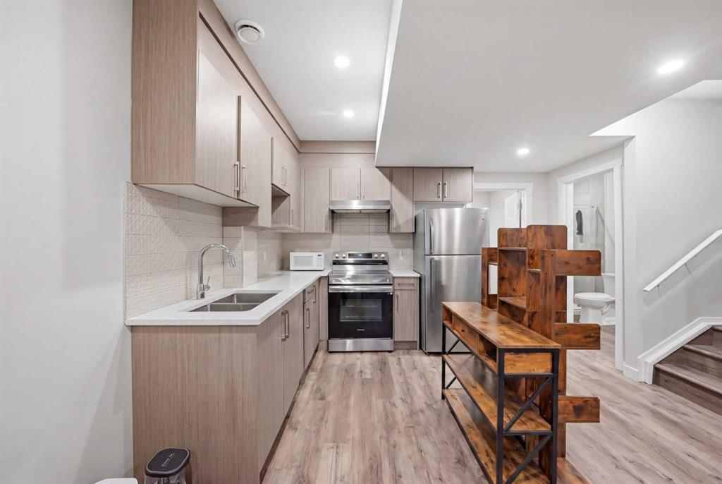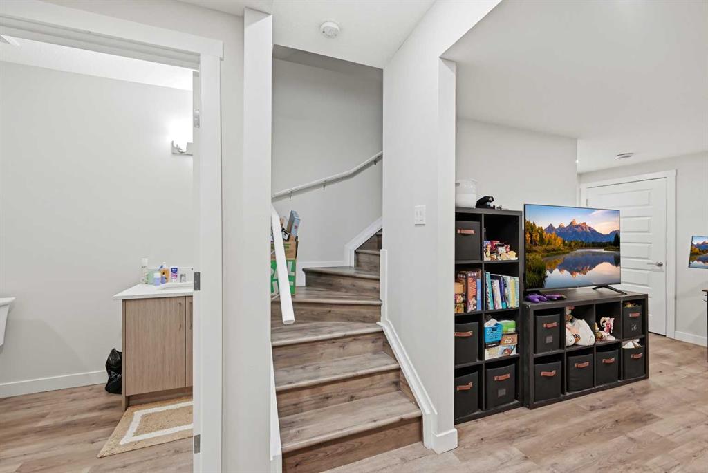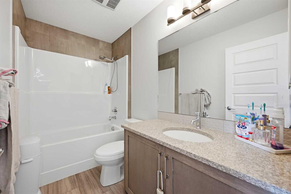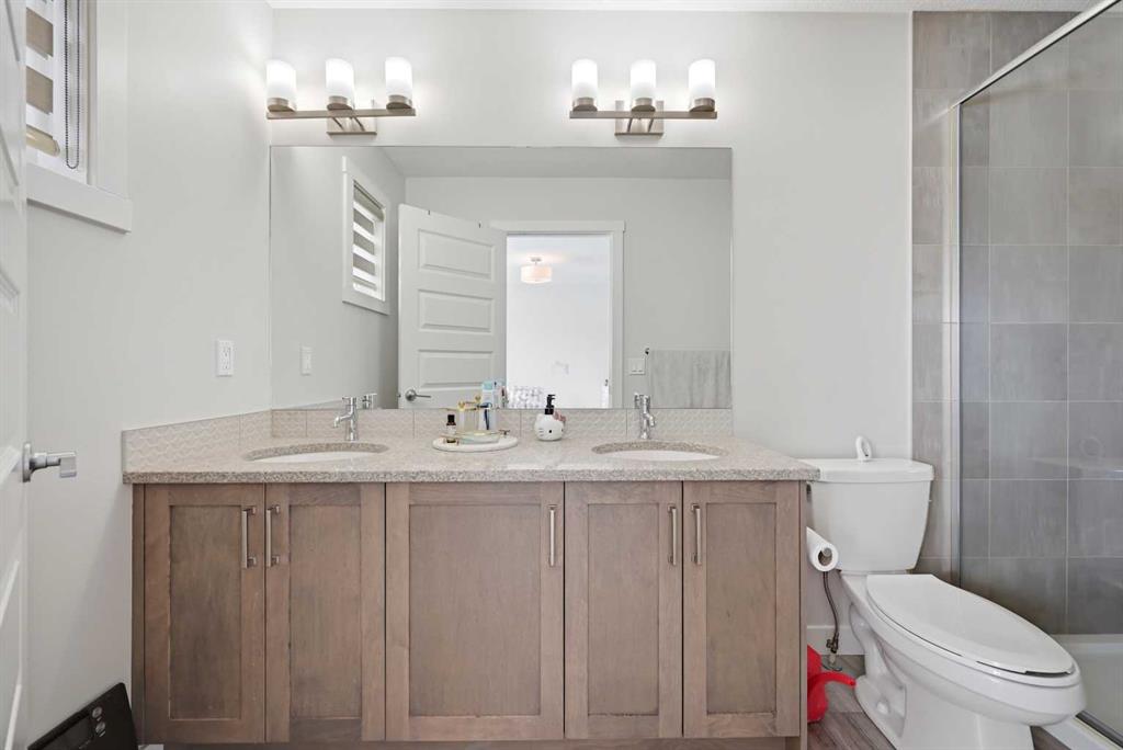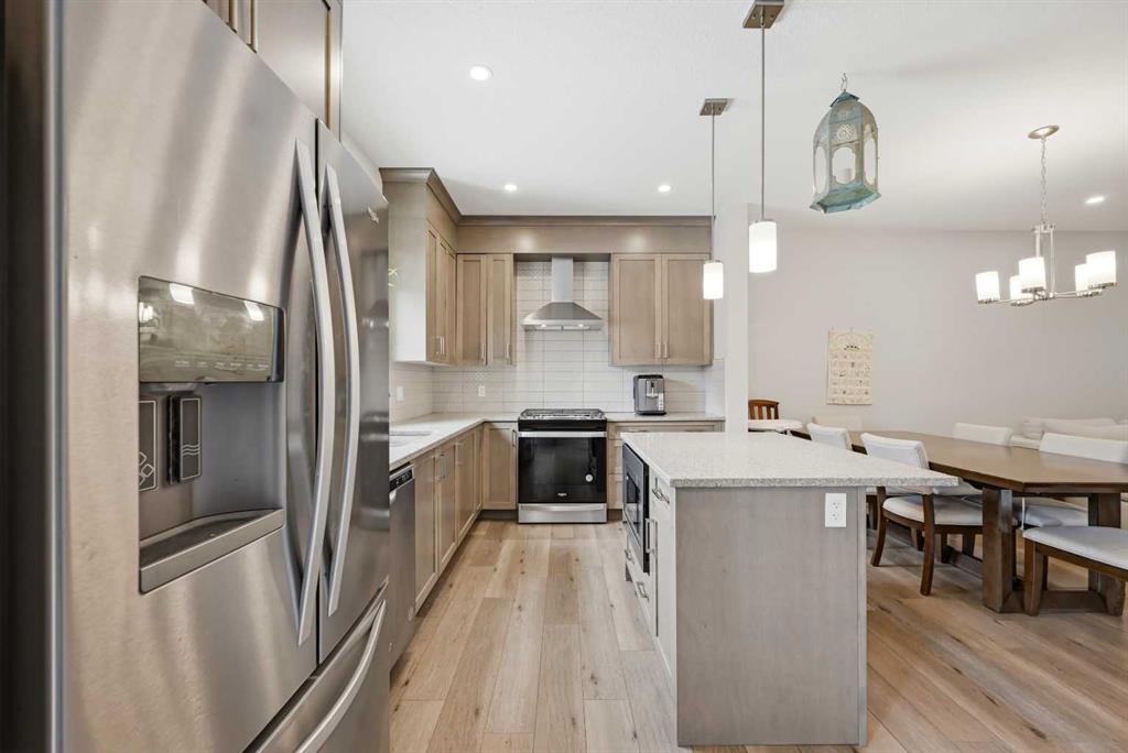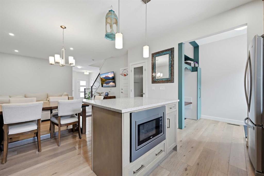 Welcome to this beautifully designed family home in the vibrant community of Homestead, offering a thoughtful layout, modern finishes, and the convenience of a City of Calgary–registered legal secondary suite. The main floor features a spacious foyer leading into an open-concept living and dining area, ideal for both everyday living and entertaining. The bright kitchen offers ample cabinetry and a functional layout, while a main-floor bedroom and full 3-pc bathroom provide exceptional flexibility for guests, multigenerational living, or a private office. A well-appointed mudroom leads directly to the backyard and the oversized detached garage. Upstairs, the generous primary suite includes a 4-pc ensuite and ample closet space. Two additional bedrooms share a full 4-pc bathroom, and the dedicated upper-floor laundry room adds everyday convenience. The legal, registered basement suite expands your options with two additional bedrooms, a modern 3-pc bathroom, a bright kitchen, and a spacious recreation room—perfect for extended family or rental income potential.