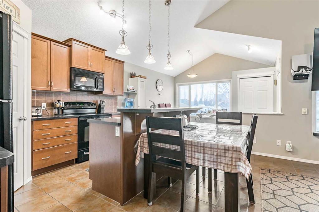 Immaculate fully finished bi-level home showcasing true pride of ownership throughout. Very well maintained over the years, this property offers over 1,800 sq. ft. of professionally developed living space. The main level features a bright, modern open-concept layout with vaulted ceilings, creating an airy and inviting atmosphere. The kitchen is both stylish and functional, complete with durable tile flooring, maple cabinetry, a large raised breakfast bar island, and a walk-in pantry. Expansive windows flood the space with natural light, enhancing the seamless flow into the dining and great room areas. The spacious primary bedroom easily accommodates a king-sized bed and includes a walk-in closet. A second bedroom and a well-appointed 4-piece bathroom complete the main floor. The fully developed lower level, professionally finished by the builder, offers a large and bright family room highlighted by a cozy corner gas fireplace with tile surround and mantle. Two additional bedrooms and a full bathroom provide excellent space for family or guests. Outside, the property is fully landscaped with a fenced backyard—perfect for relaxing or entertaining.