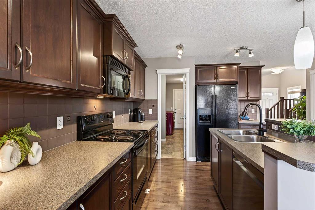 ***OPEN HOUSE - Sunday, March 22nd from 2:00 PM-4:00 PM *** Where to even begin! So many features... Starting outside, you’ll love the impressive 29’ front driveway and the beautifully finished backyard featuring stamped concrete and a gas line for effortless BBQing. The yard offers plenty of space for kids to run and even the potential to add a garage or shed (with approval). The exterior has been extensively updated with a newer roof and flashing, replaced siding along the north side, plus new gutters and downspouts. Durable metal cladding at the front adds a modern touch while keeping maintenance simple—just posts and a beam to paint. Additional features like custom window well covers and a recently serviced A/C add to the home’s comfort and peace of mind. Step inside to a bright and inviting main floor, where a spacious living, dining, and kitchen area is anchored by a cozy gas fireplace and large windows. The pull-through pantry—with storage on both sides—is perfect for busy families, while the laundry and mudroom provide convenient access to the garage. The stunning open-to-above design creates an airy, welcoming feel as you head upstairs. Upstairs, you’ll find two generously sized kids’ bedrooms (Both with built in closet inserts), a bonus room at the front of the home perfect for play or relaxation, and an extra-long main bathroom with the option to add a second sink. The primary suite is tucked away at the back, offering a true retreat with a massive closet, double vanities, a soaker tub, and a large shower—plus plenty of room for a full king-sized bedroom set. The fully finished basement is designed for both comfort and functionality, featuring upgraded cozy carpet, spray foam insulation in the exterior walls, and added ceiling insulation for extra warmth and quiet. Down here, you’ll find a spacious rec room, a beautiful full bathroom with custom cabinetry and a shower niche, and two large bedrooms complete with wainscotting and custom closets. To top it all off, the garage is equipped with a newer door (replaced in 2021) and upgraded opener, rounding out this well-maintained and move-in ready home. You better come check it out today!