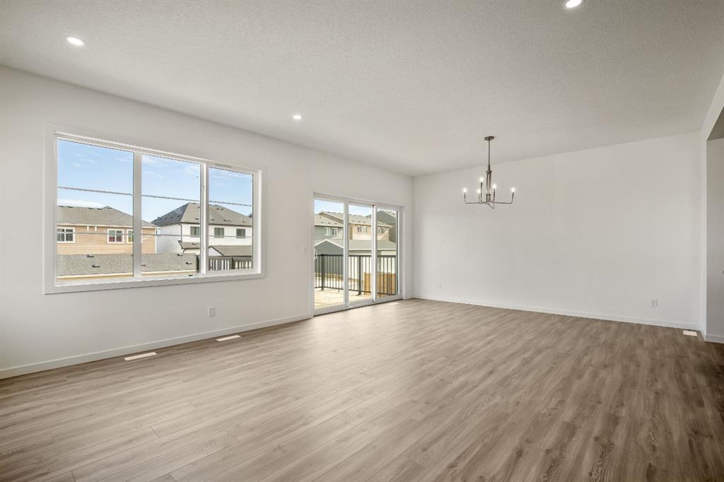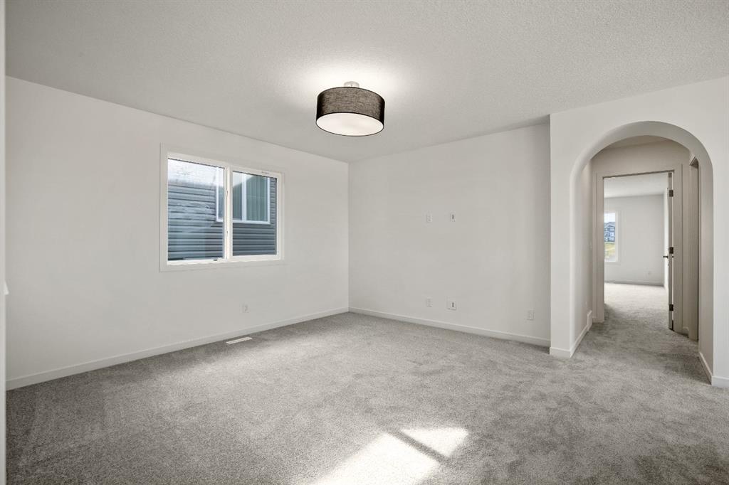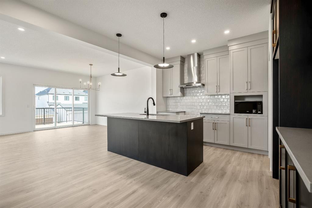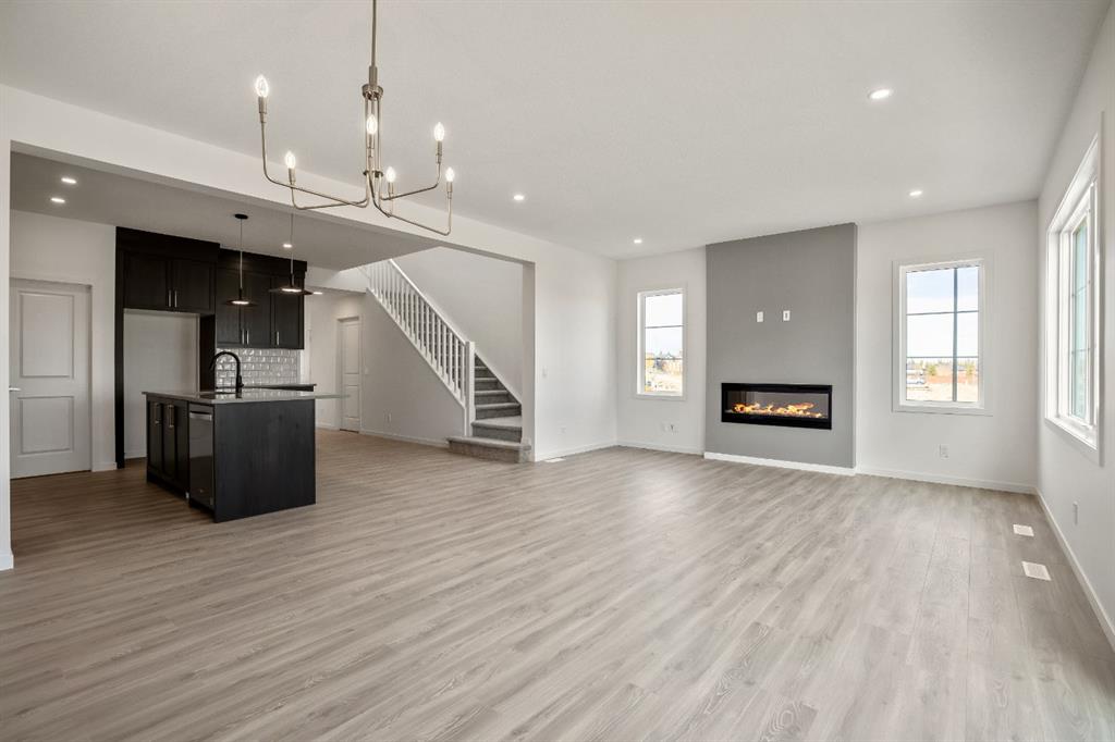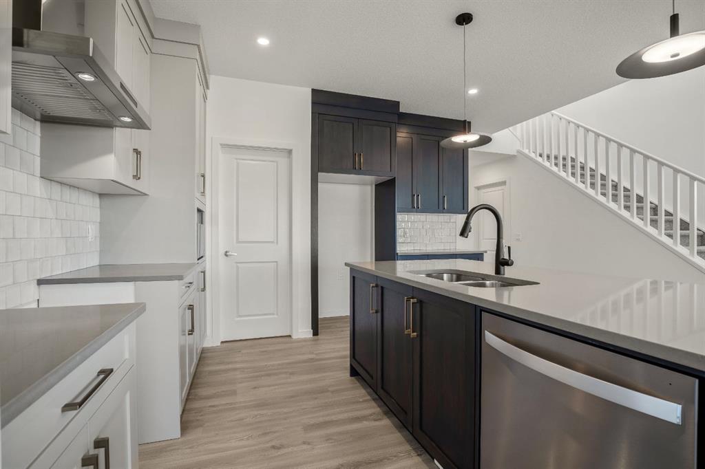 Your dream home and opportunity await! This BRAND NEW gorgeous property is situated on a traditional extra large corner lot! Offering over 2,200 sq ft above grade. As you approach you will notice the great curb appeal and stone detail. This well thought out design offers comfort and practicality. The bright main floor has hard surface flooring throughout, soaring 9' knockdown ceilings, a convenient attached garage and mudroom. The focal point of this home is the chef inspired two tone kitchen, with stunning quartz counters, timeless tile backsplash, custom slow close cabinets that reach to the ceiling, upgraded stainless steel appliances including a chimney style hood fan and a gas range. Adjacent to the kitchen is the bright dining room with extra large patio doors that open to your own private deck with a gas line and VIEWS! The dining room seamlessly connects to the living room making it ideal for entertaining. This room is flooded with natural light and showcases a fireplace centered between two windows. Completing the main floor is a private powder room by the front entrance and a well sized office for those who work from home, or as a homework zone, or a potential play room. When you head upstairs you will notice the elegant railing, more windows drawing in that natural light, and an open to below creating an airy feel. You are then greeted by a central bonus room with arch details on each side adding sophistication to the space. Two well sized bedrooms and a nicely appointed 4 piece bath with quartz counters are on the one side. Where the spacious primary retreat is on the opposite side. Offering a substantial room with a walk in closet and a spa inspired ensuite including dual sinks, quartz counters, a large soaker tub, separate tiled shower and a private water closet. A convenient upper laundry room completes this level. The WALK OUT basement with additional side entrance is a blank canvas and has plenty of potential. It is complete with all the rough ins needed for a basement suited (subject to approval and permitting by the city), including a bathroom rough in at the back, a laundry rough in for stacked laundry under the stairs, and the rough ins for a galley style kitchen on the opposite side of the stairs. This home also has two additional parking stalls at the rear of the home making it possible to have an additional double detached garage(subject to approval and permitting by the city). This home has designer lights throughout, upgraded plumbing, and the quality and craftsmanship Calbridge Homes is known for. Enjoy peace of mind with New Home Warranty as well as front and side landscaping included! Sage Hill has plenty of walking paths, scenic ravine, open greenspaces, shopping, restaurants, and easy access to major roads like Shaganappi Trail, 144 Avenue, and Stoney Trail. Schedule your private tour today!