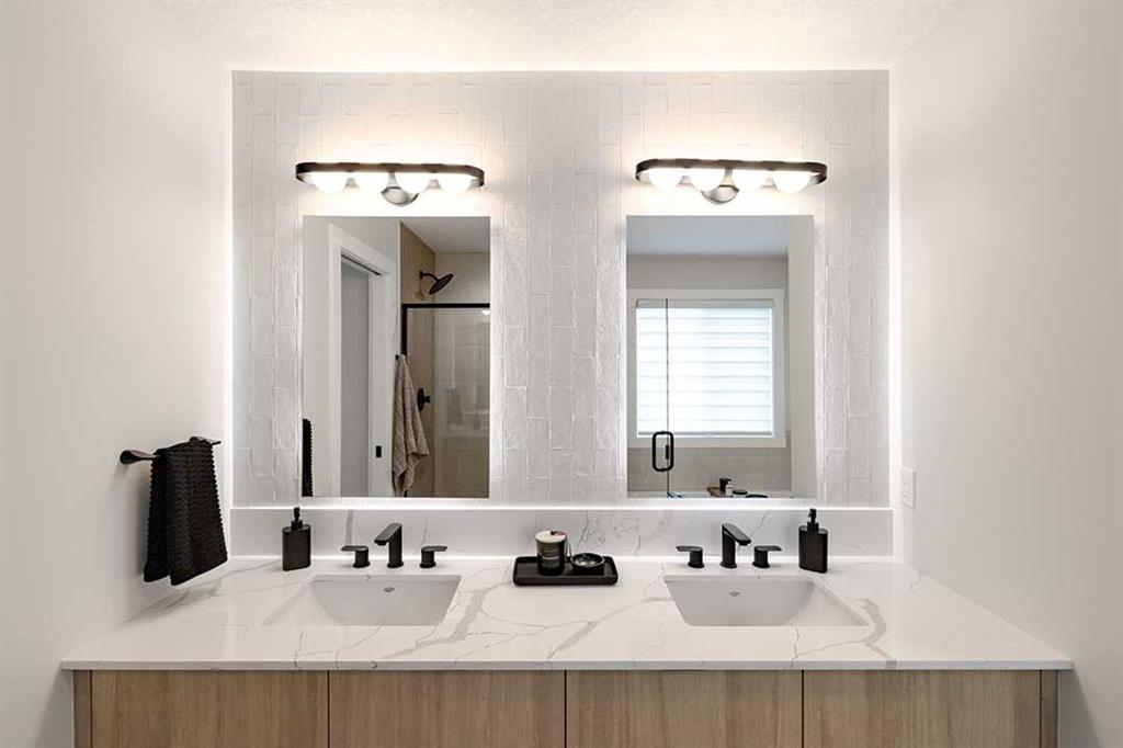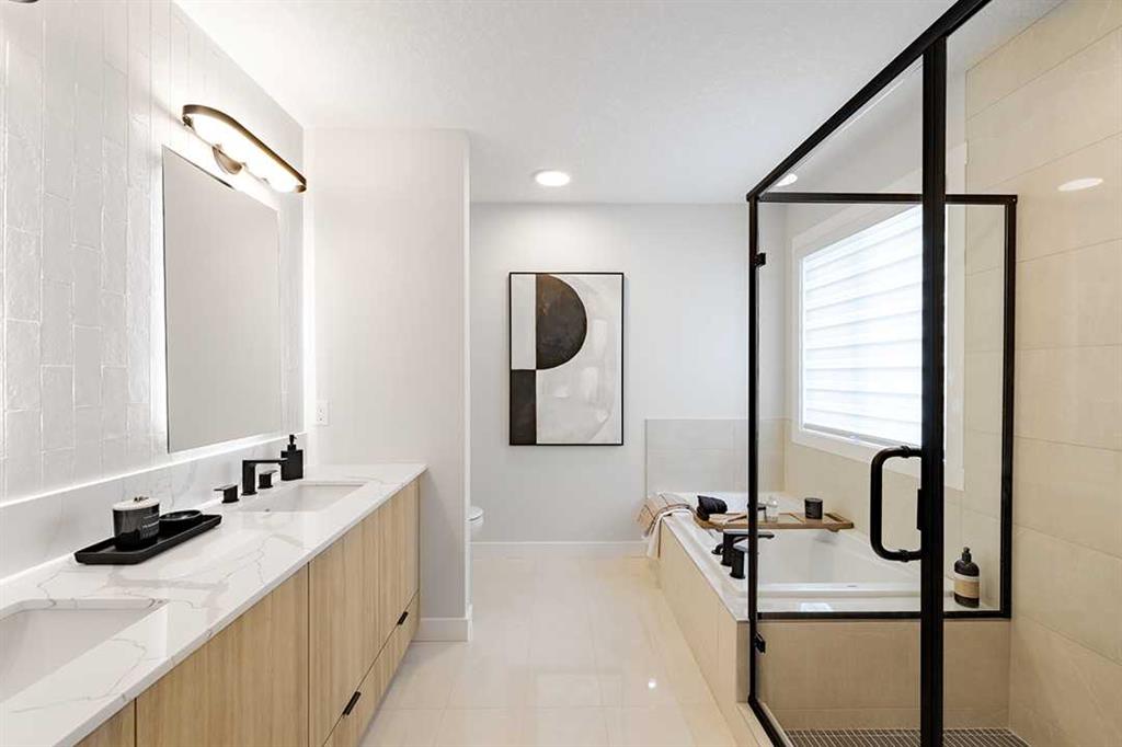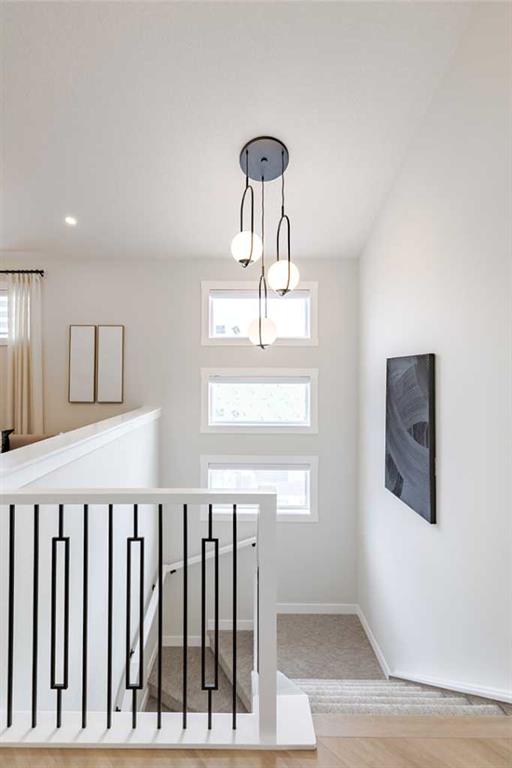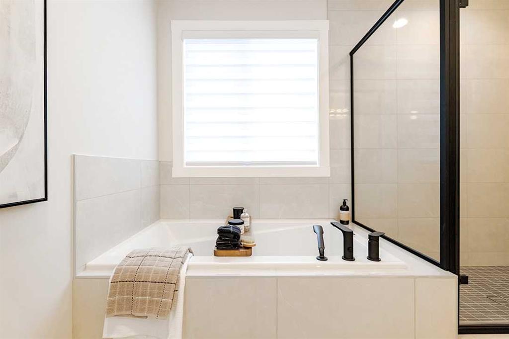 Welcome to the Katalina by Shane Homes, a pre construction front-drive home with a double attached garage located in the community of Rose Ranch. The main floor features a full bedroom and full bathroom with shower, ideal for guests or multi-generational living. The open-concept layout includes a living room with electric fireplace, dining nook, and a kitchen with island seating and a walk-in pantry. Upstairs offers three bedrooms, including the primary bedroom with dual vanity ensuite, soaker tub, separate shower, and walk-in closet. All upstairs bedrooms include walk-in closets, along with a full laundry room and an additional full bathroom. The undeveloped basement is ready for potential future development and includes rough-ins. This home can be customized to suit buyer needs. Photos are illustrative and for representative purposes only.