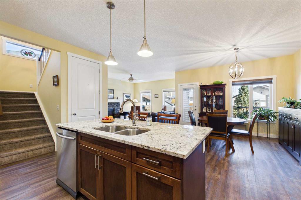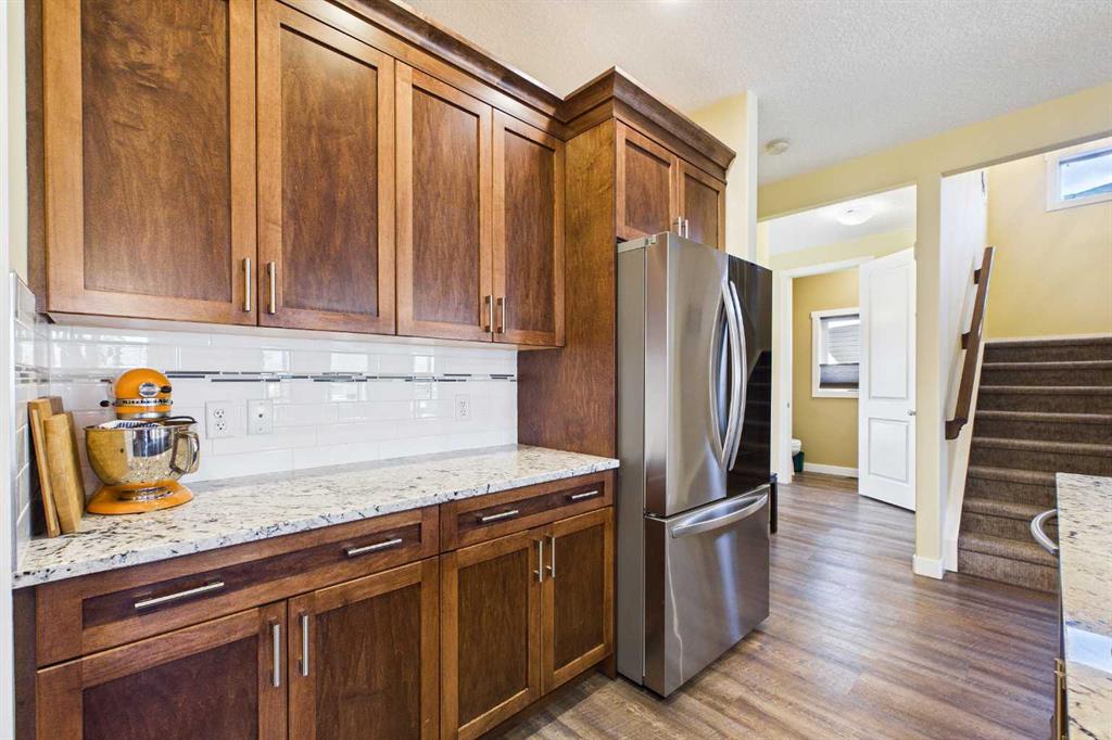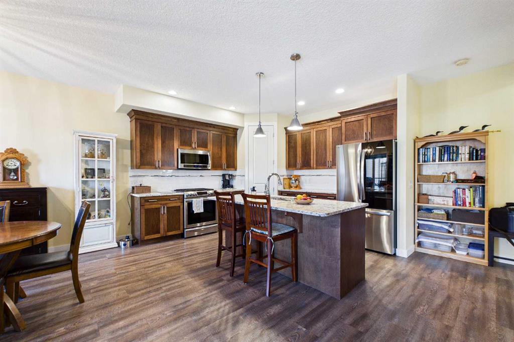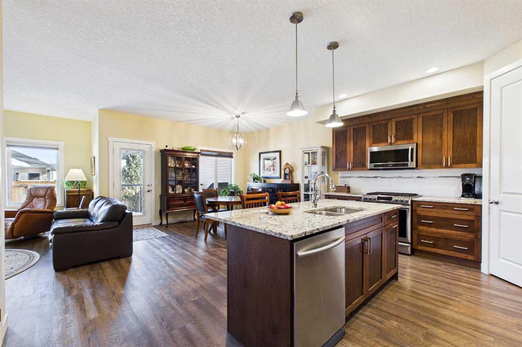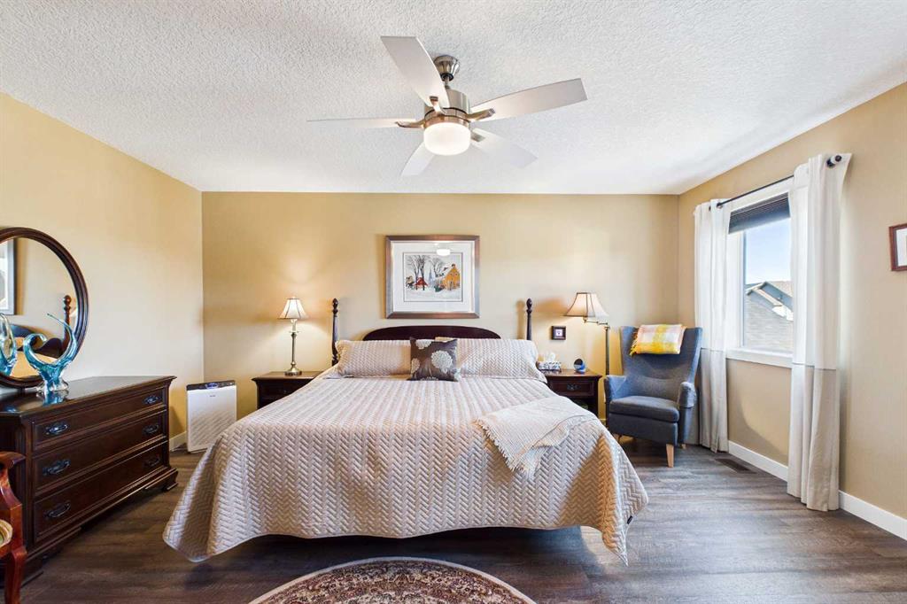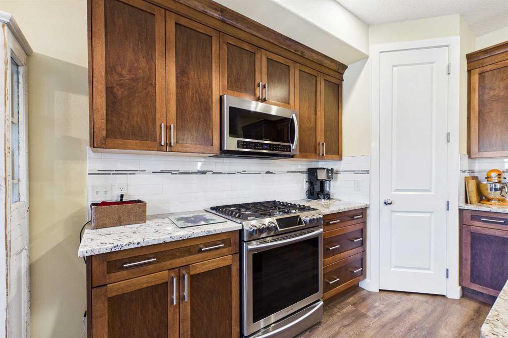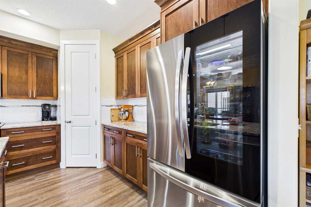 OPEN HOUSE SATURDAY, APRIL 25th 1:00p.m. to 4:00 p.m. AN EXCEPTIONAL ONE OWNER SPACIOUS HOME ON A QUIET STREET IN SOUGHT AFTER HIGHWOOD VILLAGE! THIS OUTSTANDING HOME WAS BUILT IN 2016 AND NOT LOCATED IN THE FLOOD ZONE. An immaculate bright and spacious home. Large inviting foyer with sitting area and double door closet. Direct access to the two-piece bathroom and the insulated double attached garage. Stylish luxury vinyl plank flooring runs throughout this well-designed 2089 sq. ft. home with the perfect layout. The spacious living room features large windows that overlook the back yard, with an elegant black slate gas fireplace and provides clear views to the kitchen and dining area. You will love this large kitchen with upgraded stainless-steel appliances. Gas range and new L.G. French door fridge with freezer drawer. Elegant granite counters with tile backsplash, upgraded cabinets with crown mouldings, lots of drawers for storage and the large walk-in a large pantry with automated lighting. Large 81” granite island with eating bar, double sinks and dishwasher, perfect when entertaining or food prep. An additional granite counter makes the perfect coffee station. Spacious dining room is perfect for your full dining suite including room for a sideboard. Access to the raised back deck with stairs to the fenced yard, lawn and garden area with large new shed. This private deck offers a great space for relaxing and entertaining. An expansive primary retreat has room for all your bedroom furniture plus includes a large walk-in closet and a huge 13’1’x10’5” 4-piece en-suite bathroom with double granite vanities and oversize walk-in shower. Two additional bedrooms, each with two windows and large closet space. Upper level 4-piece bathroom with soaker bathtub/shower combo and double door linen /towel storage. Convenient upper floor laundry room with full size upgraded washer and dryer, granite counter, sink and lower storage cabinet, plus an additional walk-in storage area. The unfinished basement offers you a huge open space, egress window and roughed in plumbing - ready for your future development. A sought-after location in High River where you can walk to Notre Dame Collegiate School. High River offers golf, dining, shopping, excellent schools and the High River Hospital. You will love the Rodeo’s plus many other community events and services. Easy drive to Okotoks, Calgary and west to Kananaskis Country. * Please check out the drone video**