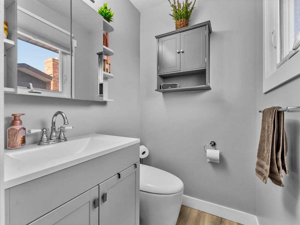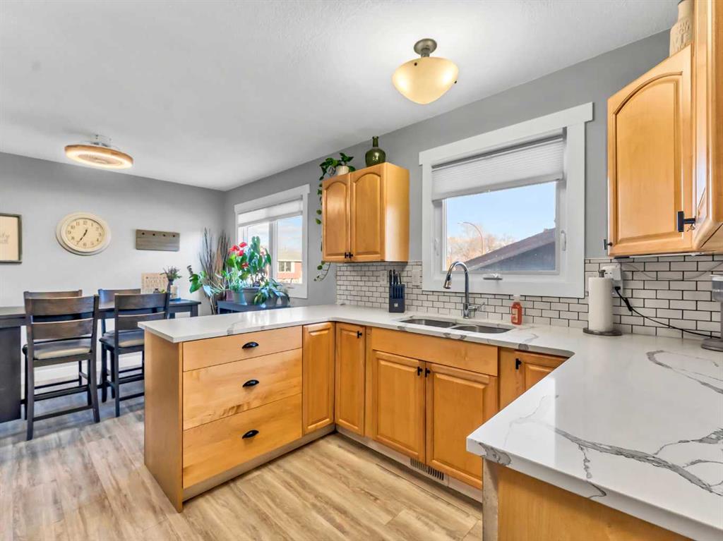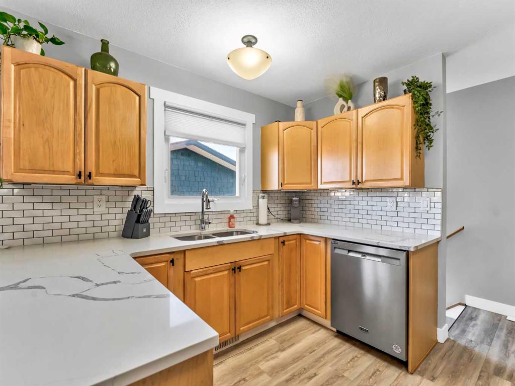 Welcome to this beautifully renovated bi-level home, ideally situated on a large corner lot in a NE Crescent Heights sought-after neighborhood. Located adjacent to a green space with a playground, this home is perfectly positioned for families, kids, or visiting grandkids to enjoy outdoor fun just steps from your door. Updated from top to bottom, this move-in-ready home showcases modern flooring, updated lighting, new windows, new kitchen and bathrooms, and fresh paint throughout. The inviting layout is filled with bright natural light and offers a warm, cozy feel from the moment you step inside. Convenient locker-style closets at both the front and back entrances add everyday functionality and organization. The main level features two bedrooms, including a spacious primary bedroom with a two-piece ensuite, a generous walk-in closet with built-in shelving, and the added convenience of a stackable washer and dryer. The fully developed basement offers a comfortable family room, two additional bedrooms, a four-piece bathroom, ample storage, and a second laundry area with washer and dryer—perfect for busy households or guests. Outside, the fully fenced yard is beautifully landscaped with underground sprinklers, offering both privacy and ease of maintenance. An oversized 24’ x 28’ garage, ample driveway space, and additional off-street parking provide excellent parking options. Added features include all window coverings, exterior security cameras, and a doorbell camera for peace of mind. Located close to the Medicine Hat Golf & Country Club, Big Marble Go Centre, shopping, dining, and amenities, this home combines lifestyle, location, and quality in one exceptional package. With outstanding curb appeal and nothing left to do but move in, this home won’t last long.
