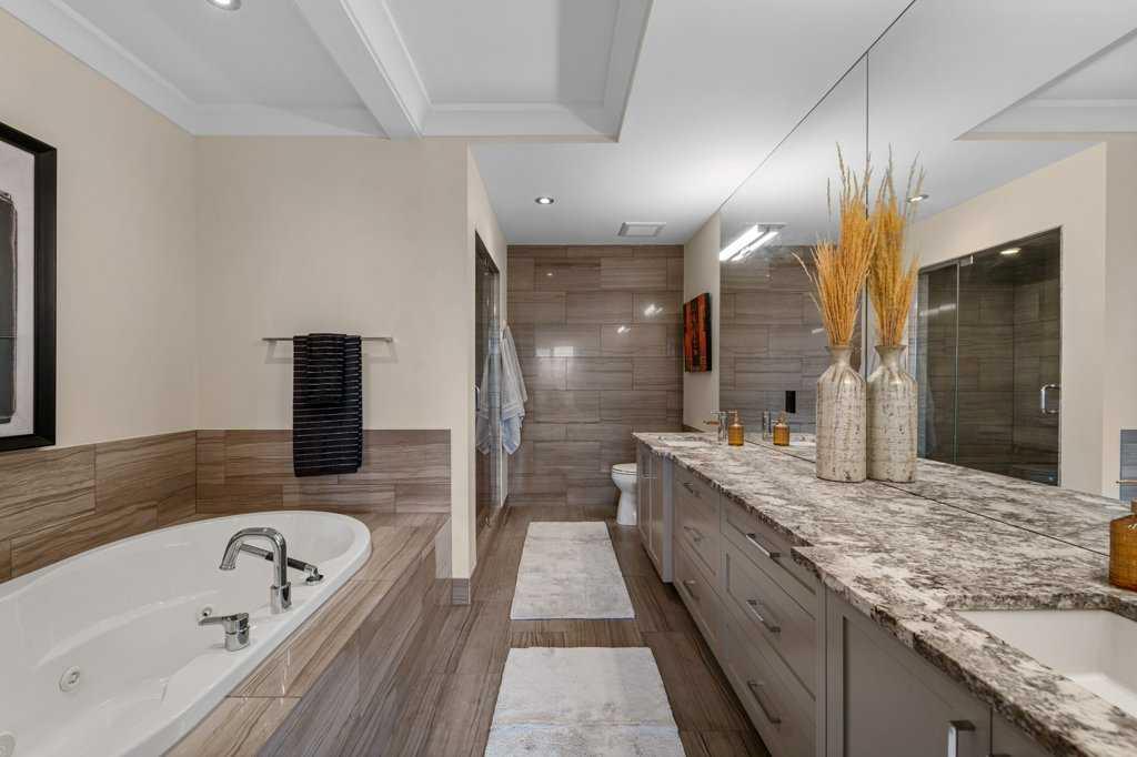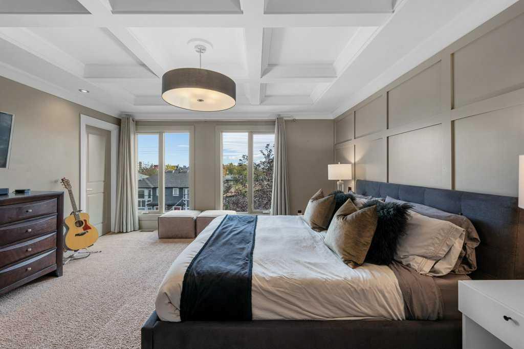 EXECUTIVE LIVING - Inner-City Killarney! Elegant three-level residence showcasing timeless design and premium upgrades - over 2400 sq. ft. in total. Be drawn into the open plan design, perfectly crafted for entertainment on the main level. The gourmet kitchen - with custom cabinetry, crown mouldings, top-tier appliances, caesar stone counters, plus a large island - is perfect for the chef! The adjacent living/dining area boasts coffered 9 ft. ceilings, a wall of windows for natural light and views of the private courtyard, plus built-in cabinetry surrounding a feature gas fireplace. Hand scraped Espresso hardwoods adorn the main and upper living areas. Ascend to the second level, with its beautifully designed living room and adjacent second master bedroom with a walk-in closet and full 4 piece bathroom. The third level showcases a lavish "Master Oasis" with views of downtown, a stunning panelled feature wall, "double" coffered ceilings and an ambience with colour that invites relaxation! A walk-in closet with built-ins also features a full laundry, plus there is a second large closet in the master suite. The sumptuous "spa-like" 5 piece ensuite has a shower with massage body jets & a rain shower head, an oversized jetted tub and dual sinks on a custom caesar stone vanity, plus heated travertine floors! All new light fixtures throughout, plus newly painted bathrooms, master suite and kitchen ceiling. The lower level offers a bright family room, plus a separate office / den, an adjacent 4 piece bathroom, plus the second laundry area in this home! Enjoy your outdoor private courtyard, complete with a patio, gas outlet and its own large tree for shade! The long planter can grow perennials and gets full sun exposure. A detached single garage space, plus a shared visitor parking pad completes this exceptional property. This 4-unit complex has LOW CONDO FEES, is well run & fosters community between the 4 wonderful owners - with a shared Pride of Ownership! A FABULOUS LOCATION - 6 min walk to Westbrook train station, the mall, numerous restaurants & amenities. Your sophisticated private "inner city" oasis is certain to thrill all who experience it!