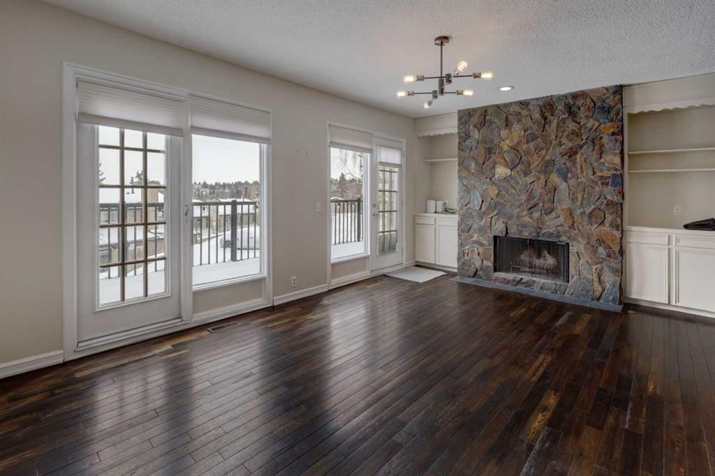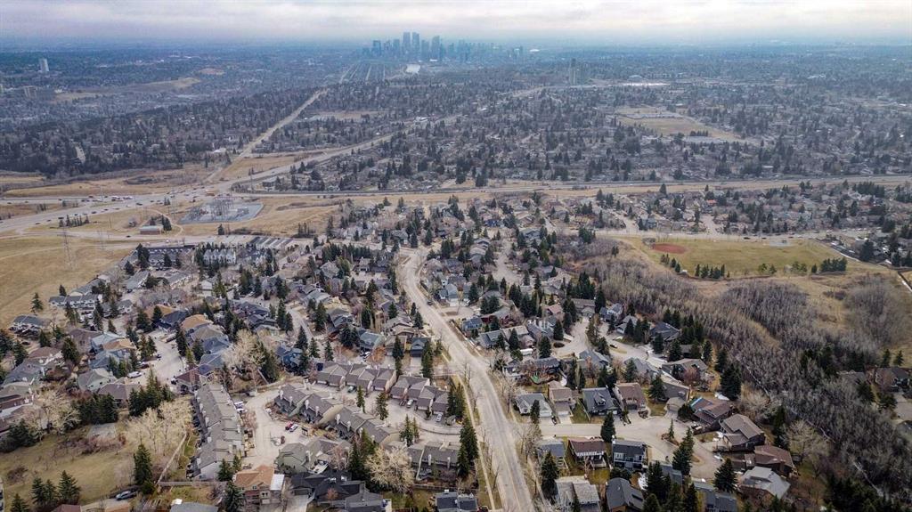 Welcome to this beautifully updated end-unit condominium in the highly sought-after community of Strathcona Park SW. This spacious three-level split offers 3 bedrooms and a thoughtfully designed layout that blends comfort, style, and functionality—perfect for modern living. The main level features a versatile den, ideal for a home office or flex space, along with a stunning custom kitchen renovation showcasing high-end appliances, bespoke cabinetry, and exceptional attention to detail. Rich hardwood flooring adds warmth and continuity throughout the home. Upstairs, the primary retreat is a standout, complete with a walk-in closet featuring custom cabinetry and a fully renovated ensuite. All bathrooms in the home have been recently updated, offering a fresh, contemporary feel. Enjoy cozy evenings by one of two wood-burning fireplaces, both equipped with convenient gas lighters. Mechanical upgrades provide peace of mind, including a new furnace, hot water tank, and air conditioning system installed in 2023, along with a radon reduction system (approx. $4,000 value) and an upgraded electrical panel completed 5 years ago. Additional highlights include a large storage room with a full-size safe, extra crawl space storage in the attached double garage, and a brand-new Samsung washer and dryer (2025). Outdoor living is equally impressive with two outdoor decks—one southeast-facing for morning sun, and a second, more private rear deck backing onto green space. A perfect location - enjoy direct access to city walking paths and a serene natural setting. Ideally located, this home offers quick access to downtown (approximately 10 minutes), the University of Calgary, and major routes leading west to the mountains—making weekend escapes effortless. A rare opportunity to own a turnkey home in an established, family-friendly community.