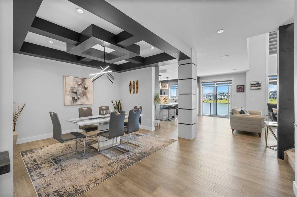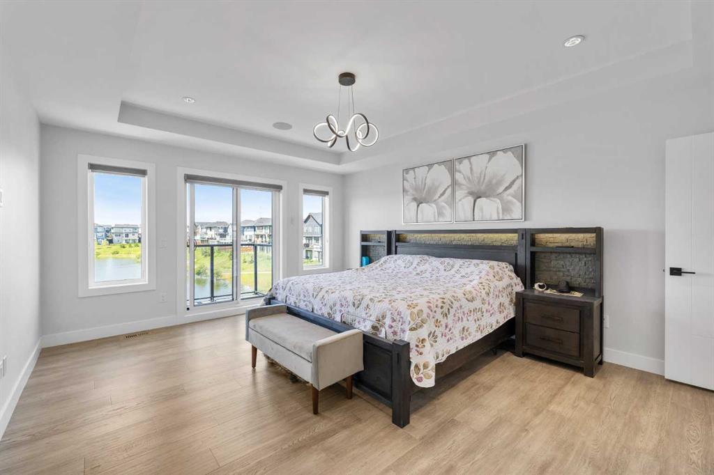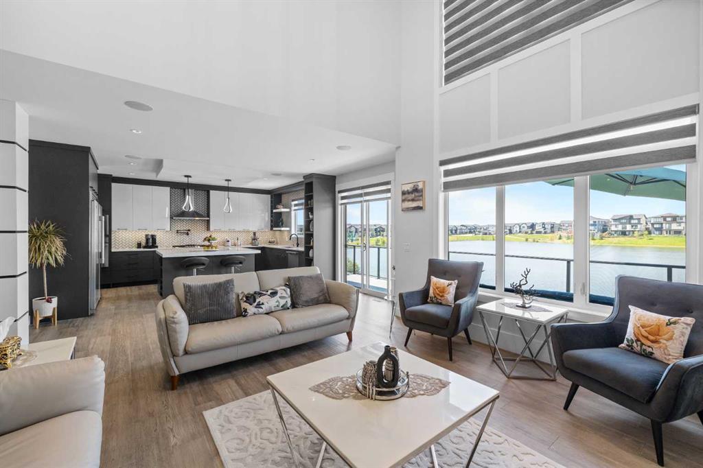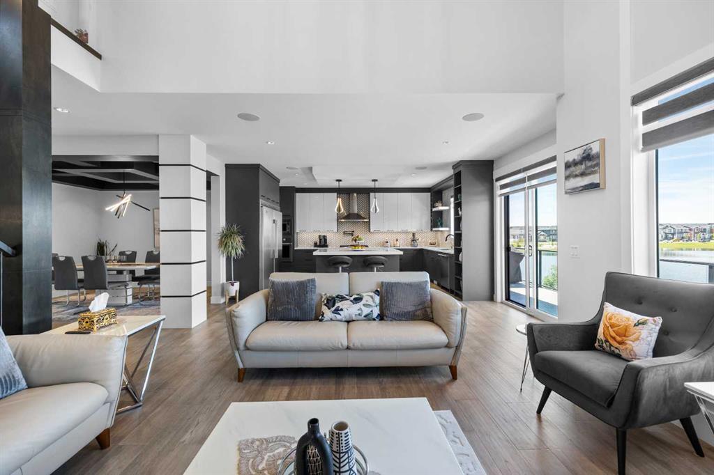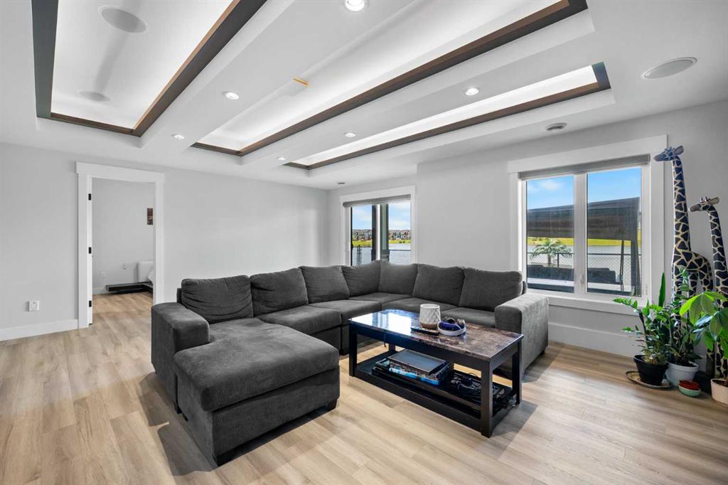 Welcome to 20 Waterford Heights in Chestermere—a breathtaking, fully developed, triple garage, luxury home offering 4,505 square feet of exceptional living space. Perfectly positioned backing onto a scenic pond and lush park with walking paths and a nearby playground, this residence delivers an unmatched blend of natural beauty and refined living. At the heart of the home is a dramatic open-to-below great room with soaring ceilings, a grand feature staircase, and expansive windows dressed with premium motorized blinds—filling the space with natural light and showcasing uninterrupted views of the water and green space. The layout is designed for both elegance and functionality, featuring premium finishes throughout, including custom cabinetry, quartz countertops, and high-end appliances. The chef’s kitchen is a true showpiece, offering a large central island, generous workspace, and a separate spice kitchen for added versatility. The main floor also features a spacious double-door office ideal for working from home, a functional mud room with built-in storage to keep things organized, and a seamless flow between living, dining, and kitchen spaces—perfect for both family living and entertaining. Every detail has been thoughtfully considered to elevate day-to-day comfort and convenience. Upstairs, the home offers two luxurious master suites, each with stunning ensuites, in addition to a third bedroom and full bathroom—providing flexibility for families or guests. The upper-level layout offers the perfect balance of private retreats and shared family space. The fully developed walkout basement continues the theme of spacious, the two bedroom illegal basement suite offers, refined living with a full kitchen, full height windows, 2 bedrooms with full bathrooms each, and a large living area with simulation skylight panels—perfect for a media room, games area, or extended family living. Outdoor living is maximized with patio decks on all three levels—offering multiple vantage points to enjoy the peaceful surroundings. Whether you’re sipping coffee on the upper balcony, enjoying dinner on the main deck, or gathering with friends on the covered walkout patio, the home invites year-round enjoyment and connection to nature. Gemstone exterior lighting perfects the ambiance. With its premium finishes, show-stopping design, and unbeatable location, 20 Waterford Heights is a rare and exceptional opportunity in one of Chestermere’s most desirable communities. This is lakeside-inspired living at its finest—modern, spacious, and move-in ready. Just a few of the many upgrades include: Coffered ceilings, upgraded tile work and LED under lighting in vanities in all bathrooms, heated triple car garage with epoxy flooring and commercial drainage, 5 stage reverse osmosis water filter, 7.2 surround sound system throughout, maple wood work and a smart home system.