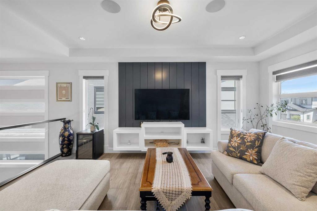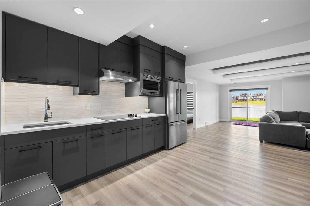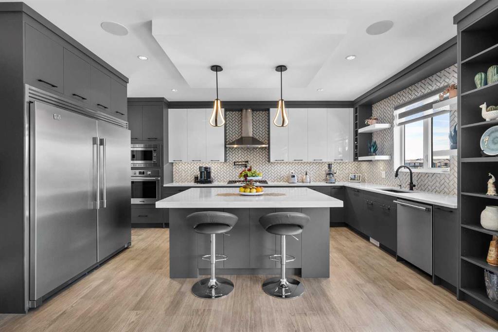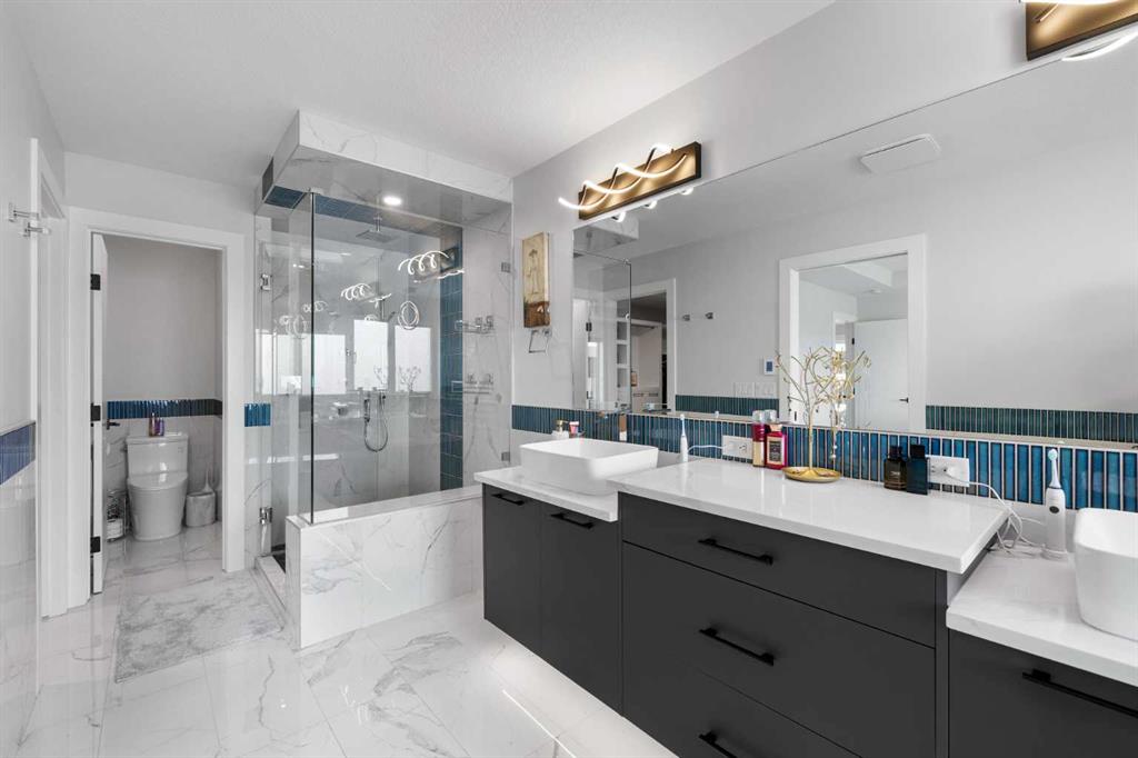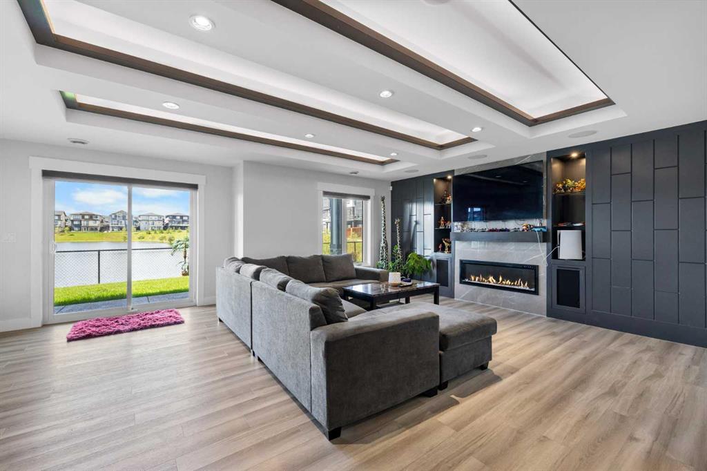 Welcome to 20 Waterford Heights in Chestermere—a breathtaking, fully developed, triple garage, luxury home offering 4,505 square feet of exceptional living space. Perfectly positioned backing onto a scenic pond and lush park with walking paths and a nearby playground, this residence delivers an unmatched blend of natural beauty and refined living. At the heart of the home is a dramatic open-to-below great room with soaring ceilings, a grand feature staircase, and expansive windows dressed with premium motorized blinds—filling the space with natural light and showcasing uninterrupted views of the water and green space. The layout is designed for both elegance and functionality, featuring premium finishes throughout, including custom cabinetry, quartz countertops, and high-end appliances. The chef’s kitchen is a true showpiece, offering a large central island, generous workspace, and a separate spice kitchen for added versatility. The main floor also features a spacious double-door office ideal for working from home, a functional mud room with built-in storage to keep things organized, and a seamless flow between living, dining, and kitchen spaces—perfect for both family living and entertaining. Every detail has been thoughtfully considered to elevate day-to-day comfort and convenience. Upstairs, the home offers two luxurious master suites, each with stunning ensuites, in addition to a third bedroom and full bathroom—providing flexibility for families or guests. The upper-level layout offers the perfect balance of private retreats and shared family space. The fully developed walkout basement continues the theme of spacious, the two bedroom illegal basement suite offers, refined living with a full kitchen, full height windows, 2 bedrooms with full bathrooms each, and a large living area with simulation skylight panels—perfect for a media room, games area, or extended family living. Outdoor living is maximized with patio decks on all three levels—offering multiple vantage points to enjoy the peaceful surroundings. Whether you’re sipping coffee on the upper balcony, enjoying dinner on the main deck, or gathering with friends on the covered walkout patio, the home invites year-round enjoyment and connection to nature. Gemstone exterior lighting perfects the ambiance. With its premium finishes, show-stopping design, and unbeatable location, 20 Waterford Heights is a rare and exceptional opportunity in one of Chestermere’s most desirable communities. This is lakeside-inspired living at its finest—modern, spacious, and move-in ready. Just a few of the many upgrades include: Coffered ceilings, upgraded tile work and LED under lighting in vanities in all bathrooms, heated triple car garage with epoxy flooring and commercial drainage, 5 stage reverse osmosis water filter, 7.2 surround sound system throughout, maple wood work and a smart home system.