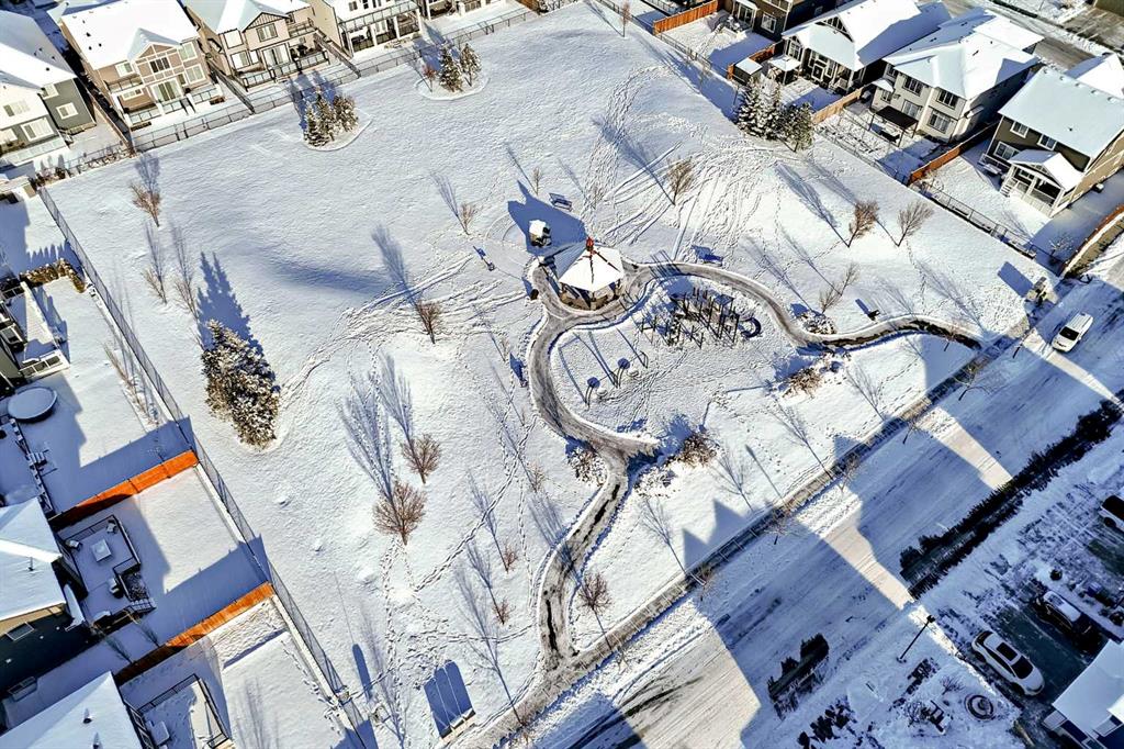 Welcome to Westmere, one of the most sought-after communities near Calgary and in Chestermere! This breathtaking corner lot residence adjoins a tranquil park, offering uninterrupted views and a sense of privacy with no neighbors directly behind. With its east/west orientation, enjoy an abundance of natural light all day long, enhanced by central air conditioning for your ultimate comfort. Step inside this remarkable 2-storey home with 9ft main floor and basement ceilings, 3944 SqFt of thoughtfully crafted living space awaits, featuring 6 spacious bedrooms and 5 stylish bathrooms. The main level showcases sound-proofed flooring and includes a convenient bedroom with a closet and a 3-piece bath—ideal for multigenerational living or visiting guests. The gourmet chef's kitchen is truly a culinary delight, boasting stainless steel appliances, elegant full-height cabinets, stunning granite countertops, and a generous center island perfect for casual meals. Plus, a separate spice kitchen equipped with an electric stove and walk-in pantry ensures you're ready for any cooking challenge. The open-concept design flows effortlessly from the kitchen to the dining and family areas, where abundant windows create a bright and inviting atmosphere. A cozy gas fireplace in the family room provides warmth and charm, and the main-level laundry adds an extra layer of convenience. Step outside to your expansive deck, overlooking a fully fenced backyard with direct access to Aspenmere Park—ideal for alfresco entertaining and family fun! Venture upstairs to find not one, but two luxurious primary bedrooms with their own ensuite bathrooms, along with two additional bedrooms and a versatile bonus room perfect for cozy family gatherings. The first primary bedroom offers stunning park views, a spacious walk-in closet, and a lavish 5-piece ensuite complete with a deep soaking tub and double vanity. The finished basement, featuring its own private covered entry, reveals a vast rec room adorned with an electric fireplace, alongside a wet bar for entertaining guests, an extra bedroom, and a 3-piece bath. The basement has been roughed in to easily be converted to a LEGAL SUITE! Suite would be subject to approvals and permitting by the municipality. Additional perks include a front-facing triple garage with a car charging station, a water softener, a central vacuum system, solar rough-ins, and structural warranty coverage until September 2027. With parking space for up to 6 vehicles and plenty of street parking available, this home is an extraordinary find. Don't let this opportunity slip away—schedule your showing today!