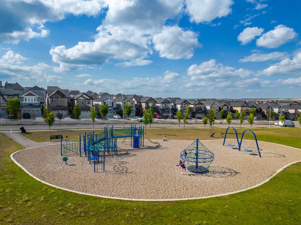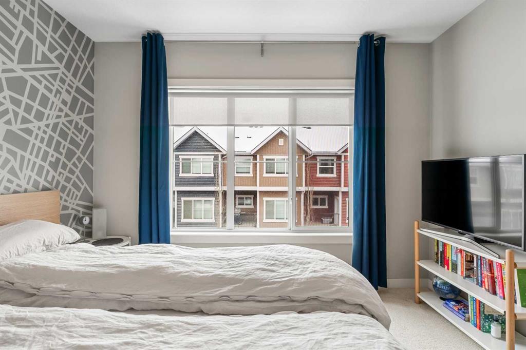 Welcome to this beautifully maintained and thoughtfully upgraded townhouse in the highly sought-after community of Nolan Hill, offering a perfect blend of style, comfort, and functionality. Step inside to discover a bright and inviting open-concept main floor with high ceilings and an open floorplan, where large windows flood the space with natural light and create an airy, welcoming atmosphere. The modern kitchen is both stylish and practical, featuring quartz counters, sleek cabinetry, stainless steel appliances, and a spacious breakfast bar that seamlessly connects to the dining and living areas—perfect for entertaining or everyday living. Just off the kitchen, enjoy a private balcony ideal for morning coffee or evening relaxation, fitted with a gas line for your BBQ! Upstairs, this well-designed layout offers two spacious primary-style bedrooms, each complete with walk-in closets and their own 4-piece ensuites, providing ultimate comfort and privacy; both ensuites have been enhanced with upgraded pot lights above the showers, a thoughtful upgrade completed after possession and not standard in similar floorplans. Additional highlights include air conditioning for year-round comfort, upper-level laundry, and a welcoming lower level with access to the attached tandem garage, offering ample parking and storage. Located close to parks, pathways, shopping, and major routes, this home presents an exceptional opportunity to own in one of NW Calgary’s most desirable communities!