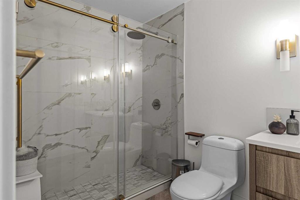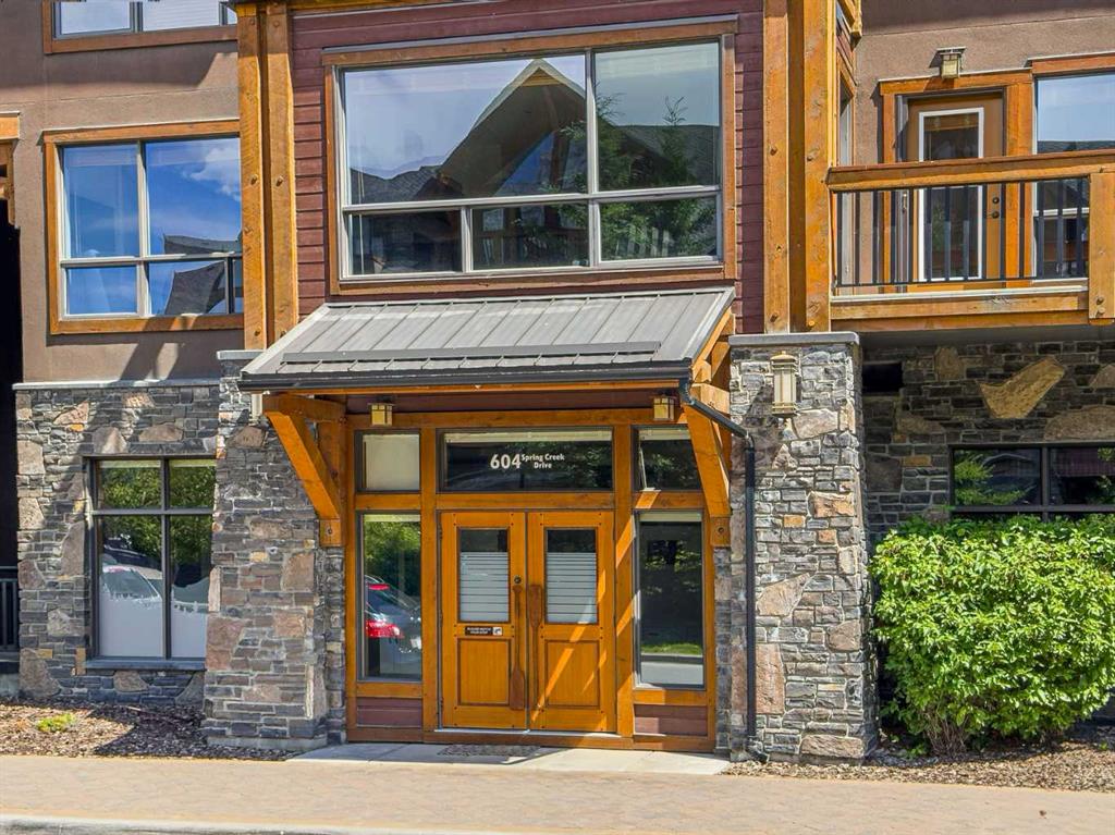 Ultimate Live / Work opportunity in the heart of Spring Creek, now fully transformed with over $100K in high end renovations. This beautifully reimagined two level studio offers exceptional flexibility for a home office, retail space, or creative studio below, with a fully upgraded residential retreat above. The 2 bedroom upper level has been completely renovated with a brand new kitchen featuring sleek cabinetry and quartz countertops, alongside fully redone bathrooms, new flooring, and striking exposed beam ceilings that add warmth and character. Natural light fills the space with views toward the Rundle Range and Policeman’s Creek, while the private deck offers a quiet place to unwind. The lower level workspace provides excellent exposure and versatility, ideal for a variety of business uses or a dedicated work from home setup. Complete with 2 titled underground parking stalls, 2 storage lockers, and a prime location just steps to Main Street, all within the sought after Moraine Ridge 40+ building, surrounded by boutique shops, cafes, galleries, and fitness studios, this is a rare opportunity to own a fully renovated live work property in one of Canmore’s most desirable communities.
