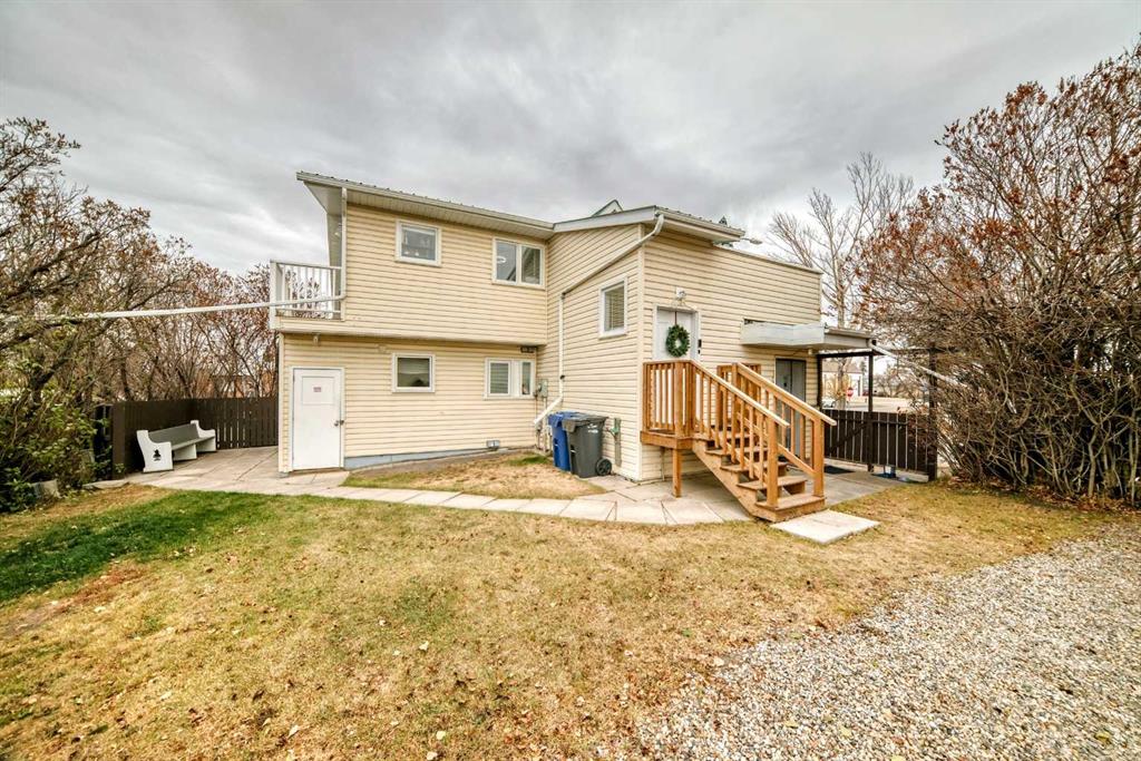 Welcome to this bright and inviting character home on Main Street in Bowden — a charming up-and-down DUPLEX perfectly positioned for small-town living with easy access to the QEII Highway, just minutes from both Red Deer and Calgary. Built in 1926, this home carries a unique piece of Bowden’s history, with the garage once serving as the original Bowden Fire Hall and the main floor formerly home to a store and barber shop. Extensively RENOVATED in 2011, both the home and GARAGE now blend timeless character with modern comfort and solid craftsmanship throughout. This distinctive property features two self-contained one-bedroom units, each offering its own style and comfort — ideal for extended family living, or a live-and-work setup. THE UPPER UNIT ( B) offers just over 720 sq. ft. of bright, spacious living, FULLY RENOVATED IN 2024 to showcase modern finishes and a warm, contemporary aesthetic. It includes a new hot water tank (installed in November 2025), a large 10x15 private East facing deck, perfect for morning coffee or evening relaxation with panoramic views of the town and surrounding countryside, one bedroom, and one full bathroom. Off the back deck, you can see the mountains to the West on a clear day. Thoughtfully designed with an open-concept layout, the space captures abundant natural light while maintaining its charming character. THE LOWER UNIT (A) features approximately 890 sq. ft. of comfortable, accessible single-level living. It is completely WHEELCHAIR accessible, with a barrier-free kitchen and bathroom, including a pull-up stove, lowered countertops, and a roll-in shower with open flooring and drain system. Cozy and well-maintained, unit offers one bedroom, one bathroom, and a functional, inviting layout designed for ease and comfort. Each unit has two separate entrances, its own furnace and hot water tank, ensuring privacy and independence. A shared laundry area with a new washer and dryer is conveniently located on the main floor, while the basement offers additional storage. The generous 50' x 120' lot is enhanced with mature trees, gravel landscaping, and partial fencing for a low-maintenance yard. The double detached garage — once the town’s fire hall — provides ample parking and space for RV storage, and the durable METAL ROOF ensures minimal upkeep and long-term value. An interior doorway connects both units, allowing flexibility to use the home as one large family residence or maintain it as two separate units. Both units are currently fully rented, making this property a fantastic turnkey investment opportunity. Whether you’re seeking a residence with a low-maintenance rental property, this character home stands as a true gem in the heart of Bowden — rich in history, charm, and opportunity.