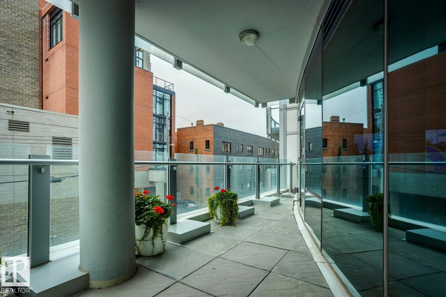 Amazing opportunity to enjoy one of Edmonton's most prestigious condo buildings. This is a large 1 bedroom, 1 bathroom condo that has elegant and timeless finishes throughout. Large floor to ceiling windows, white oak engineered flooring, quartz countertops, large kitchen island to name a few features! It is bright and open floor plan making it easy to entertain. The 2nd and 3rd floors also offer a gym, social room with full kitchen and lounging area. On the main floor there is a 24/7 concierge and 3 elevators on hand. This unit comes with it's own underground parking and storage locker as well. The area can't be beat, next to some of the best restaurants in the city, walking the River Valley or nearby golf this location has it all!