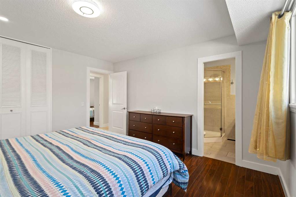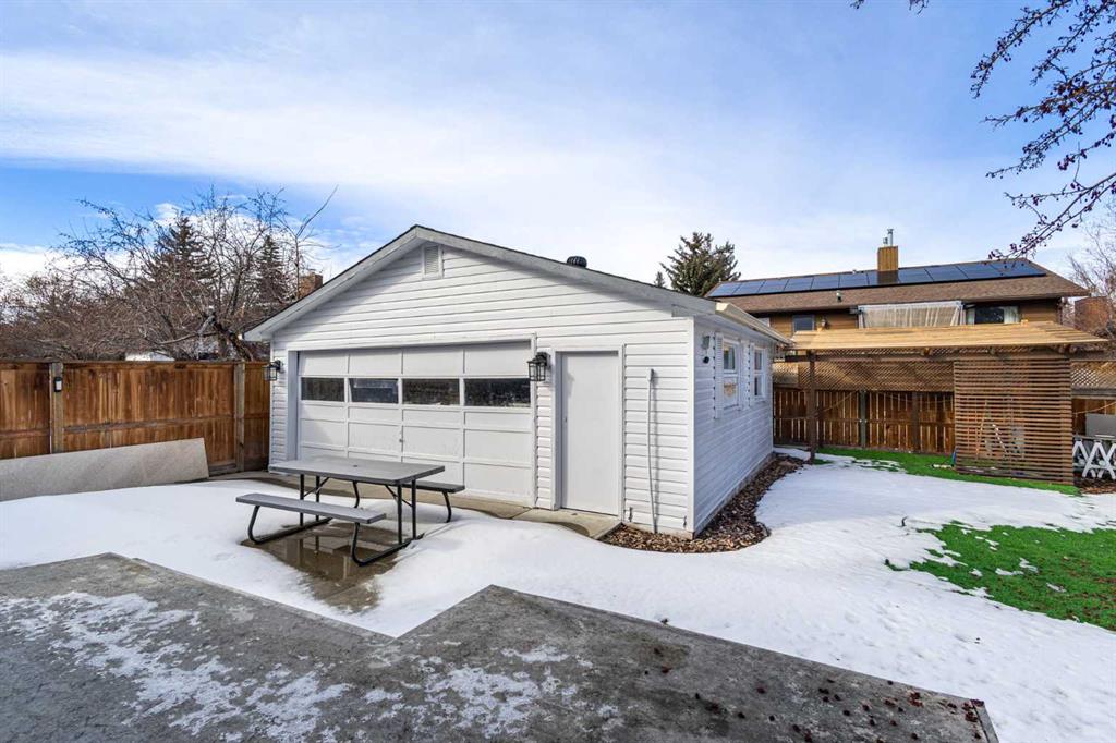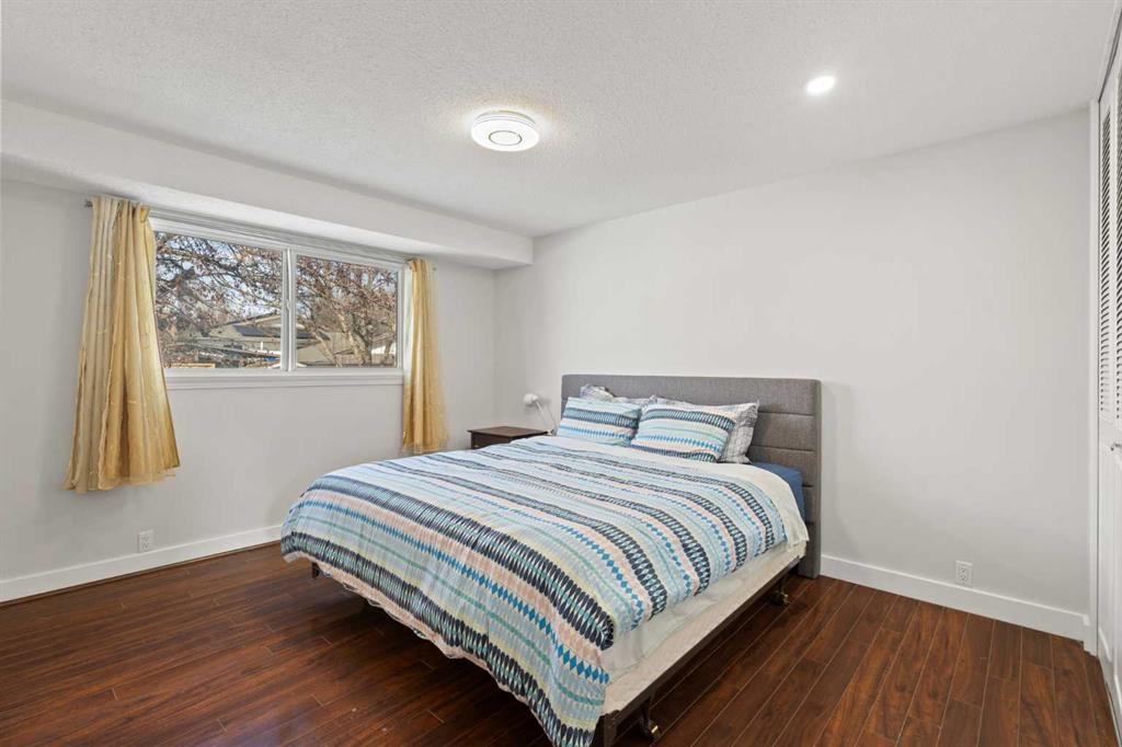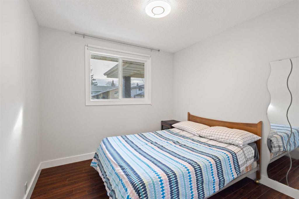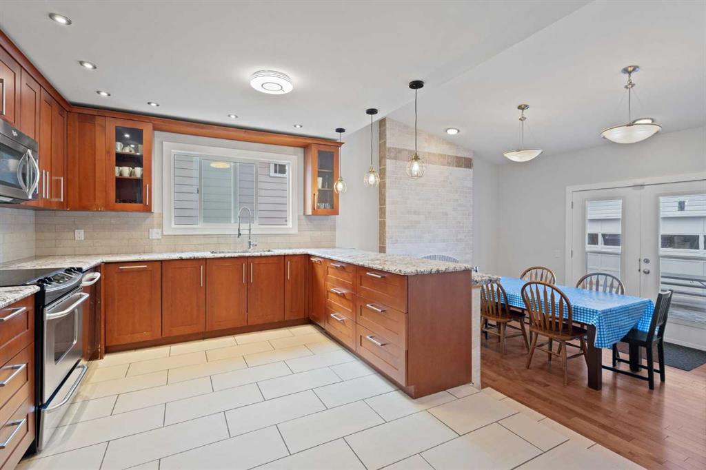 Renovated bungalow on a quiet cul-de-sac with a fully finished basement and an oversized double garage with 220 power. This move-in ready home offers 3 bedrooms up and 2 bedrooms down (non-egress windows) along with 3 full bathrooms, all situated on a large lot surrounded by mature trees. The main floor features hardwood flooring and a bright open living space with large windows that bring in plenty of natural light. The updated kitchen includes granite countertops, stainless steel appliances, modern lighting, and a raised eating bar that opens to the dining area. A wood-burning fireplace adds warmth and character, creating a comfortable space for everyday living or entertaining. The spacious primary bedroom includes a private 3-piece ensuite. Two additional bedrooms and a full bathroom complete the main level. The finished basement adds excellent living space with a large recreation room, two additional bedrooms with non-egress windows, and an updated 3-piece bathroom and a kitchennette with separate entrance and shared laundry. The backyard offers plenty of outdoor space and privacy with mature trees and room to relax or entertain. The oversized detached double garage with 220 power provides excellent storage and workspace. Recent updates include fresh interior and exterior paint, LED lighting upgrades, newer roofing, improved attic insulation, and additional maintenance improvements. Conveniently located close to schools, parks, shopping, and pathways, this property offers a great combination of upgrades, space, and location.
