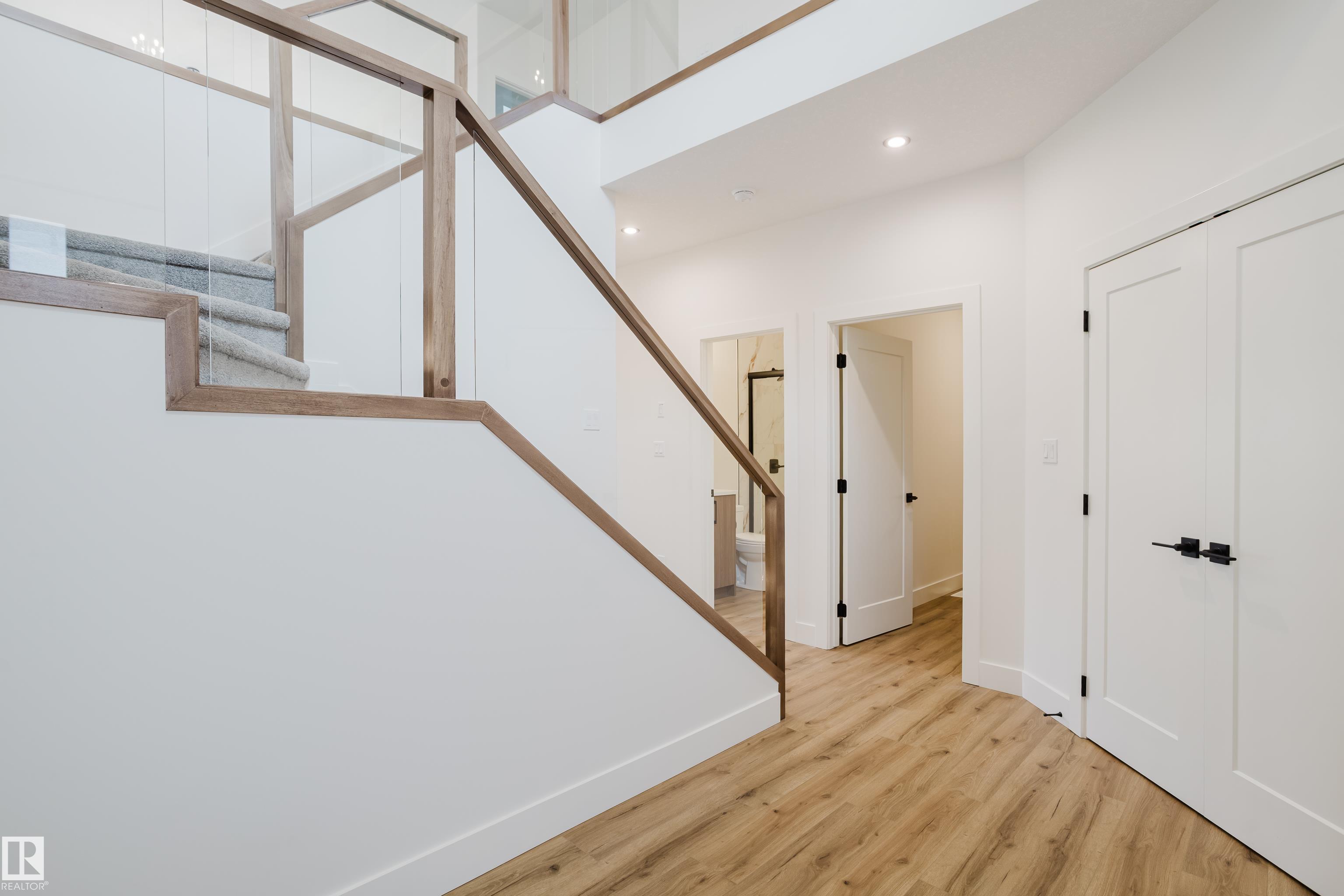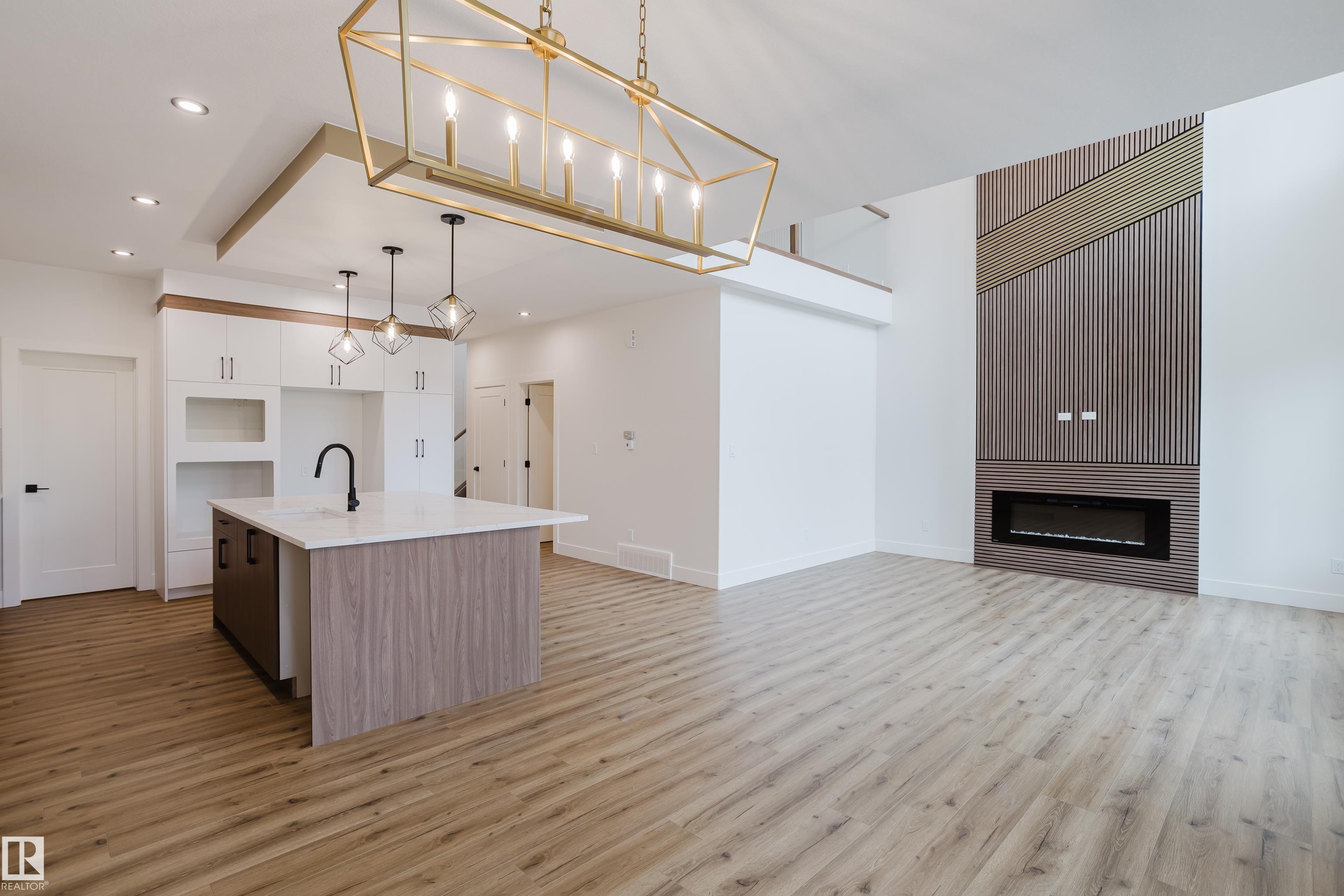 Experience elevated living in this brand new triple car garage home in The Uplands, backing onto a peaceful ravine for stunning views and privacy. This thoughtfully designed residence features a dramatic open-to-below living room with a sleek fireplace, a spacious main floor office, and a full bathroom—perfect for guests or working from home. The extended chef’s kitchen offers premium finishes, abundant cabinetry, and a layout built for both function and entertaining. Elegant glass railings and illuminated step lights add a modern touch, while the upper level boasts a generously sized bedroom retreat, a versatile bonus room for family gatherings or relaxation, and a well-appointed laundry room with built-in cabinets for added convenience and organization. Outdoor living is elevated with a covered deck and an upper balcony overlooking the ravine, ideal for morning coffee or evening entertaining. A dedicated side entrance to the basement provides excellent flexibility for future development.