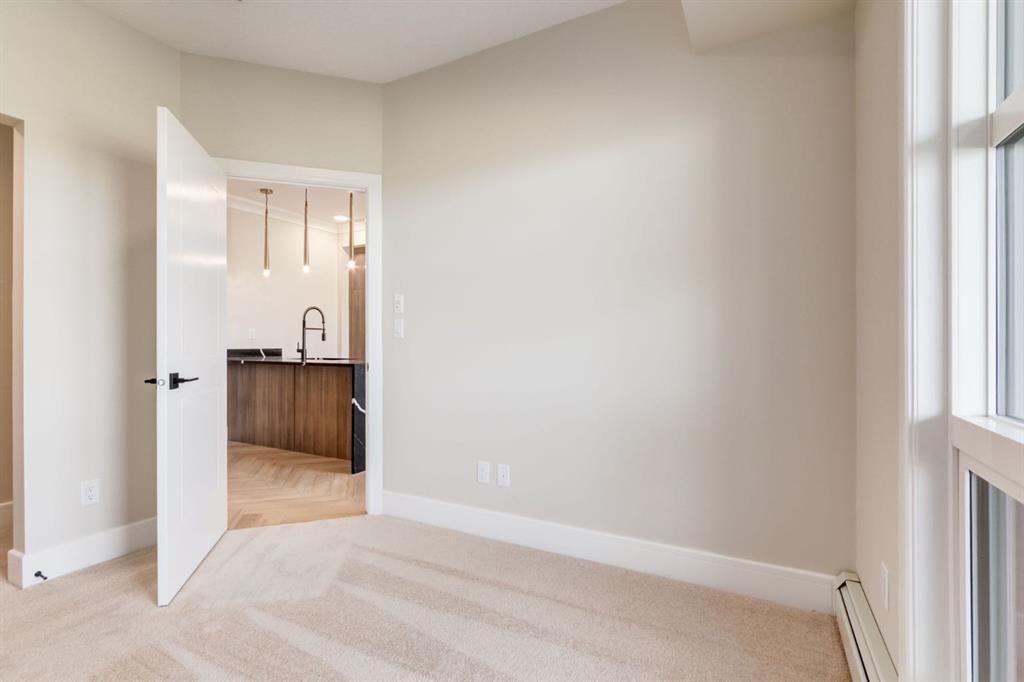 Discover modern living at its finest in this brand-new 1-bedroom, 1-bathroom plus den condo by Rohit Homes. Located in the highly sought-after University District, this home offers the perfect blend of luxury, convenience, and contemporary design. Step inside to find sophisticated finishes including waterfall quartz countertops, floor-to-ceiling triple-pane windows, and your choice of one of three stunning Designer Interiors. Whether you prefer chic, elegant, or bold, this home can reflect your personal style. Enjoy the comfort of in-suite laundry, a private balcony, and A/C rough-in to keep you cool during Calgary’s warm summers. A titled underground parking stall ensures your vehicle is secure and easily accessible year-round. Living in the University District means you’re part of a thriving community filled with exceptional amenities, trendy shops, diverse dining options, and serene green spaces. With close proximity to major institutions, like the University of Calgary and top healthcare facilities, this location offers unparalleled convenience for students, professionals, and families alike. Whether you’re looking to invest or make this your forever home, Dean's Landing is a lifestyle opportunity you don’t want to miss. Contact us today to learn more about this incredible property and other available options!