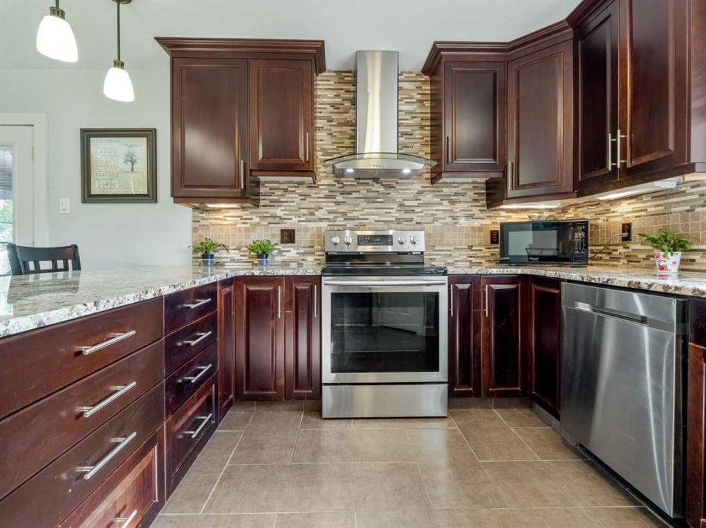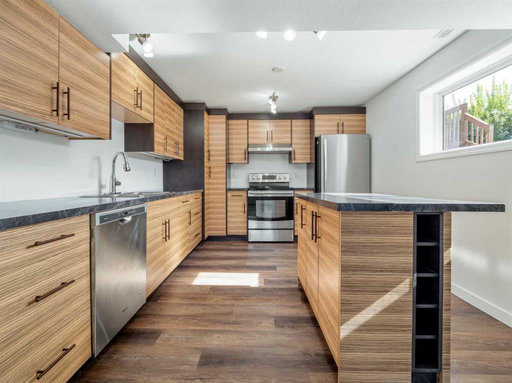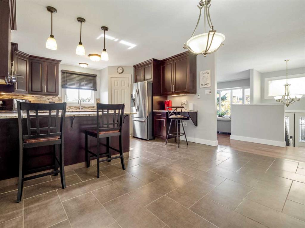 Opportunity Knocks! Nicely updated bi-level home with 6 bedrooms and 2.5 bathrooms. Home features an illegal basement suite with separate rear entrance and TWO DOUBLE GARAGES! Many updates to the home have been done by this owner. These include 2 furnaces replaced in 2018, a 60 gallon hot water tank installed in 2022, vinyl plank flooring in basement in September 2025, a brand new front door assembly that will be installed this month, New Torch on roof for the house and attached garage in 2017, new vinyl windows throughout(bow window and basement in 2017, rest in 2019). All appliances new in 2019 except for dishwasher and stove in basement kitchen, 2 new gas fireplaces added in 2017. Paint done as well in many rooms. Main floor has welcoming plan. Bright living room with beautiful bow window and fireplace with brick feature wall. Dining room is a good size with garden doors to sunroom/enclosed deck). There is also a laundry closet just off the dining room. Kitchen is well appointed with tile floors that feature in-floor heat! You'll also enjoy aranite counters, stainless steel appliances, and corner pantry. Hardwood floors for living room, hallway, kitchen, and bedrooms on main. Primary bedroom has double closets and a 2 piece ensuite. There are 2 more bedrooms on the main and a full bathroom with soaker tub. Basement is fully developed with vinyl plank flooring in main areas, and carpet in bedrooms. Family room has a gas fireplace. Enjoy the full size basement kitchen with island. There is also a laundry room in the basement and a forced walk-out entry to rear of home. There is also access to the attached garage(28x24) from the basement. Basement also features 3 bedrooms and a full bathroom. Backyard on south end of home features deck and pergola with HOT TUB. North backyard is a good size and features a nice size grass space for kids to play or pets to roam. North end of property faces alley and features a second double detached heated garage(22x22) that has a 10 foot high garage door facing the alley. Home has conveniences of central vac, central a/c to upper level, and underground sprinklers. Make this home yours today!