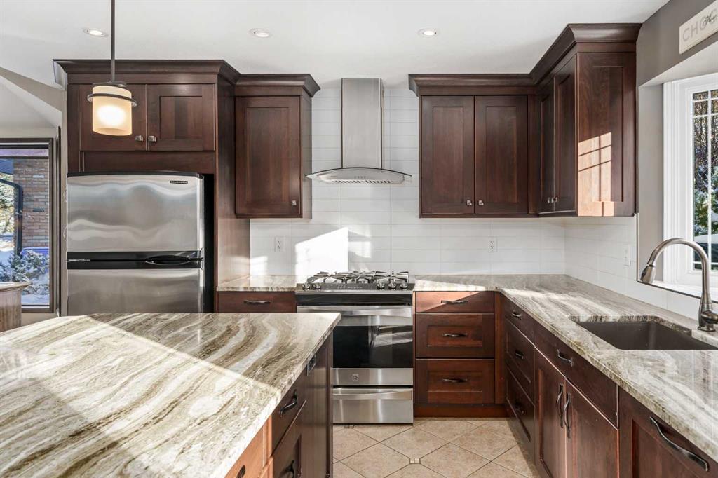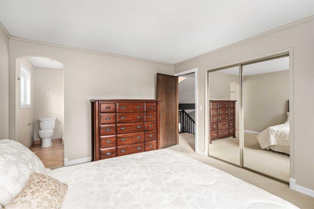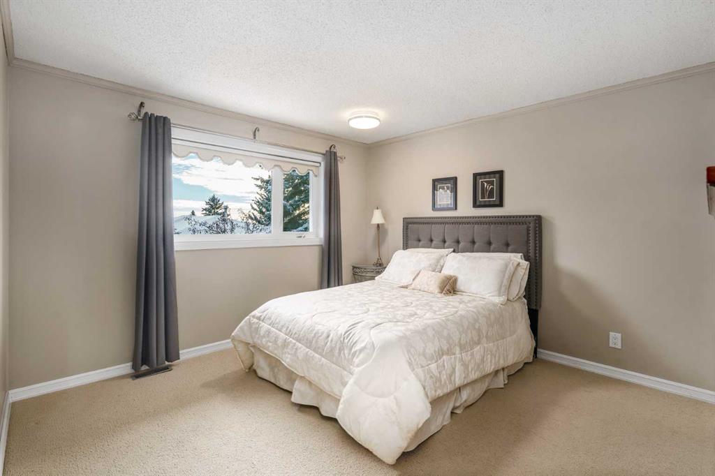 Tucked away on a quiet cul de sac, this unique, original-owner, two-storey home in the established NW community of Edgemont must be seen to be appreciated. Soaring, ceilings; a plethora of windows allowing in a flood of natural light; neutral colours; and 1939 sq. ft of living space which includes 4 bedrooms and 2.5 baths is too good to be passed up. Start the tour from the wide, front drive and double, attached, insulated garage and then on to the main level. The living room, dining room, kitchen and breakfast nook are open concept with a combo of tiles and carpet plus a multitude of windows including a bay window in the dining room. The kitchen has everything the aspiring chef needs. An abundance of cabinets; quartz countertops; elegant, white, tiled backsplash; six-burner gas cooktop with overhead fan; large island/breakfast bar for expanded prep area and a second, south-facing bay window over the sink where you can grow your indoor herb garden. Adjacent to the kitchen/breakfast nook is the family room showing off a brick feature wall surrounding a gas fireplace. Imagine those chilly winter evenings gathered here with family. The main level is completed by a laundry/mud room and 2-pc. bath. The carpeted second level features 4 bedrooms. The primary has its own 3-pc. ensuite and the 3 additional bedrooms share a 4-pc. bath with jetted soaker tub. The basement is unfinished and could be your next project. From the breakfast nook access the glass-railed deck and the fenced backyard. The deck is expansive and perfect for summer entertaining. The backyard shows mature trees and shrubs; several raised beds and storage shed for tools and toys. Location here is key with access to multiple routes including John Laurie Boulevard; and Shaganappi, Sarcee, Crowchild and Stoney Trails so getting anywhere quickly is possible. Walking distance to Edgemont disc golf, outdoor rink and playground and John Laurie Park. Proximity to Nose Hill Park; Crowfoot Crossing and Market Mall shops and restaurants; University of Calgary; McMahon Stadium and numerous churches and schools. This home is in immaculate condition and is an opportunity you do not want to miss. The owner has indicated that furniture may be purchased separately. Call today for your viewing appointment.