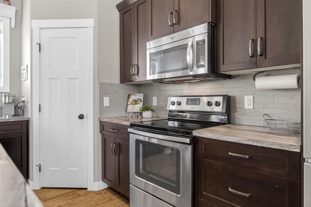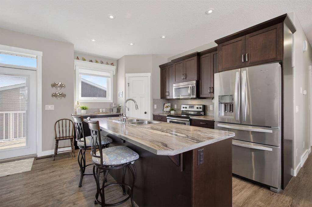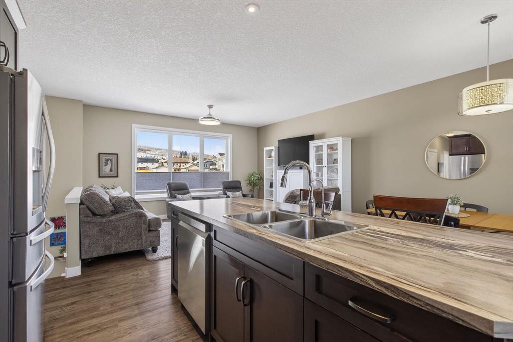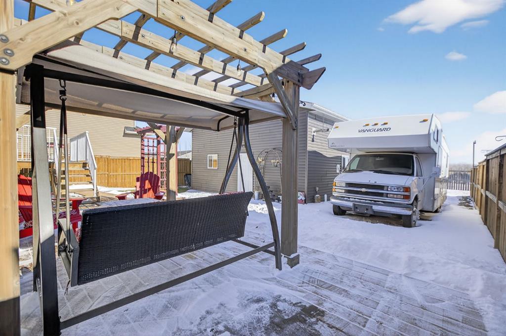 ~ OPEN HOUSE CANCELLED, HOME IS C/S.~ If you are searching for a beautiful, well cared for home where you can simply move in and enjoy life — no projects required — this Woodmaster-built home offers a carefree place to rest, entertain, and work on your favourite mechanic or woodworking projects in the 26’ x 24’ DREAM SHOP with an 11’ x 16’ door. The large, tidy gravel parking space beside the shop makes RV storage easy — park and load your camper right from home. The thoughtfully designed outdoor spaces are ready for you to enjoy. Welcome the morning sun on your upper deck with a convenient gas BBQ line, then unwind with a book on the expansive lower wooden patio complete with a charming gazebo and archway for vines and potted plants. Host friends and family around the fire under twinkling gazebo lights. The care and planning that have gone into this property are truly second to none — even the backyard features low-maintenance turf so you can enjoy green grass year-round. Inside, this immaculate home offers four generous bedrooms — two up and two down. The owner’s suite features a bright ensuite with a window, tub, and shower. The open living and dining areas showcase gorgeous wide-plank flooring and large windows with up-and-down blinds that welcome the evening sunset. The kitchen is both beautiful and functional, featuring a large island, abundant cupboard and counter space, convenient cabinet pull-outs, a recently updated refrigerator and dishwasher, and a spacious corner pantry. A lovely separate coffee or smoothie bar sits beneath a bright window — what a wonderful place to begin your day. This area easily accommodates a large table for gatherings and offers double garden doors leading to the sunny back deck. The bright basement, with its large windows, feels warm and inviting. Here you’ll find a cozy family room, a full bathroom with a walk-in shower, and two spacious bedrooms. The laundry/utility room is neat as a pin, with raised machines for easy loading and unloading. The shop/garage is a rare in-town find — insulated, drywalled, painted, and heated, with 12’ ceilings, a large workbench. The panel is wired for 220V. Phenomenal parking, stunning curb appeal with year-round exterior accent lighting, and an unbeatable location complete the package. You are within walking distance to restaurants, a medical clinic, library, shops, and the outdoor pool. And within minutes by vehicle, you can be hiking, fly fishing, trail riding, enjoying mountain picnics, and taking in some of the most beautiful scenery in all of Alberta.