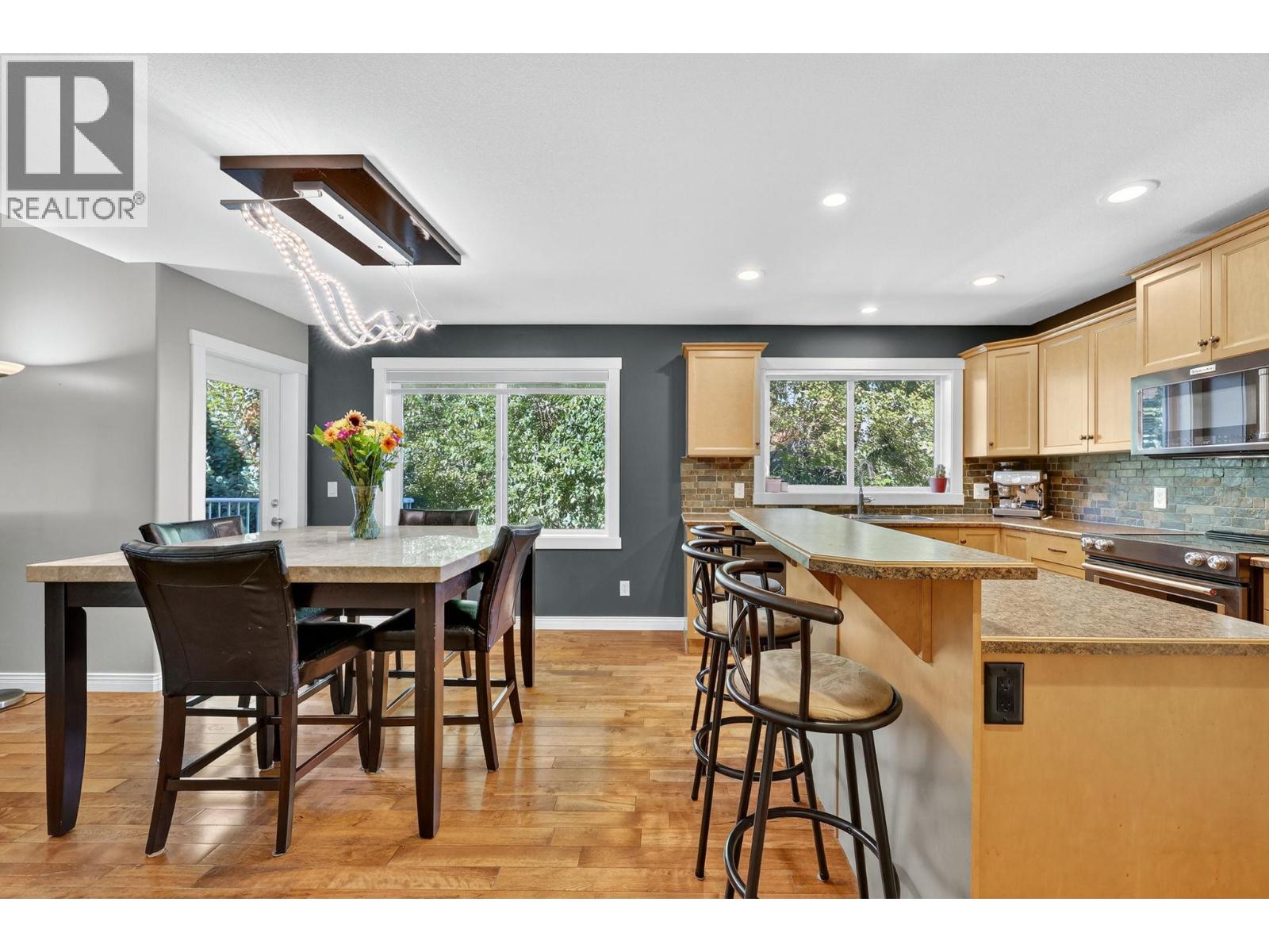 Welcome to 2157 Shelby Crescent, a beautifully finished two-storey home on a corner lot across from Shannon Springs Park in desirable Shannon Lake. With over 2,700 sq. ft. of bright, functional living space on a private 0.12-acre lot, this home offers comfort, quality, and style in a central West Kelowna location. The main floor includes a dedicated office or den and an open-concept layout ideal for everyday living and entertaining. The modern kitchen showcases black stainless KitchenAid appliances, a large corner pantry, and an island with breakfast bar seating. The dining area opens to a vaulted living room with a cozy gas fireplace and access to a sundeck overlooking the backyard. Hardwood and tile floors add warmth throughout, with a powder room and laundry completing the main level. Upstairs, the primary suite offers double-door entry, dual sinks, a soaker tub, separate shower, and walk-in closet. Two additional bedrooms share a full bath. The finished walkout basement provides excellent versatility with a fourth bedroom, full bath, family room, games area, and separate entrance ideal for a one bed suite or extended family. The private backyard features a patio and hot tub, perfect for relaxing or entertaining. A spacious double garage and plenty of street parking provide convenience for family and guests. Centrally located near Shannon Lake Golf Club, schools, parks, walking trails, shopping, and dining, this home truly captures the best of the Shannon Lake lifestyle.