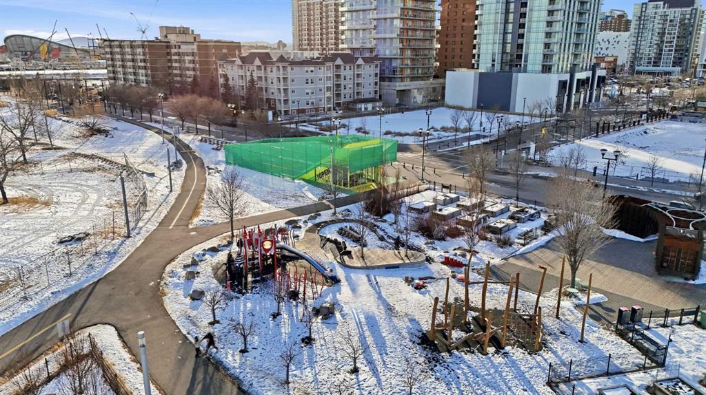 WELCOME - TO YOUR SPACIOUS CORNER UNIT in EAST VILLAGE - one of Calgary's most evolving communities. With 795 Square Feet, your new home in "RIVER TWIN" offers a noticeably more comfortable layout than many new builds. Both bedrooms are large enough to comfortably fit a KING-SIZED BED — making the layout ideal for roommates, guests, or a dedicated HOME OFFICE setup. The kitchen and bathroom have been FRESHLY UPDATED with new MATCHING QUARTZ COUNTERTOPS, creating a brighter, more cohesive feel throughout the OPEN-CONCEPT LIVING AND DINING AREA. HARD-SURFACE FLOORING THROUGHOUT (NO CARPET) adds durability and ease of maintenance, while IN-SUITE LAUNDRY + STORAGE UNIT (on your floor) enhances everyday livability. As a CORNER UNIT, the home benefits from ADDED PRIVACY (only 1 common wall) and NATURAL LIGHT. The BALCONY offers a quiet outdoor retreat — perfect for fresh air, container plants, or evening downtime. HEATED UNDERGROUND PARKING plus your CONDO FEES INCLUDE ALL UTILITIES — HEAT, WATER, GAS, AND ELECTRICITY. This RARE ALL-IN STRUCTURE provides exceptional cost certainty whether you're a home owner or investory seeking long-term profitability in this AIR BnB / Short Term Rental friendly building. The building itself is much LOWER DENSITY than you'll find in the area as it is only 5 floors and is primarily composed of TWO-BEDROOM RESIDENCES. The LOCATION has a lot to offer with the New CALGARY FLAMES ARENA and entertainment district opening in Fall of 2026, Fort Calgary park across the street, and you're just steps to the BOW RIVER PATHWAYS not to mention your conveinetly close proximity to DOWNTOWN. PET-FRIENDLY (WITH RESTRICTIONS), FLEXIBLE POSSESSION AVAILABLE, and has had the SAME OWNER FOR approx 15 YEARS — this is a WELL-ROUNDED OPPORTUNITY for buyers seeking SPACE, LOCATION, AND COST CERTAINTY in the downtown core. OPEN HOUSE this SUNDAY, Feb 1st from Noon - 2PM!