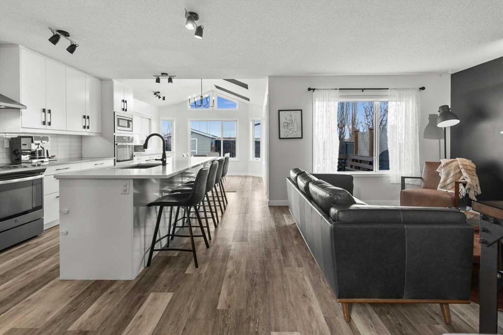 Welcome to 2,265 square feet of lovingly maintained and beautifully upgraded living space nestled in the heart of Coventry Hills, one of NE Calgary's most established and warmly welcoming communities. This exceptional home blends thoughtful renovations, carefully chosen modern finishes, and a truly private outdoor setting to deliver a lifestyle that feels both elevated and effortlessly comfortable from the moment you first arrive. Curb appeal sets the tone immediately and makes a lasting impression. Brand new shingles, fresh new siding, a striking new front door, a new back door, and stunning Gemstone lighting make this home shine with pride in every season. It is the kind of polished street presence that turns heads and sets expectations high, and the interior delivers on every single one of them. Step inside and you are welcomed by a bright, open main floor freshly painted in 2026 and filled with beautiful natural light. The heart of this home is an extraordinary kitchen renovation showcasing custom cabinetry, gleaming quartz countertops, a stunning backsplash, built-in wall oven, a built-in microwave, and a premium graphite appliance package including a brand-new fridge and a Bosch dishwasher. A massive island anchors the space perfectly, ideal for entertaining guests, enjoying casual family dinners, or hosting relaxed weekend brunches with the people who matter most. A custom built-in workstation flows seamlessly into the oversized eating area, where a dramatic vaulted ceiling soars overhead and two generous skylights pour warm natural light into the room. Upgraded lighting throughout adds warmth, sophistication, and polish to every corner of this beautiful home. Upstairs, the generous primary bedroom provides a peaceful sanctuary complete with a full ensuite and a walk-in closet featuring custom built-ins. Two additional well-sized bedrooms, each with custom closet organizers & new blackout blinds, offer a restful and cozy retreat for family members or overnight guests. Every detail has been considered with both comfort & lasting practicality in mind. The developed basement expands your living options with ease & flexibility, offering a spacious media area perfect for movie nights, an additional bedroom, and a full bathroom, making it ideal for teenagers, visiting guests, or a quiet home office escape. Step outside and discover your own private backyard sanctuary with no direct neighbours behind you. The large deck features a thoughtfully added privacy wall. This outdoor space is one you will truly treasure season after season and is ideal for hosting summer barbecue’s, watching the kids play, or simply unwinding in the evening quiet with a cold drink in hand. Coventry Hills offers scenic pathways, beautiful parks, top-rated schools, and every everyday amenity within easy reach. Whether you are a growing family, a young professional, or simply someone who appreciates a meticulously maintained and a move-in ready home, this is the one you have been waiting for!