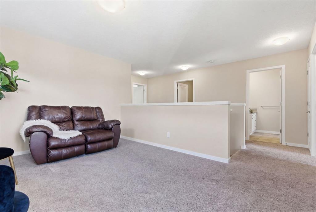 Welcome to this fantastic one-owner family home in the highly sought-after lake community of Auburn Bay. With over 1,900 square feet of bright, functional living space, this beautiful home showcases true pride of ownership and thoughtful features designed for comfortable family living. Step inside to discover 9-foot ceilings and abundant natural light, enhanced by energy-efficient triple-pane windows. The entire home has been freshly repainted, creating a clean, move-in-ready feel. Comfort is ensured year-round with air conditioning and a HEPA-filtered furnace. The main floor offers a spacious open-concept layout ideal for everyday living and entertaining. The functional kitchen features a large island with breakfast bar, generous pantry, and flows seamlessly into the dining area, which easily accommodates a large family table. The living room is warm and inviting with a fireplace, and you'll love the morning sunlight — winter or summer! Laminate flooring throughout adds durability and style, especially important with children and/or pets. Patio doors lead to a deck that's perfect for that early morning summer reading session or coffee and to a large, fenced backyard, providing the perfect space for children, pets, and gatherings. A convenient half bath completes the main level. The carpeted upper level offers three generously sized bedrooms, a full main bathroom, and a large bonus room—perfect for family movie nights or a kids’ play area. The huge primary suite includes a large walk-in closet and a 5-piece ensuite with a deep soaker tub. The straight staircase design makes moving furniture between levels easy and practical. The unfinished basement is a bright, blank canvas, featuring large windows and a bathroom rough-in, ready for your custom development. Car enthusiasts and hobbyists will love the attached heated 3-bay garage, with two bays side-by-side and one tandem bay—ideal for a third vehicle, seasonal storage, a workshop, or a home gym. Living in Auburn Bay means enjoying one of Calgary’s most family-friendly communities. Residents have access to the private lake with its many amenities: swimming, skating, and fishing, along with parks, playgrounds, sport courts, and scenic natural wetlands enhancing the experience of living here. Three schools are within walking distance, and you’re just minutes from shopping, dining, and recreation. This home is also close to South Health Campus, and there is easy access to major routes connecting you to downtown Calgary or weekend escapes out of the city. This is a bright, spacious, and well-cared-for home in an outstanding family community—ready for its next chapter.